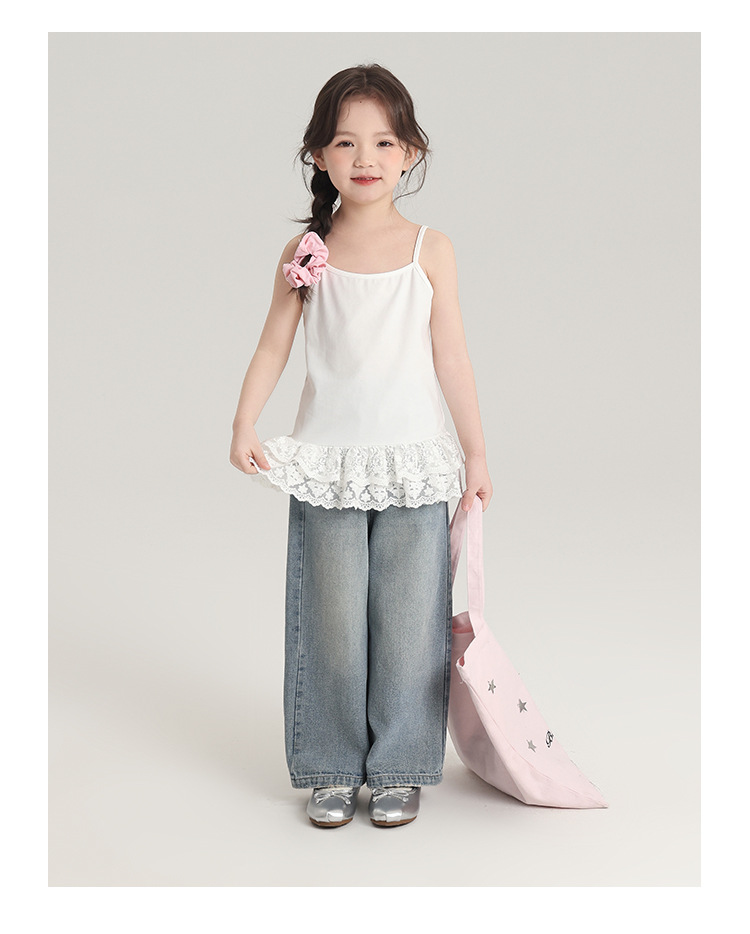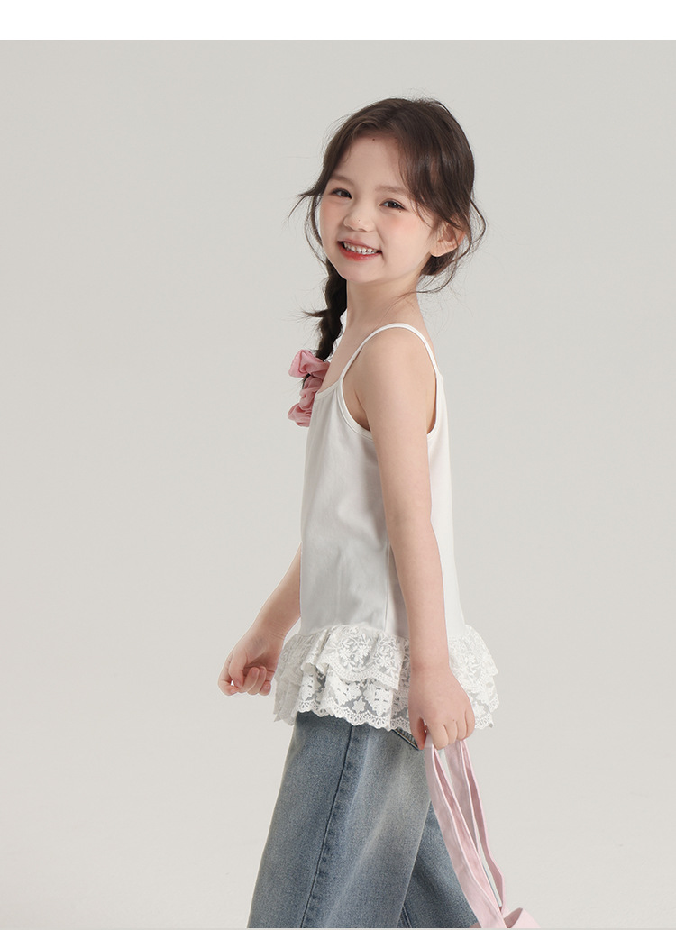 푸딩 하루 봄 소녀 레이스 슬링 2025 새로운 달콤한 귀여운 단색 여성 보물 조끼