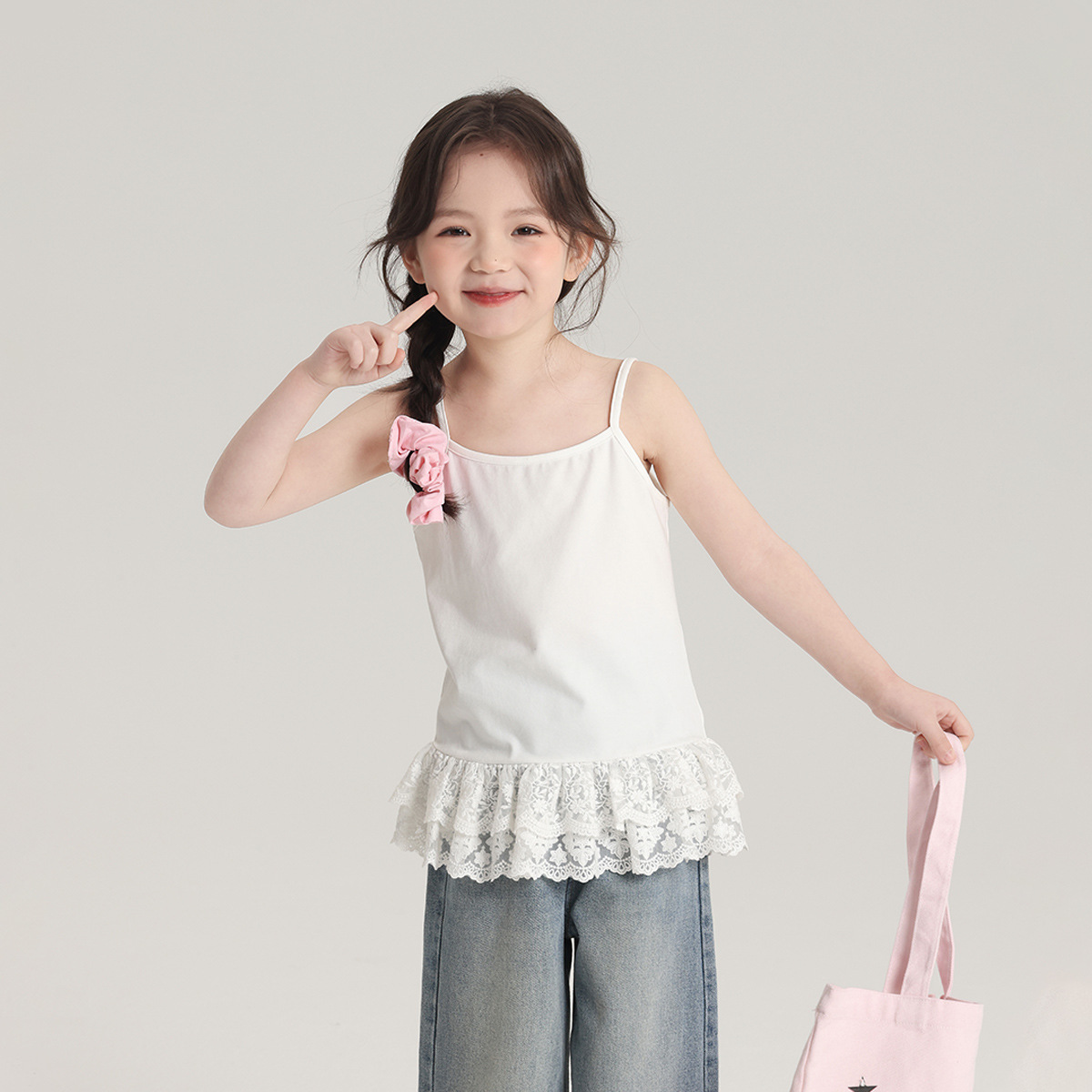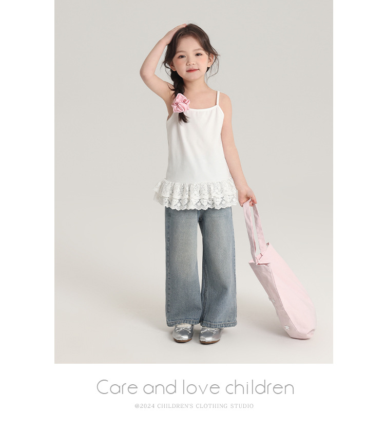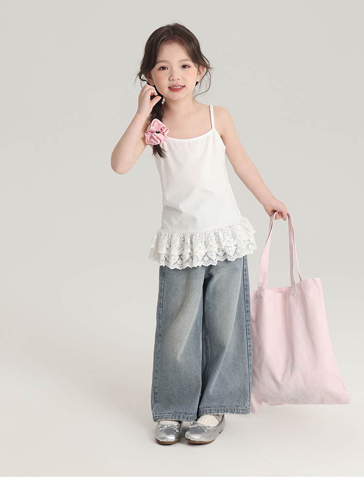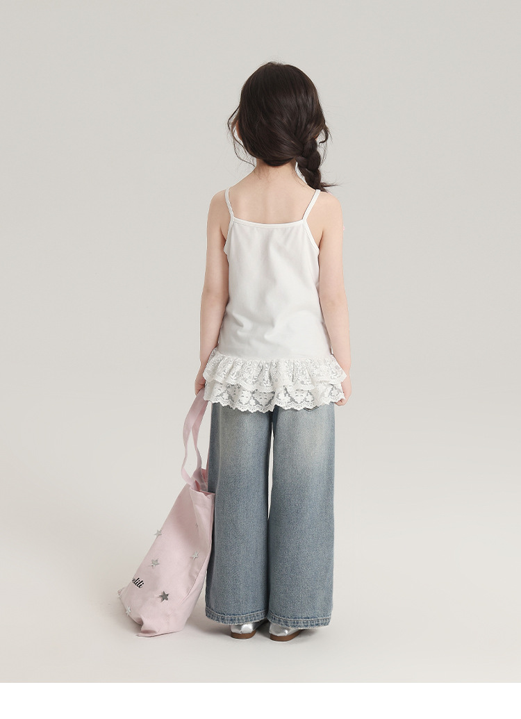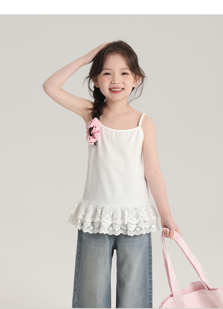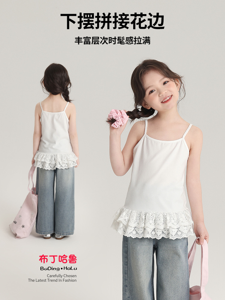 푸딩 하루 봄 소녀 레이스 슬링 2025 새로운 달콤한 귀여운 단색 여성 보물 조끼스토어 가기