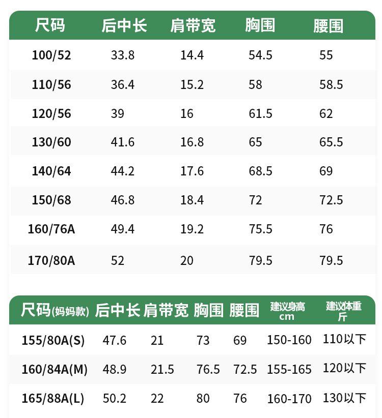 • 엄마 사이즈 S의 권장 체중은 55kg 이내입니다.