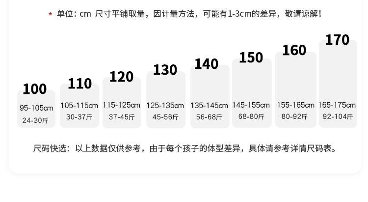 • 사이즈 100의 권장 신장은 95-105cm입니다.