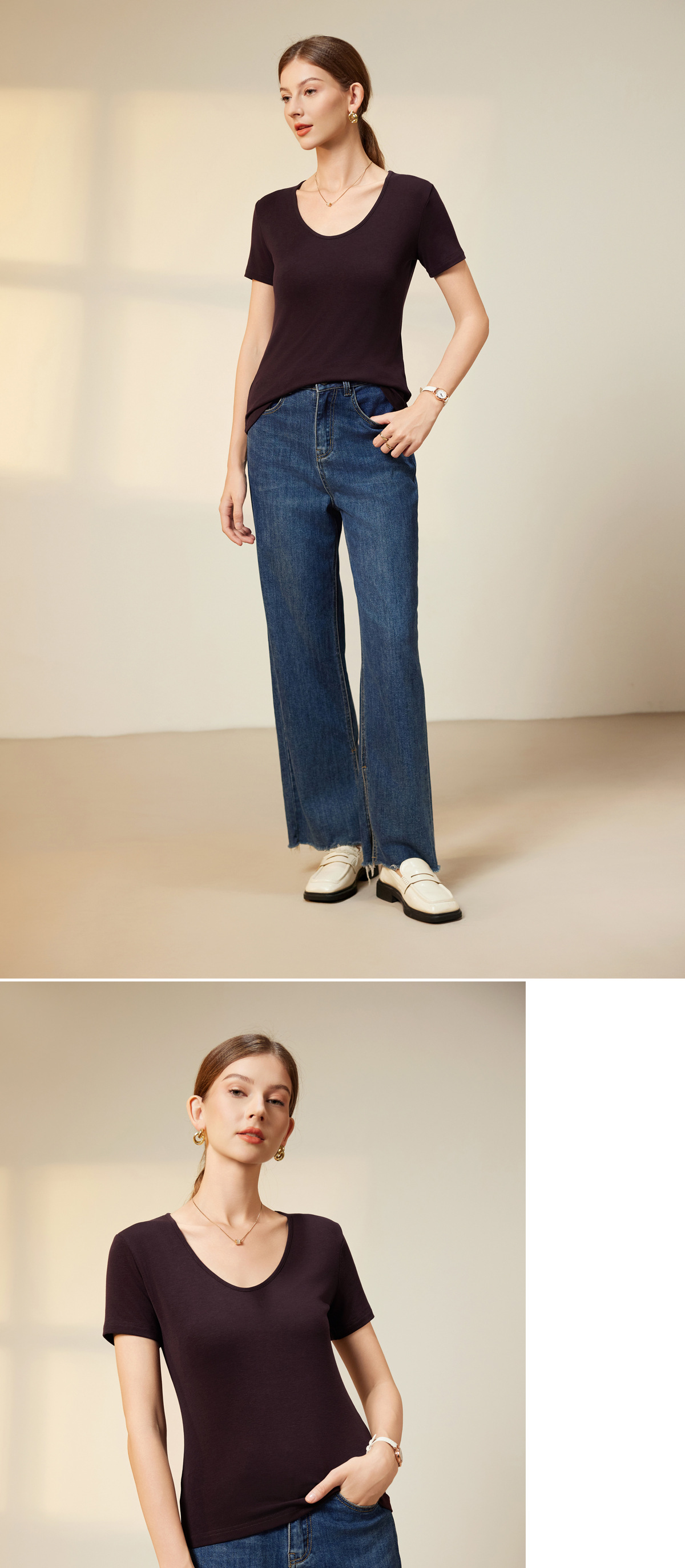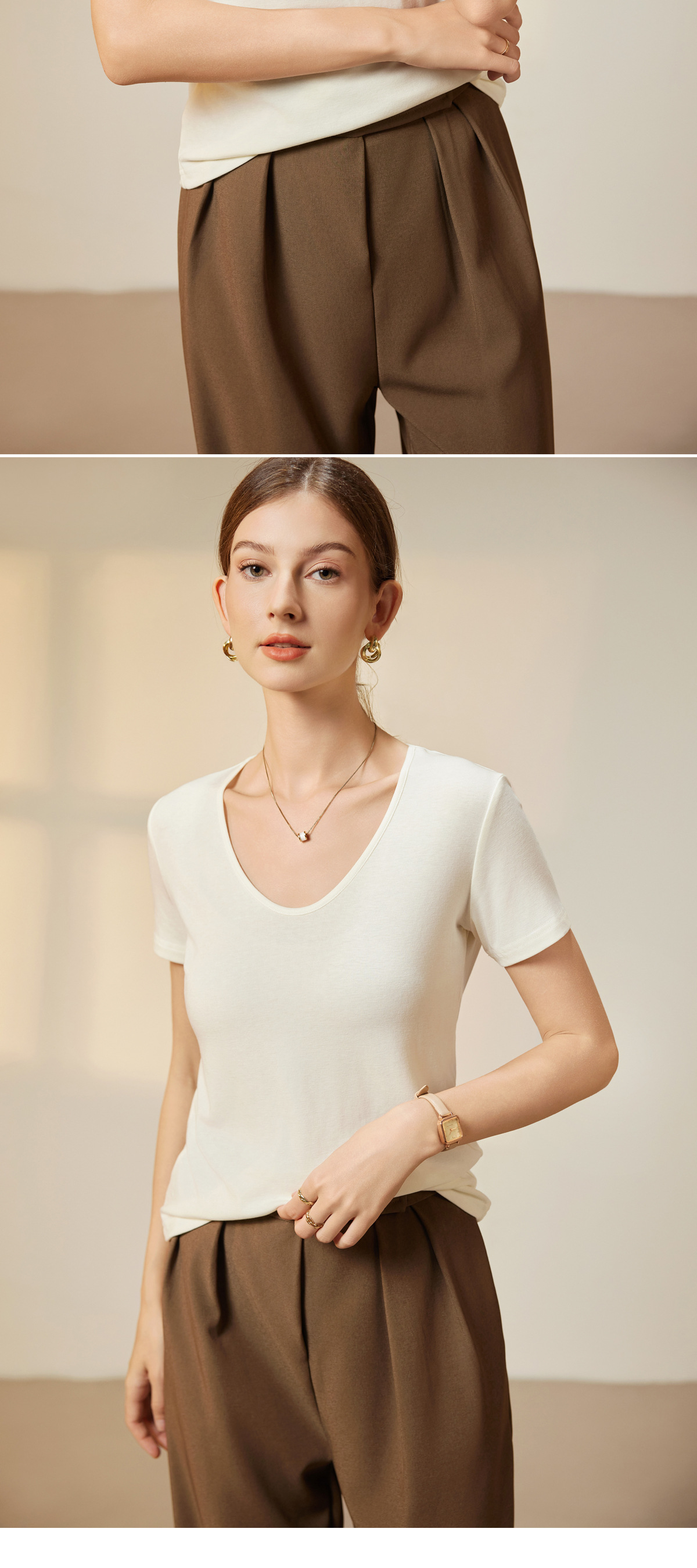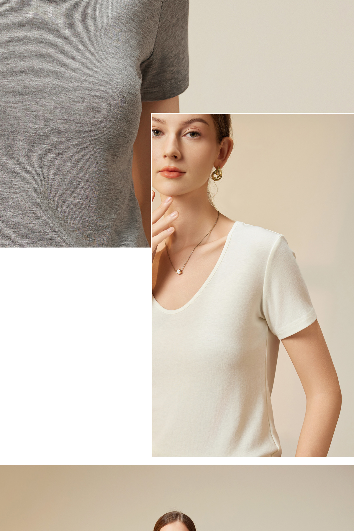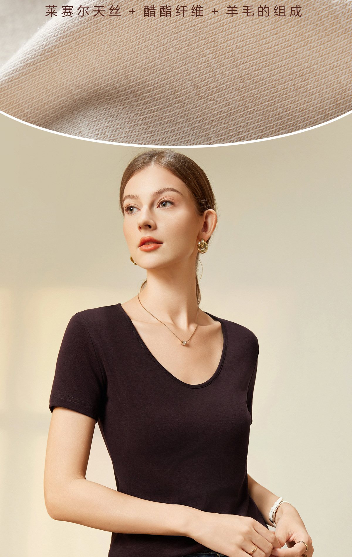 "벌거 벗은 피부 느낌" 소프트 T Lyocell 아세테이트 울 V-넥 티셔츠 스트레치 슬림 핏 백킹 셔츠 봄에 여성을위한 새로운 셔츠스토어 가기