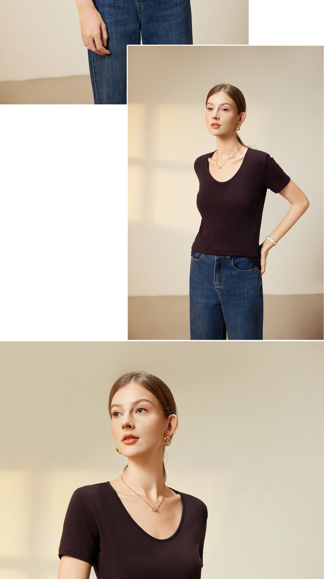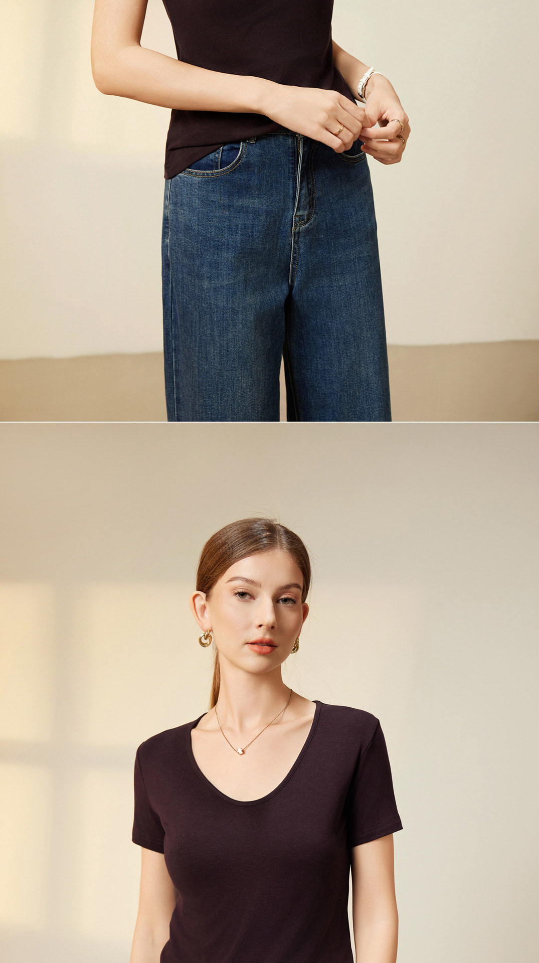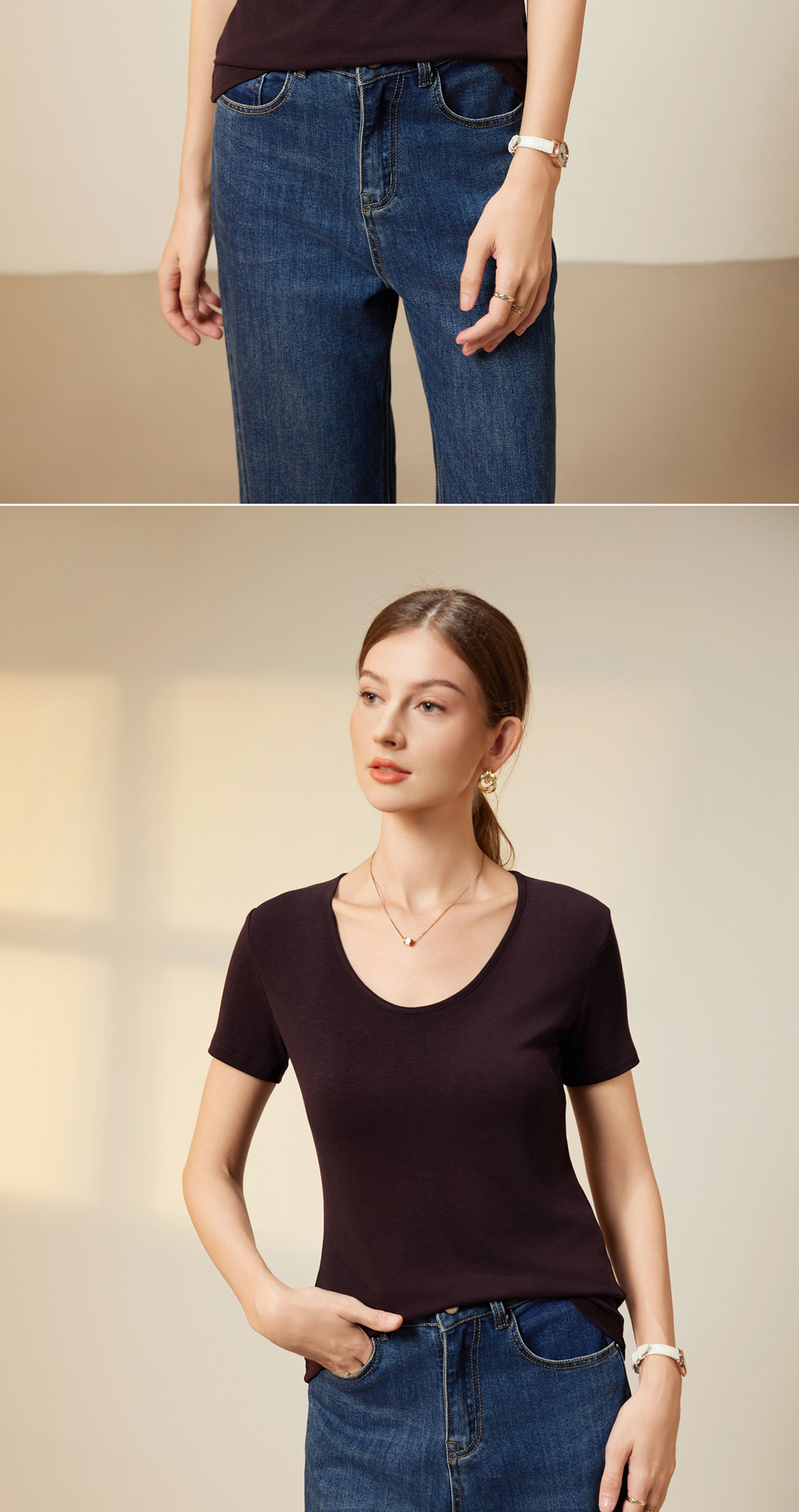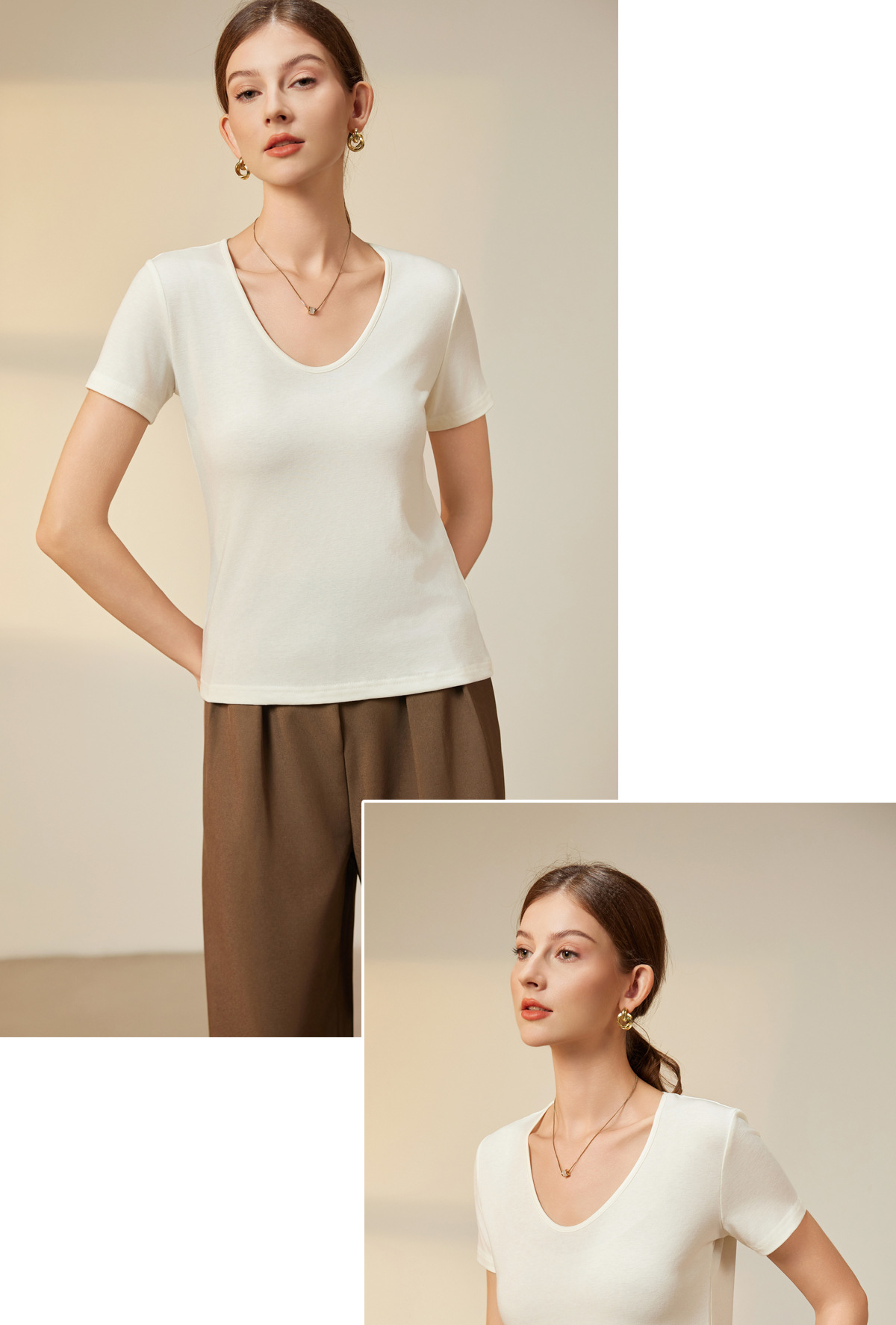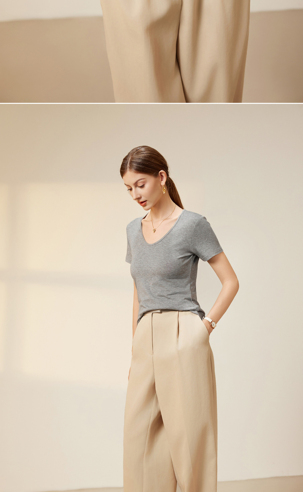 "벌거 벗은 피부 느낌" 소프트 T Lyocell 아세테이트 울 V-넥 티셔츠 스트레치 슬림 핏 백킹 셔츠 봄에 여성을위한 새로운 셔츠스토어 가기