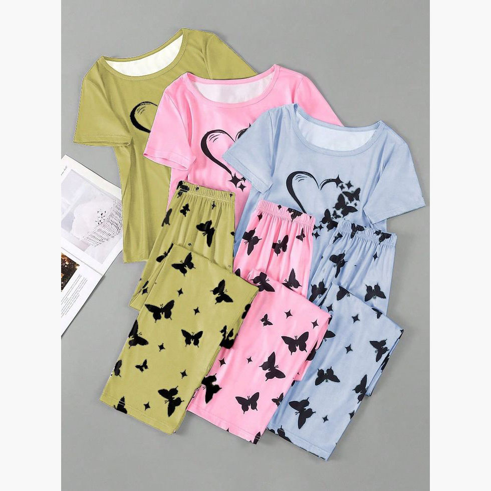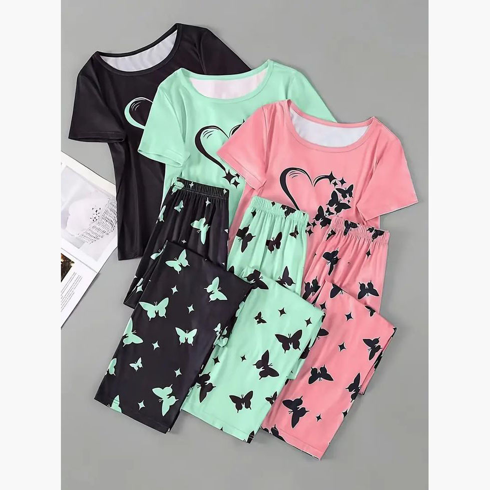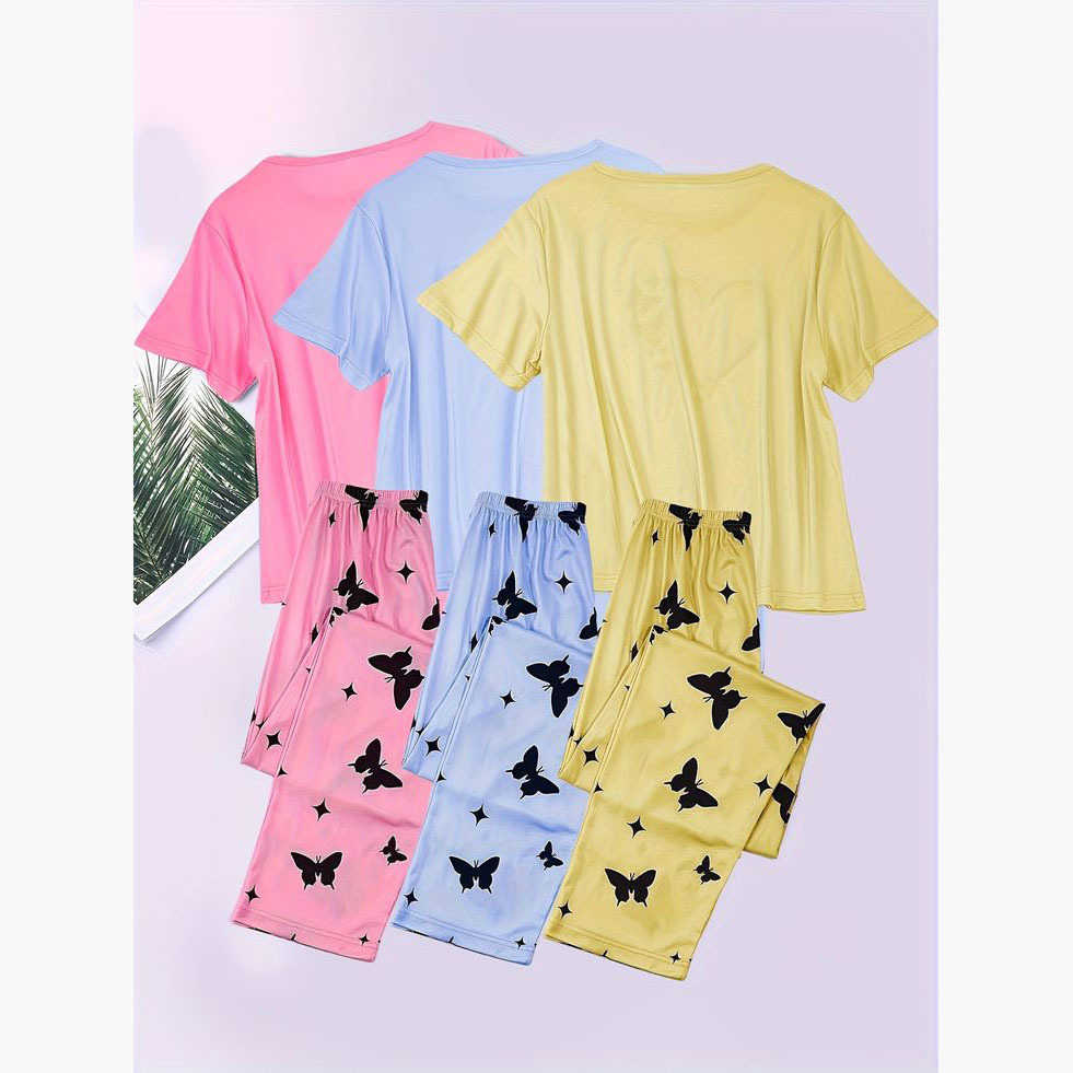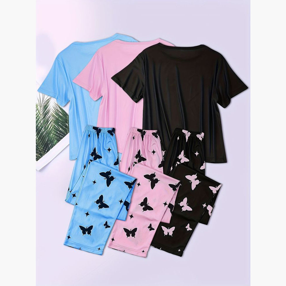 나비 홈 의류 세트 유럽과 미국 패션 나비 인쇄 홈 의류 세트 여름 여성 편안한 짧은 소매 세트