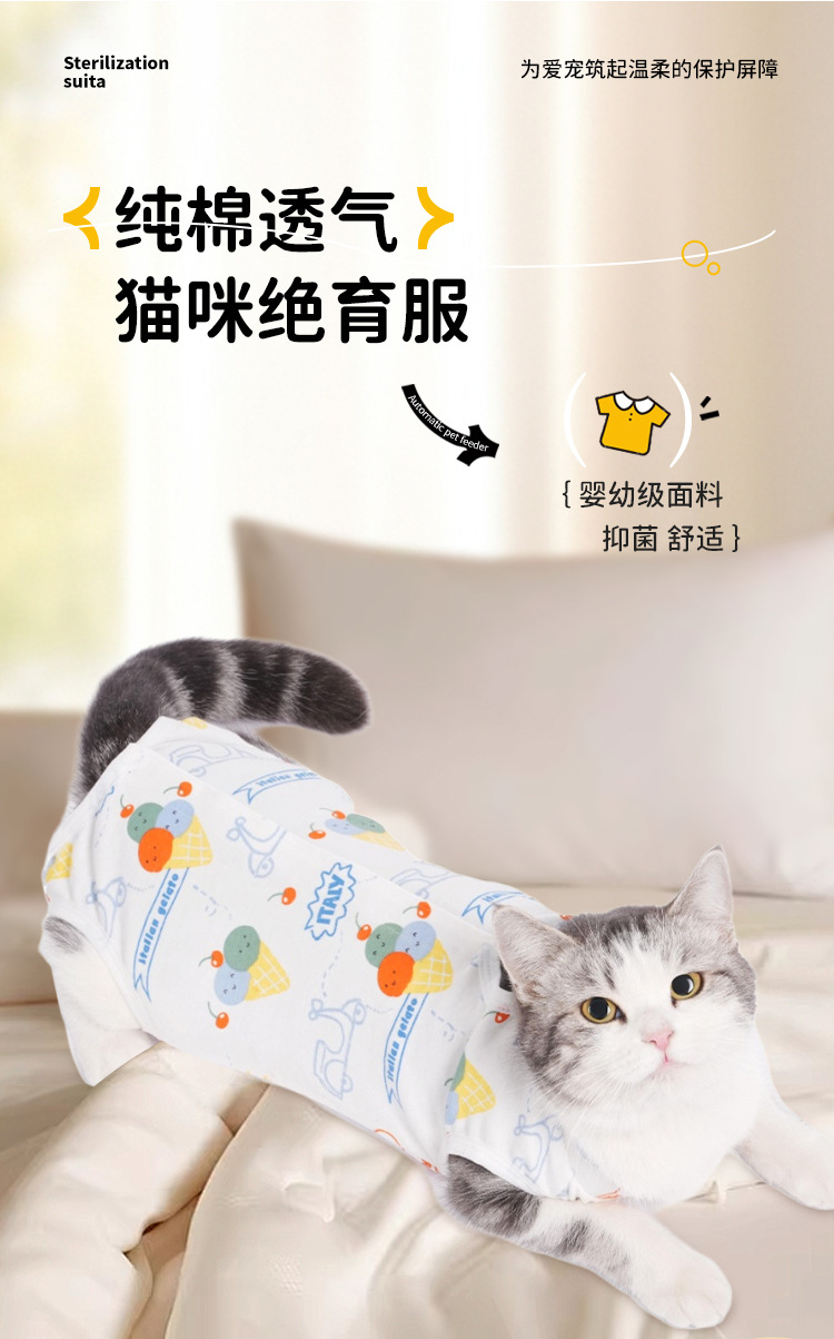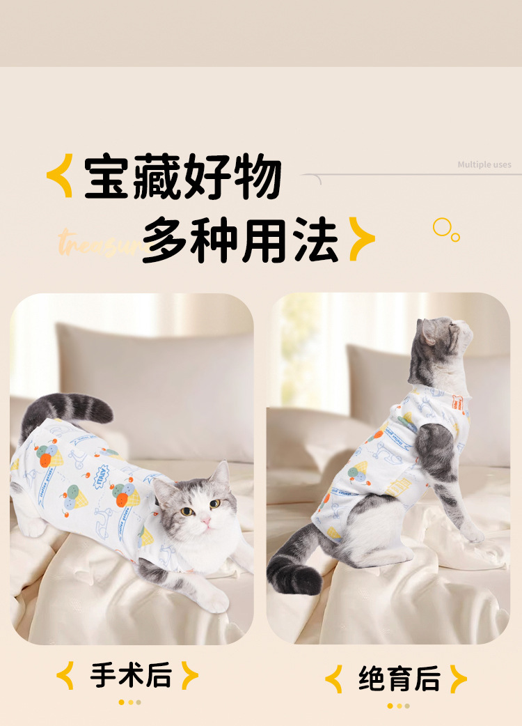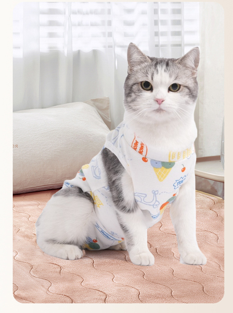 워미 순면 보온 고양이 중성화 수술 후 생리팬츠 탈착방지 고양이 옷 해외 도매