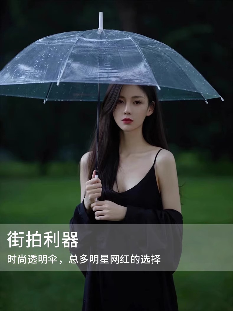 투명 우산 대량 플라스틱 우산 인기 모델 학생 성인 어린이 긴 손잡이 우산 도매 일본식 심플하고 깔끔한 디자인