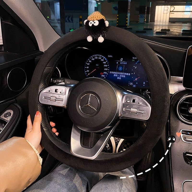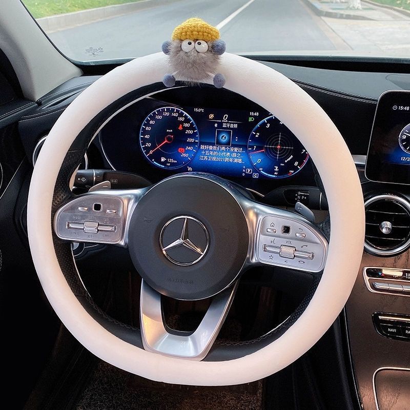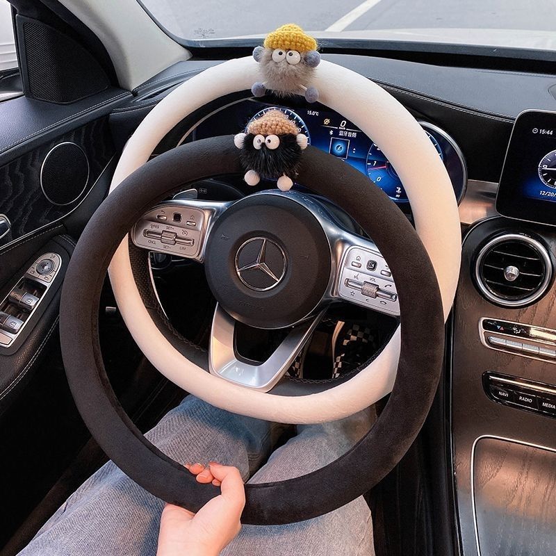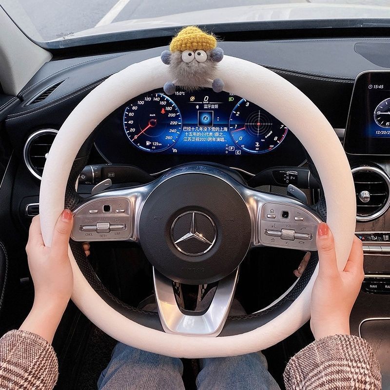 자동차 핸들 커버 미끄럼 방지 여성의 겨울 메르세데스-벤츠 4 시즌 유니버설 귀여운 만화 겨울 플러시 자동차 스티어링 휠 커버 폭스 바겐스토어 가기