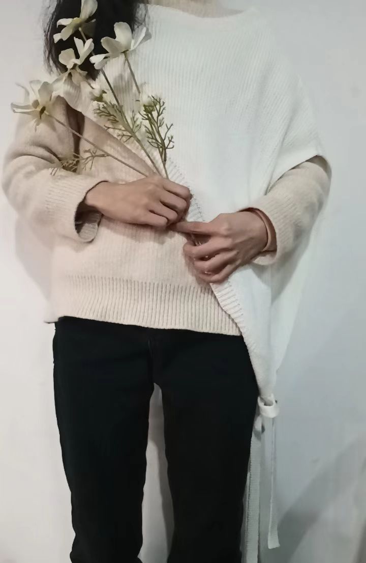 조끼 리본 하이 엔드 틈새 디자인 베벨 삼각형 니트 목도리 여성의 쌓인 외국 스타일 리본 조끼와 함께스토어 가기