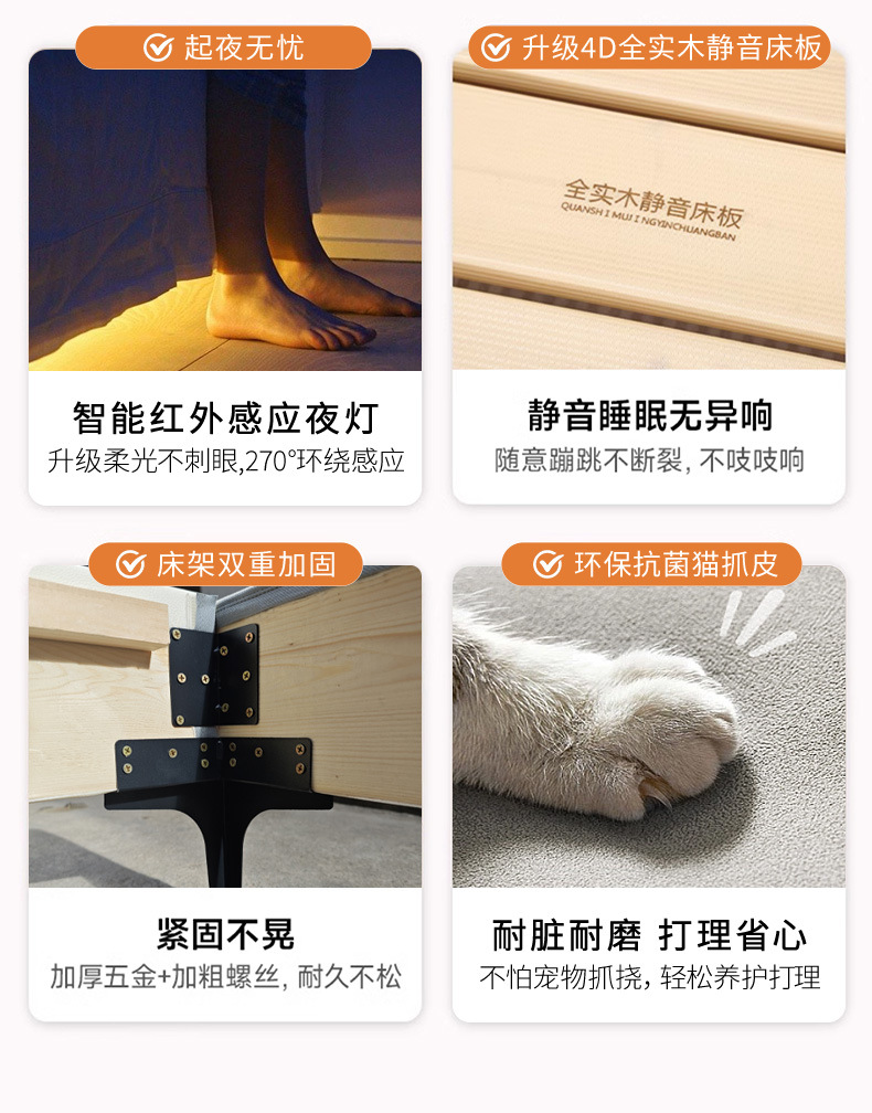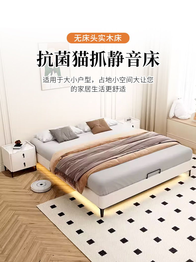 • [암호화된 버전] 사일런트 침대 + 20cm 벨벳 독립 매트리스 + 침대 옆 탁자 1개