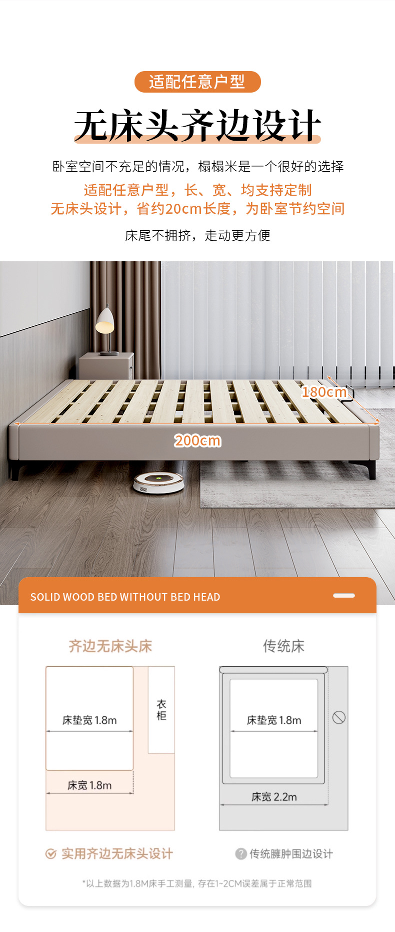 풀 솔리드 우드 다다미 침대 사이드 스켈레톤 침대 프레임 싱글 및 더블 로우 침대 1.5m 침실 소형 및 중형 아파트 사이드 침대