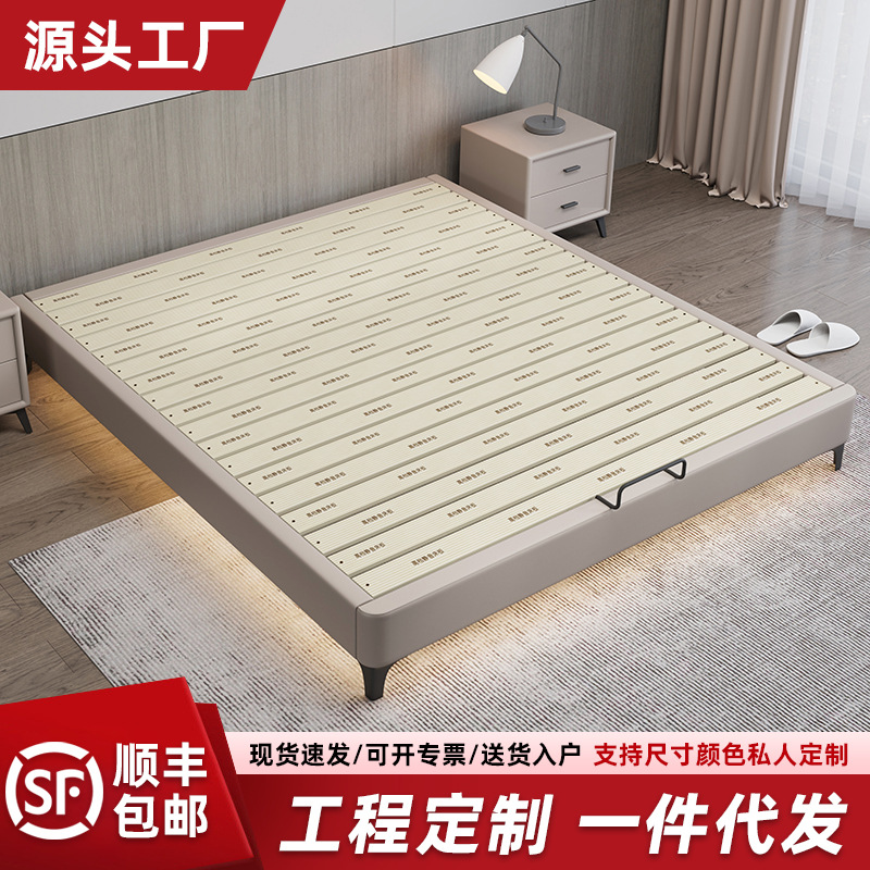 풀 솔리드 우드 다다미 침대 사이드 스켈레톤 침대 프레임 싱글 및 더블 로우 침대 1.5m 침실 소형 및 중형 아파트 사이드 침대스토어 가기