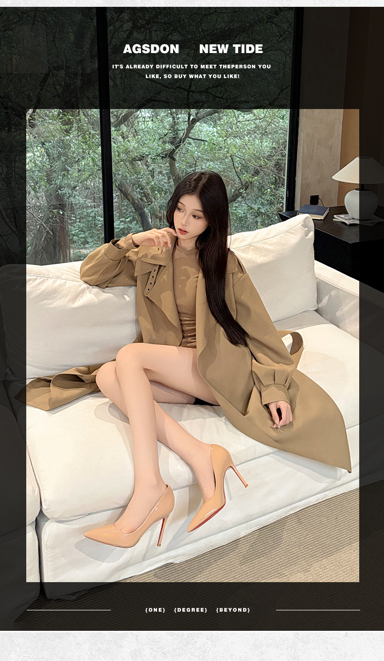 아우 구시 덴 누드 하이힐 여성 2025 년 새 봄과 여름 프랑스 뾰족한 스틸레토 힐 통근 전문 얕은 입 신발스토어 가기