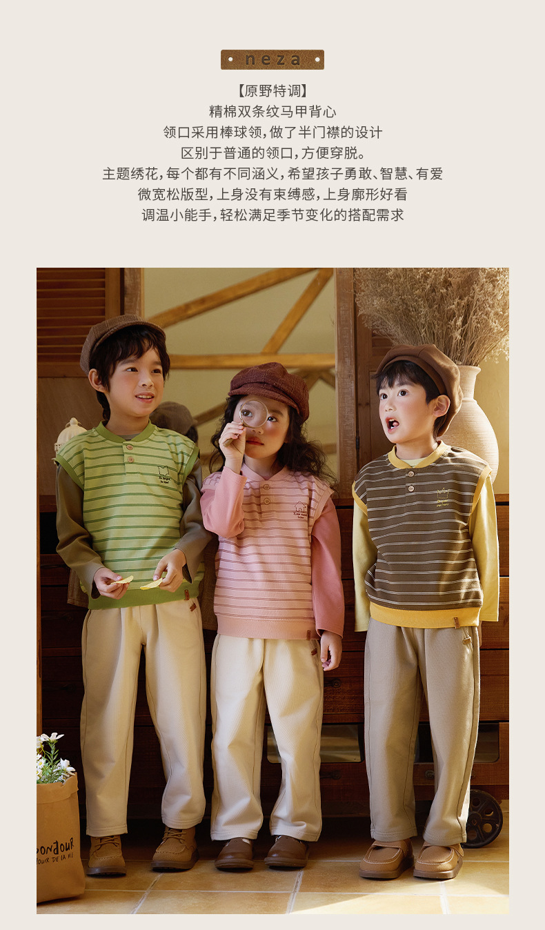네자 [현장스페셜] 어린이 조끼 봄 소녀 줄무늬 조끼 소년 니트 조끼 아기 조끼스토어 가기