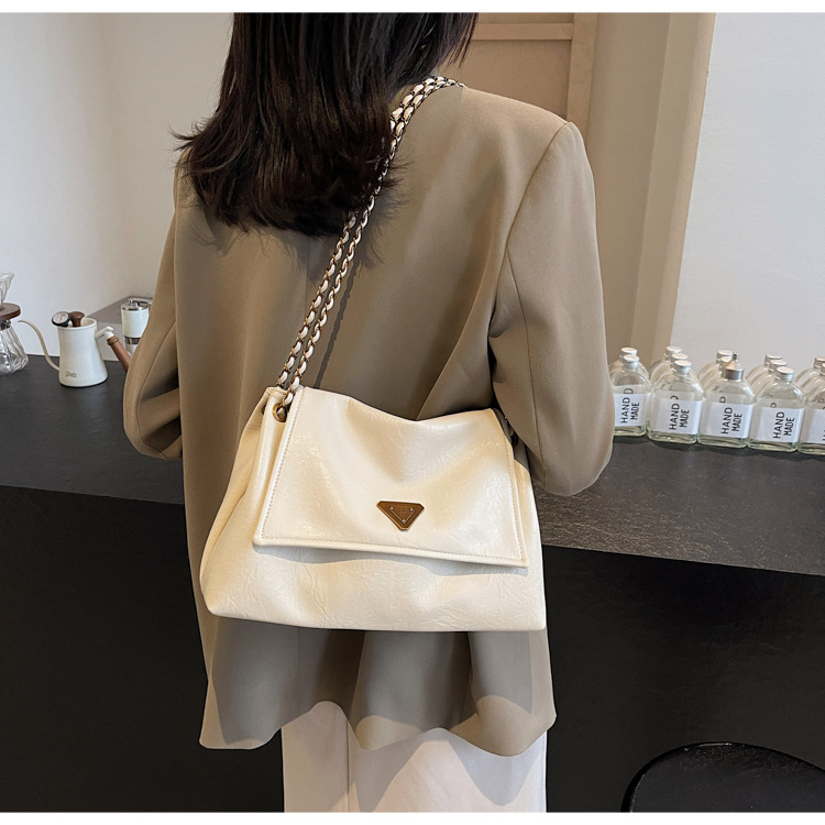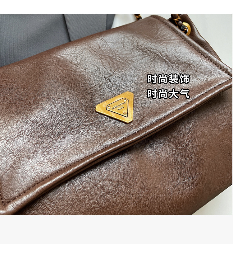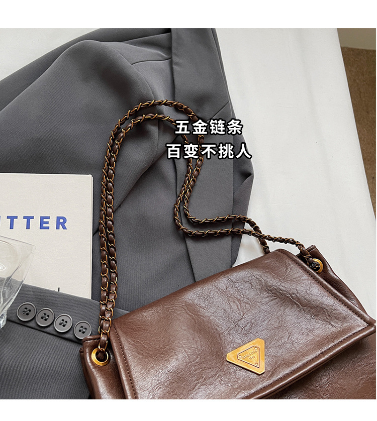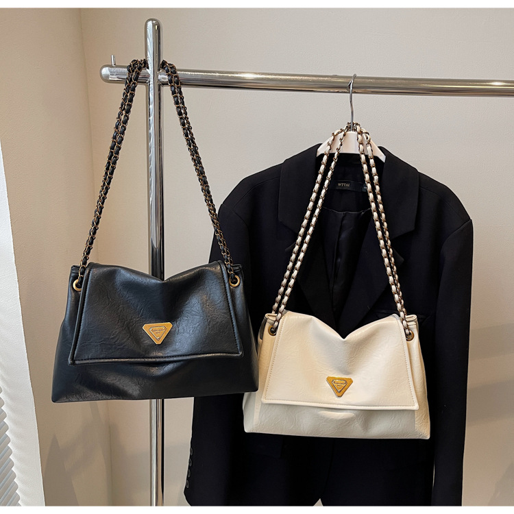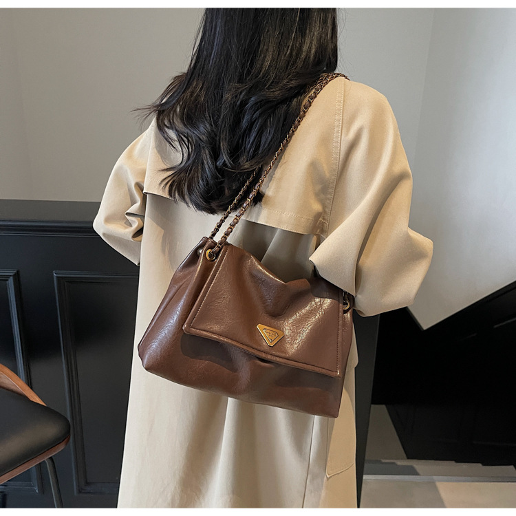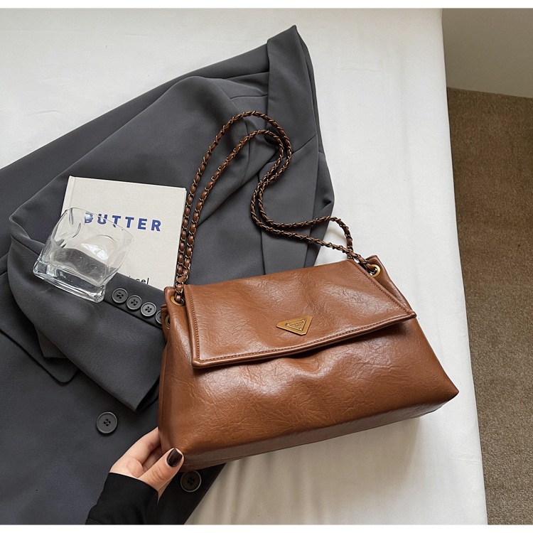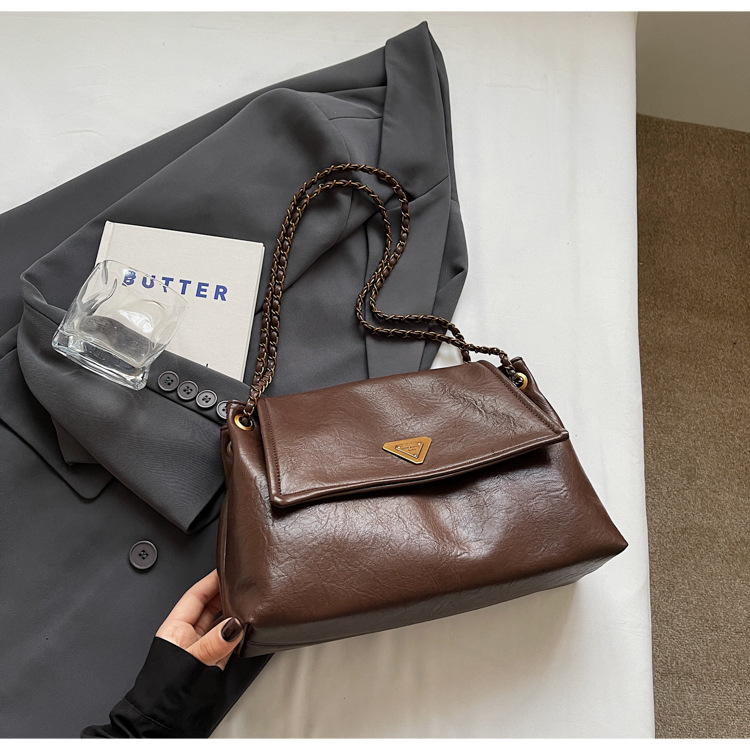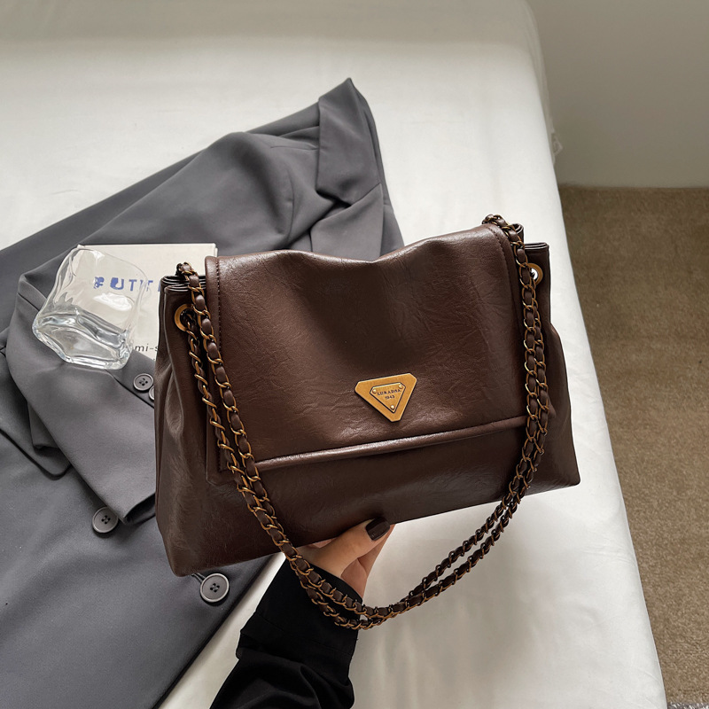 빈티지 대용량 어깨 가방 여성의 2025 새로운 도착 체인 언더암 가방 소프트 가죽 문자 통근 핸드백 크로스 바디 백