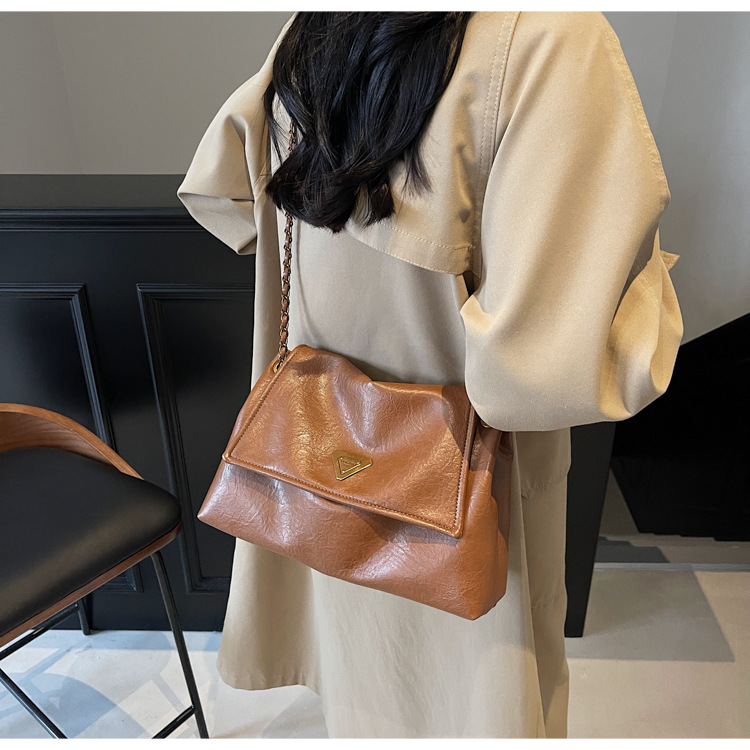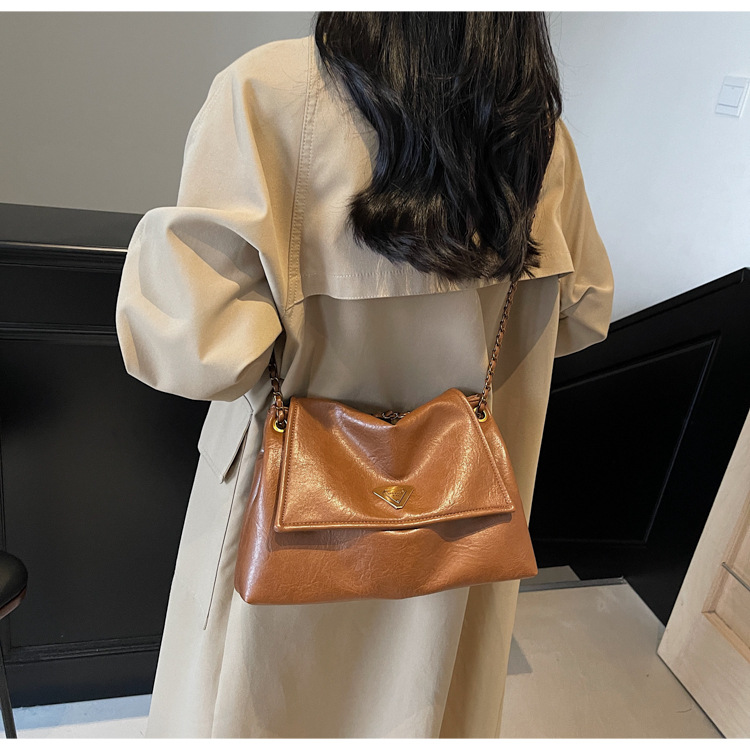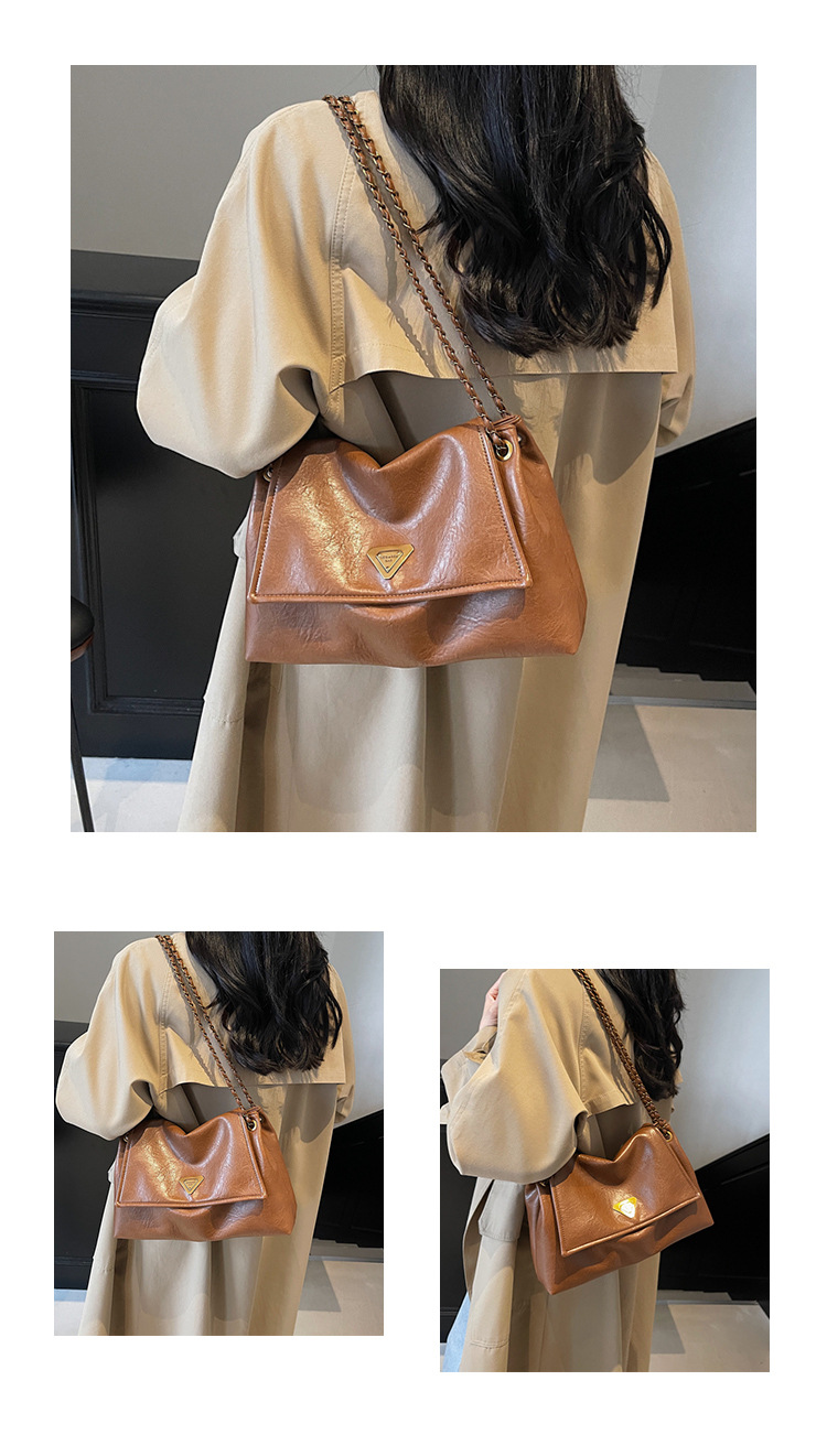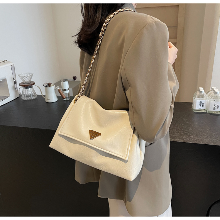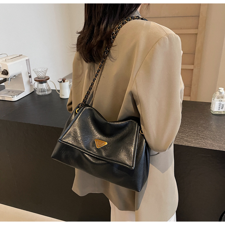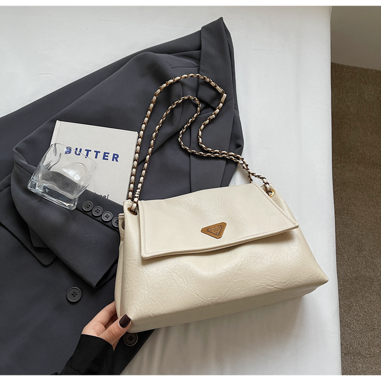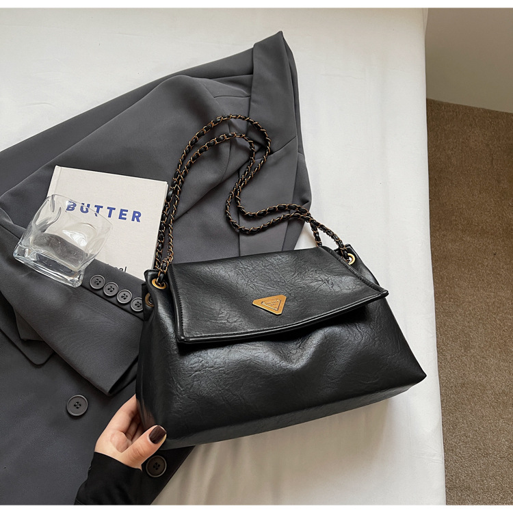 빈티지 대용량 어깨 가방 여성의 2025 새로운 도착 체인 언더암 가방 소프트 가죽 문자 통근 핸드백 크로스 바디 백