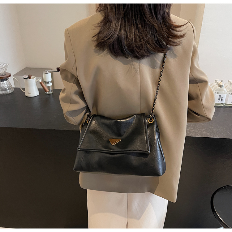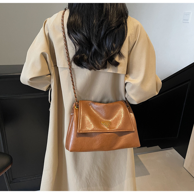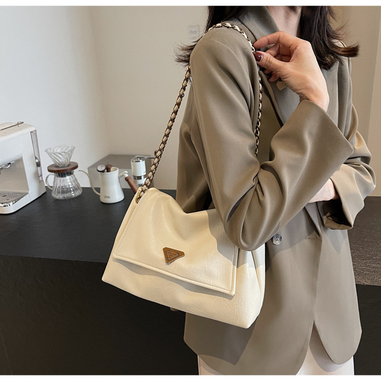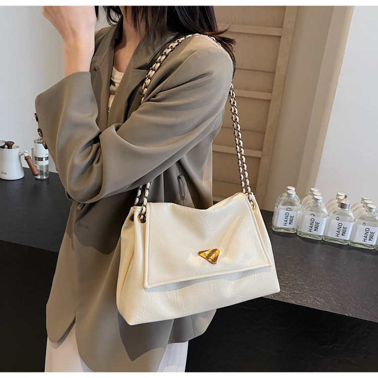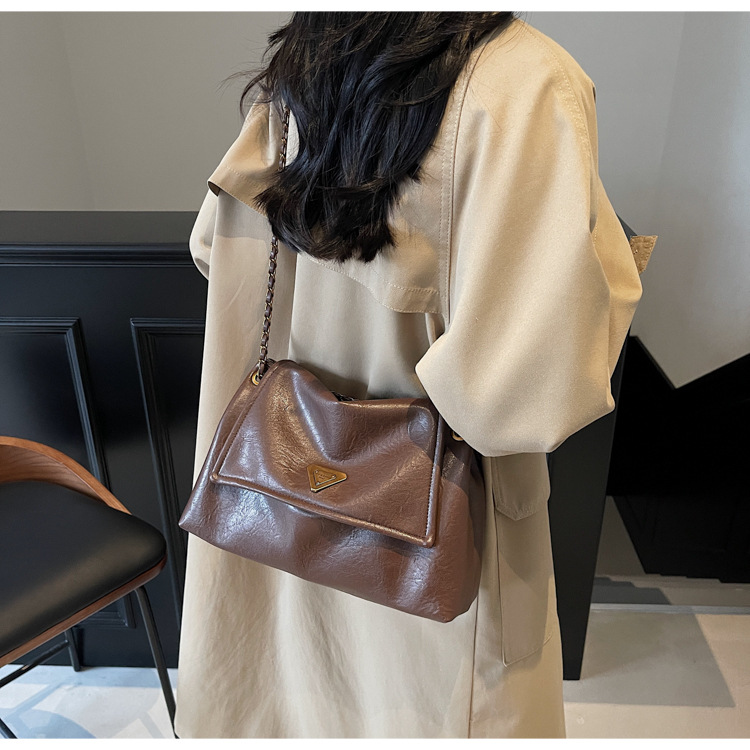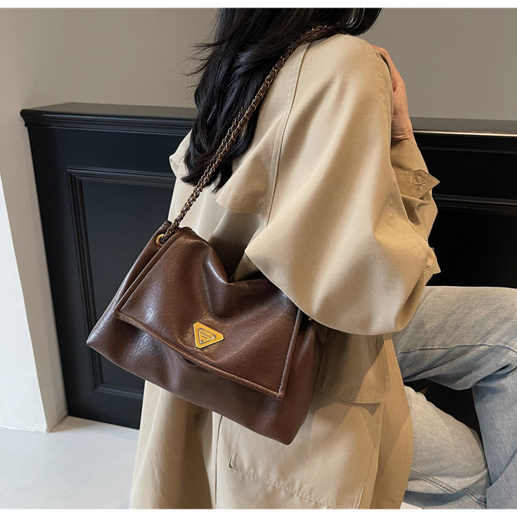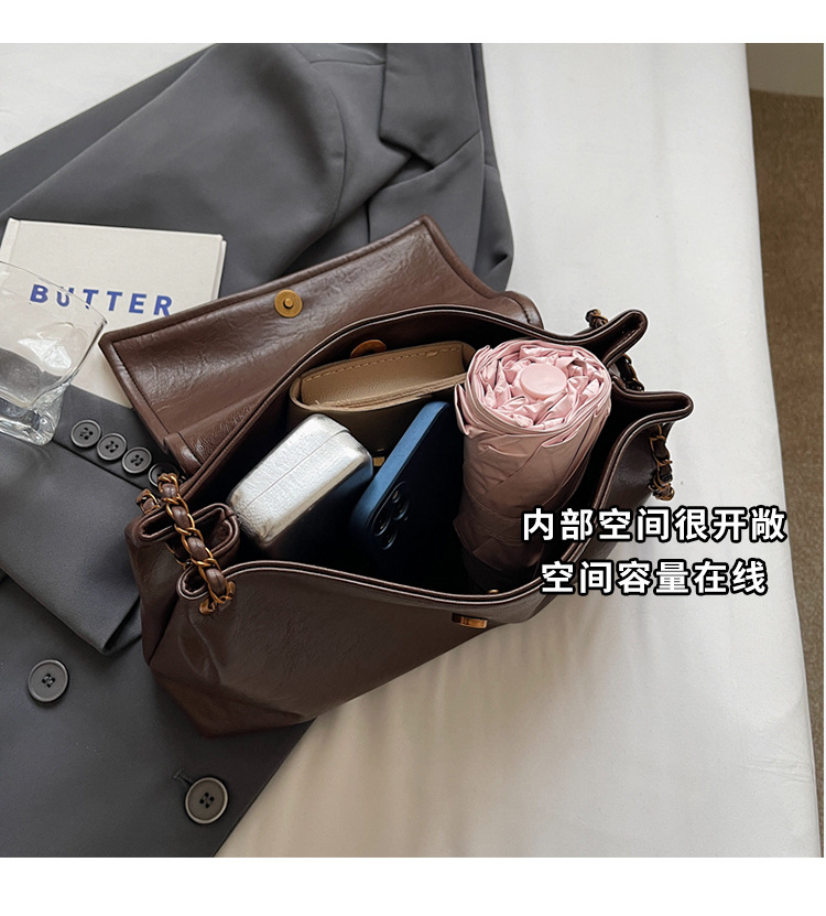 빈티지 대용량 어깨 가방 여성의 2025 새로운 도착 체인 언더암 가방 소프트 가죽 문자 통근 핸드백 크로스 바디 백스토어 가기