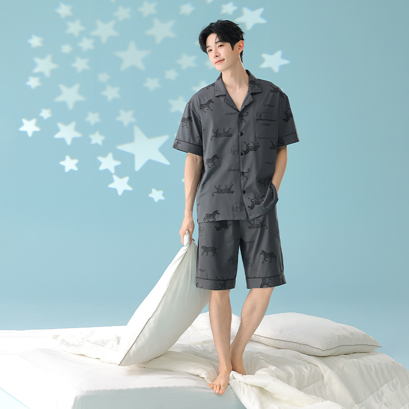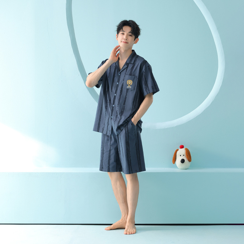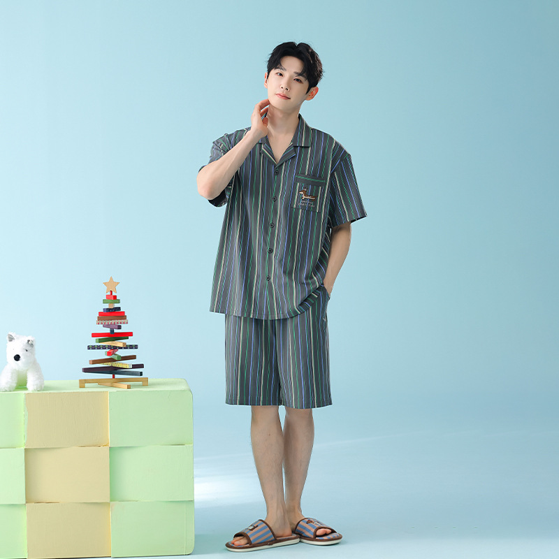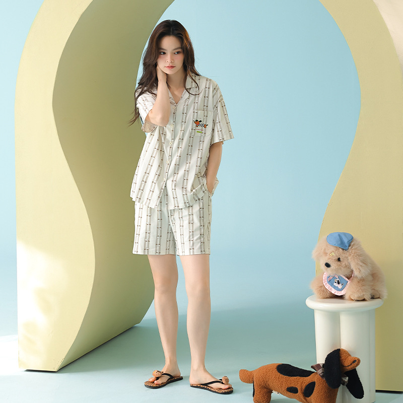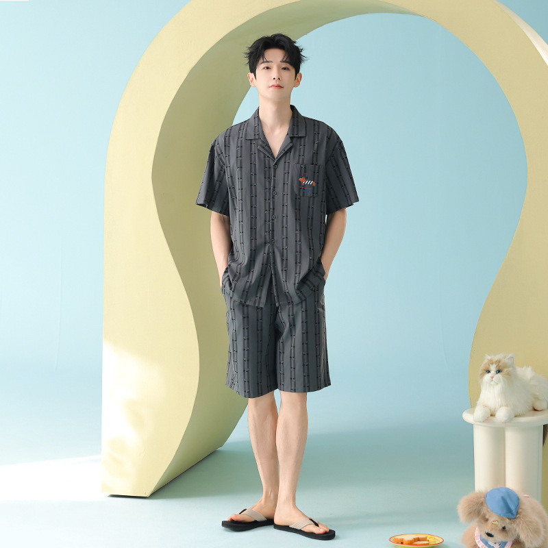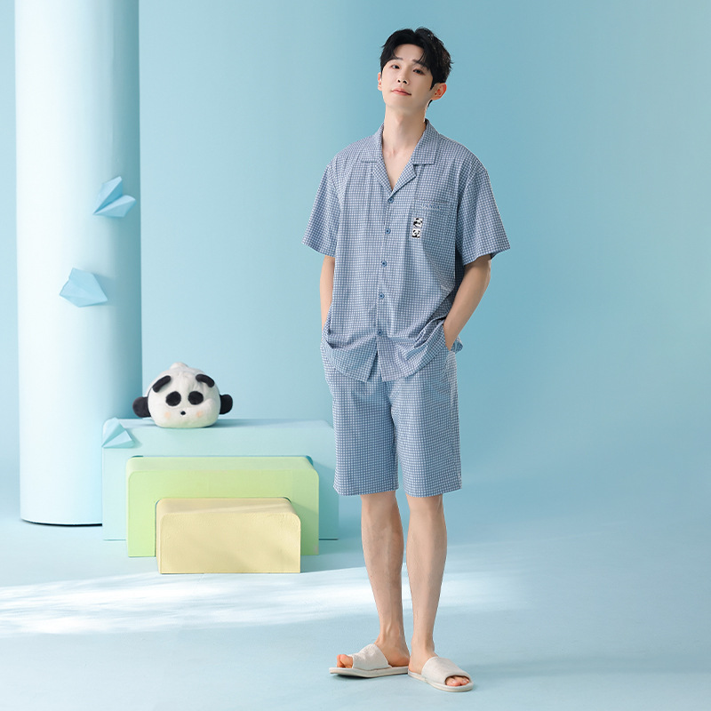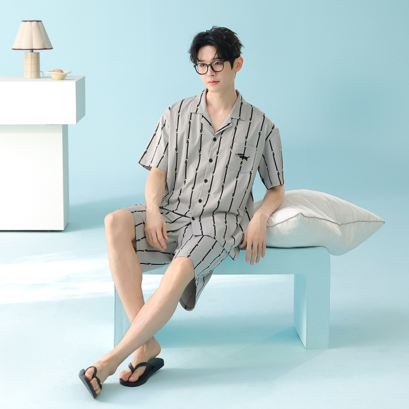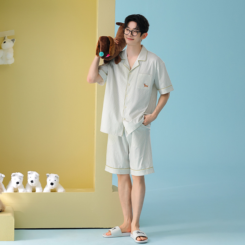 클래스 A 박테리아 방지 진드기 파자마 여성 여름 커플 홈 의류 순면 반팔 여름 카디건 캐주얼 세트 남성스토어 가기