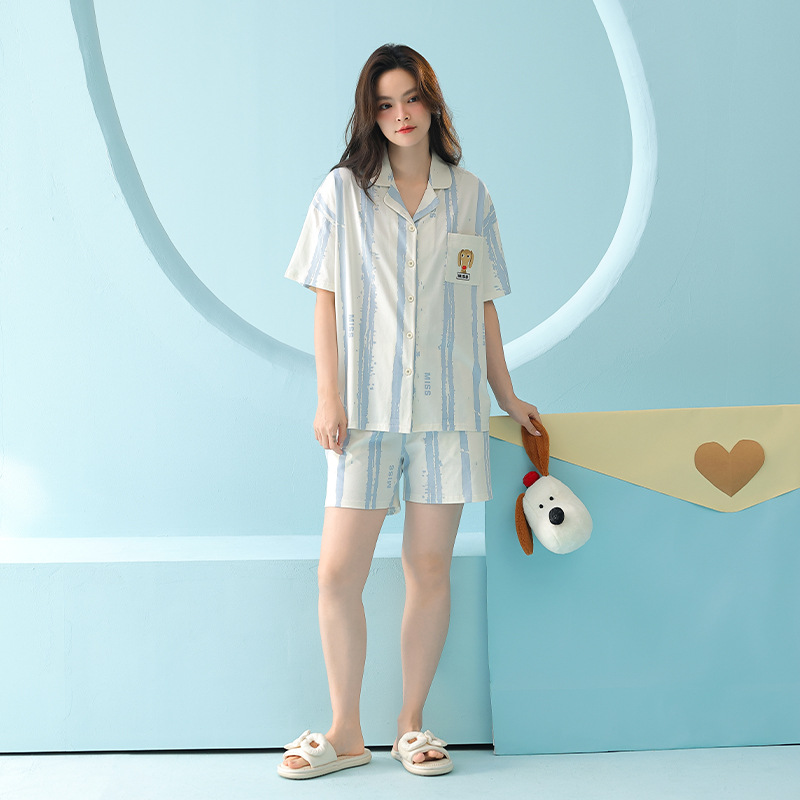 클래스 A 박테리아 방지 진드기 파자마 여성 여름 커플 홈 의류 순면 반팔 여름 카디건 캐주얼 세트 남성