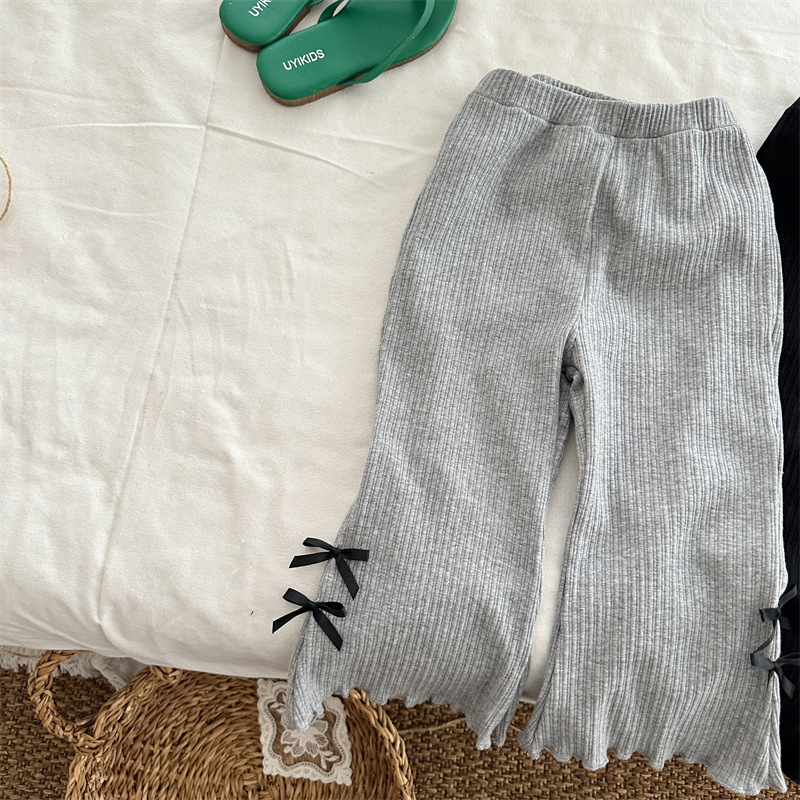 Xi Fan Chunxia 가을 새로운 도착 어린이 한국 스타일 구덩이 스트립 사이드 활 바지 소녀 귀 가장자리베이스 바지스토어 가기