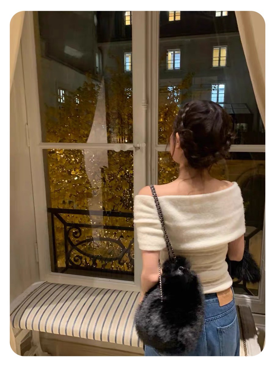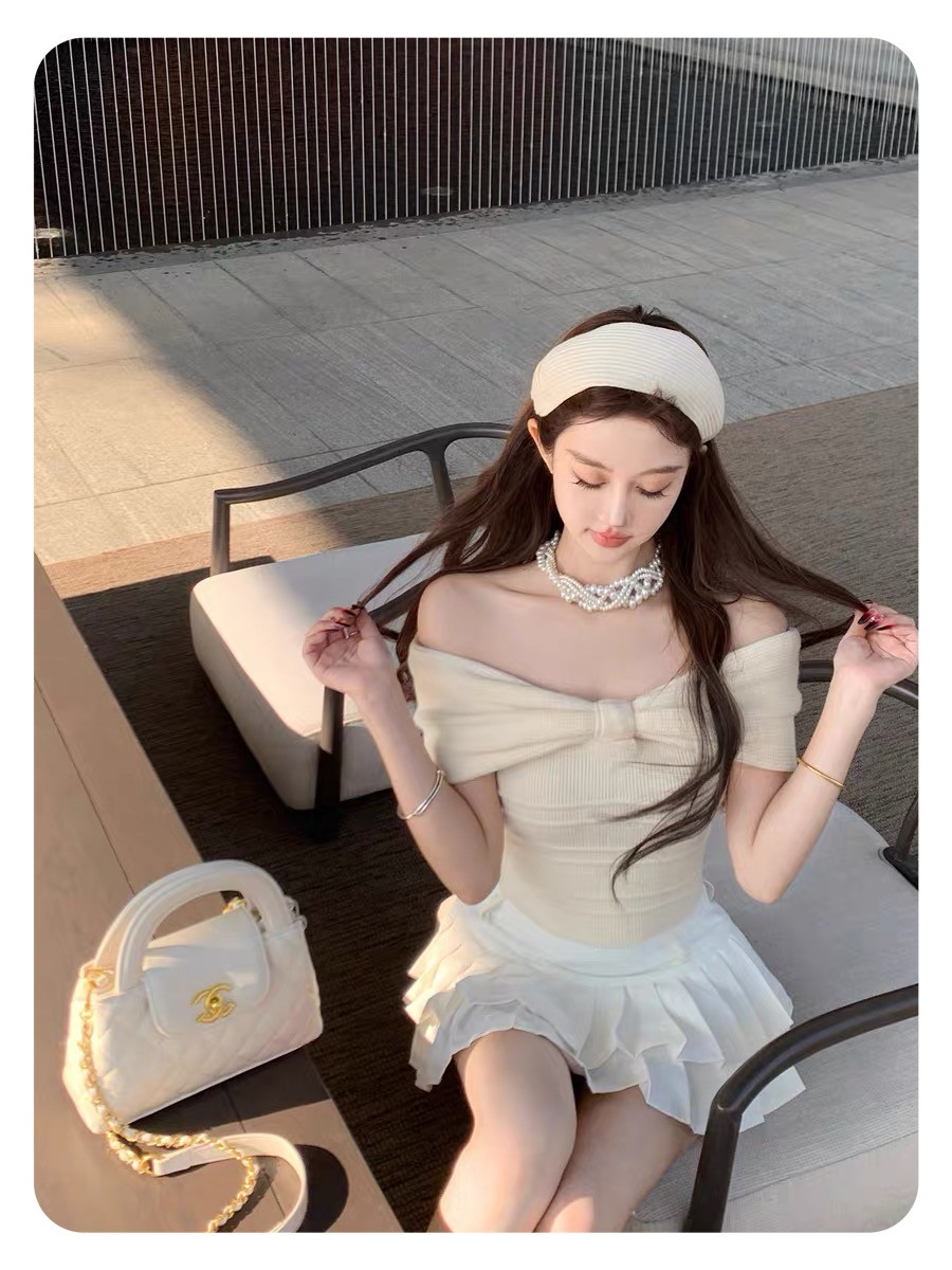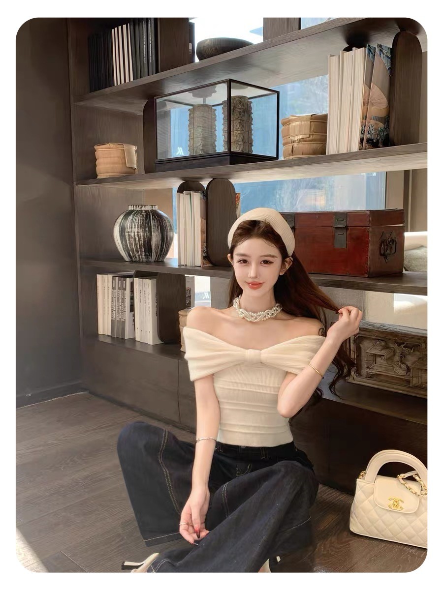 The barnnet 한국 디자이너 바이나가의 순수한 매력 리본 원숄더 니트 스웨터 여성용 상의