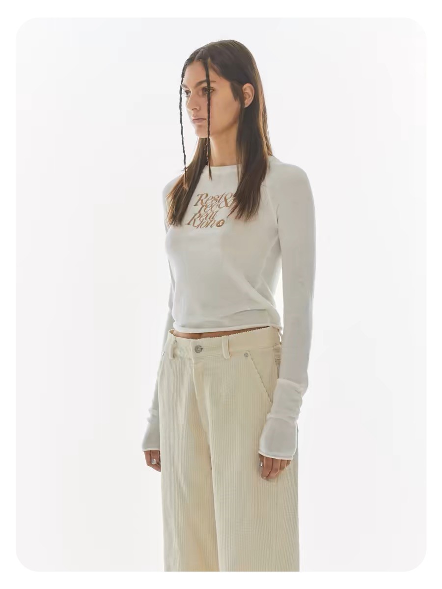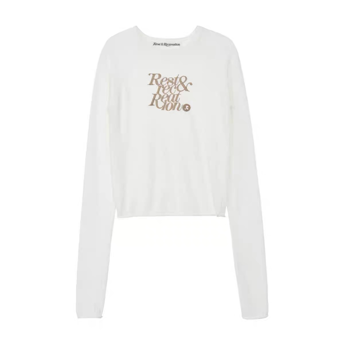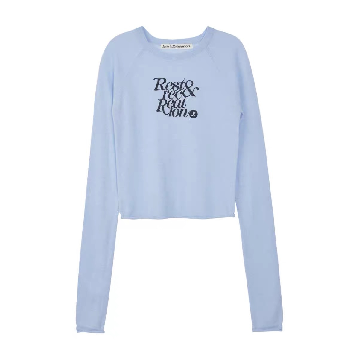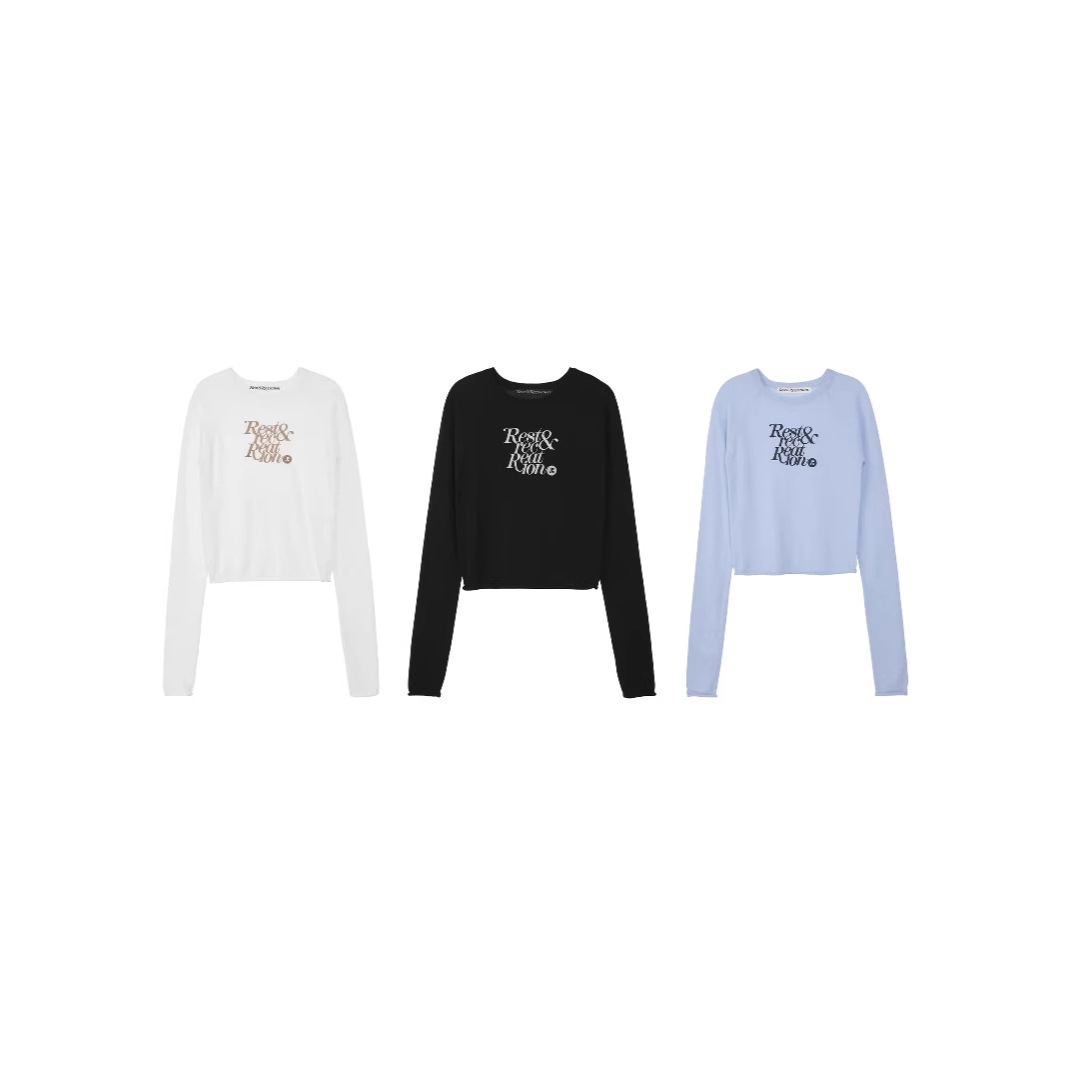 한국 여성복 도매, 한국 니치 브랜드 RR 자수 숏 스타일 허리라인 라운드넥 니트 스웨터 슬림핏 상의스토어 가기