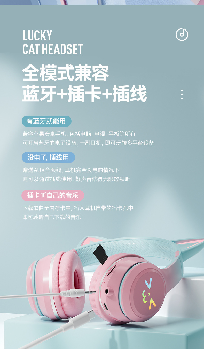 국경 간 새로운 헤드셋 블루투스 헤드셋 BT035C 접이식 카드 그라디언트 고양이 귀 게임 헤드셋 생성스토어 가기