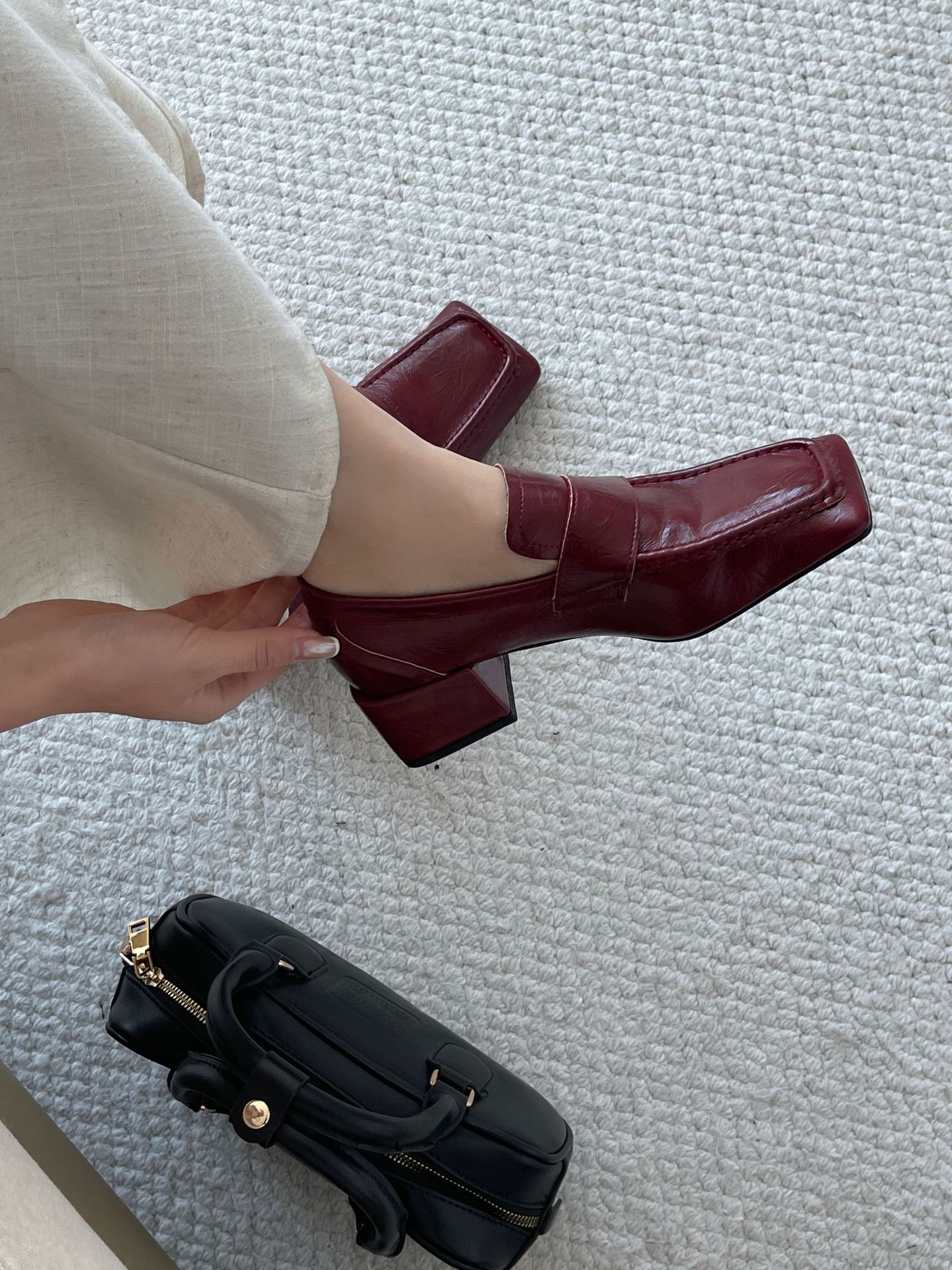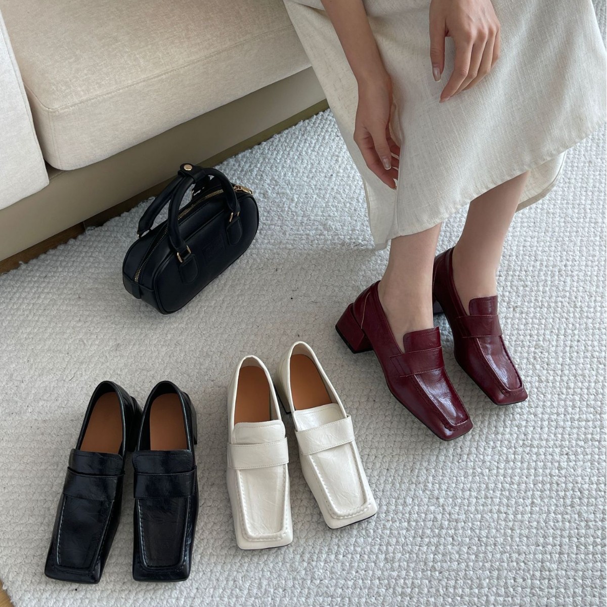 작은 가죽 신발 새로운 스퀘어 헤드 로퍼 두꺼운 힐 슈퍼 소프트 편안한 슬립-25 봄/여름 새로운 예술적 통근 여성 신발스토어 가기