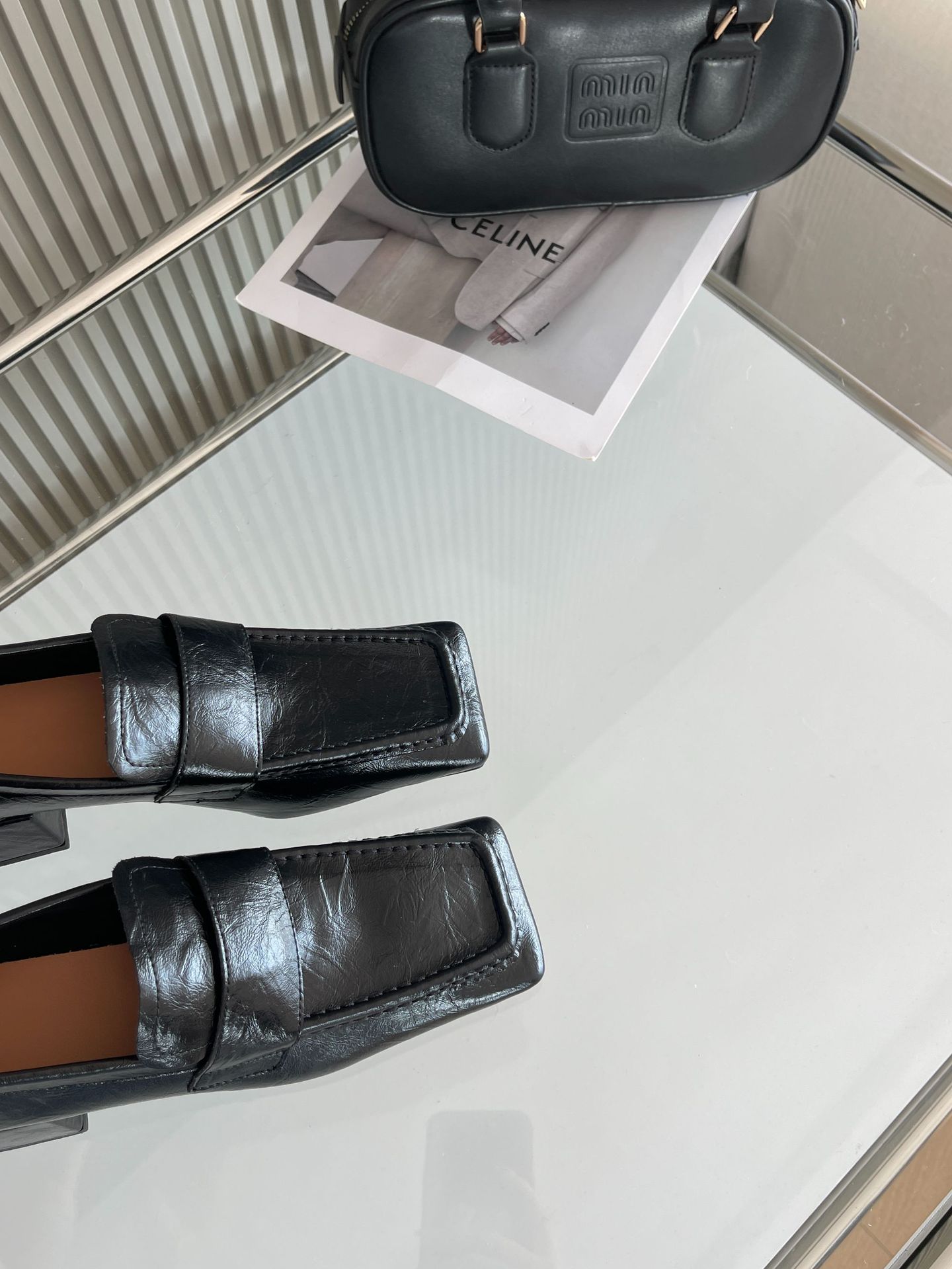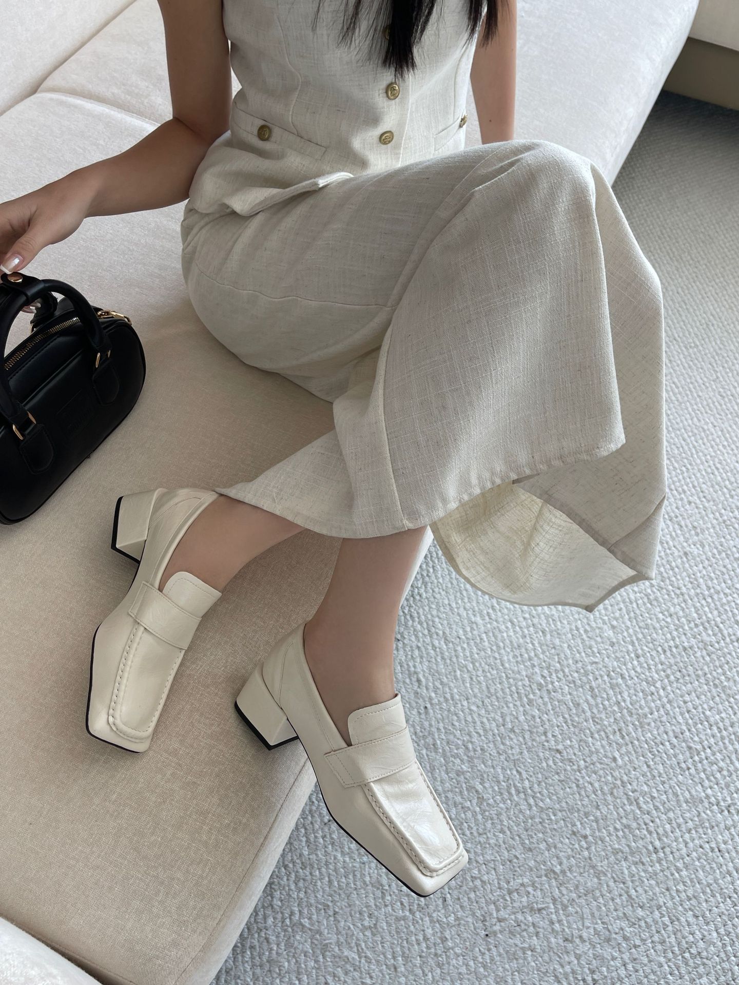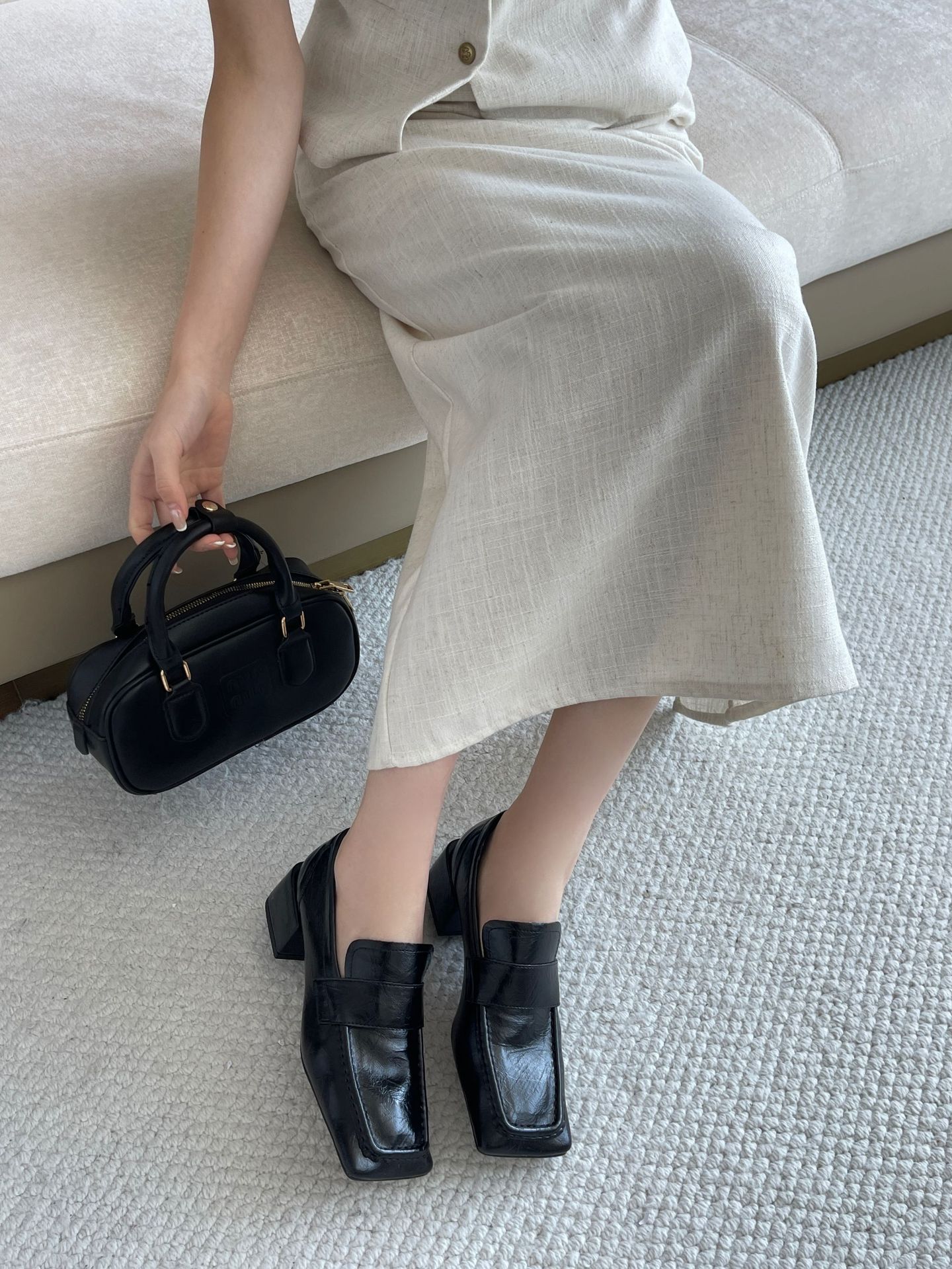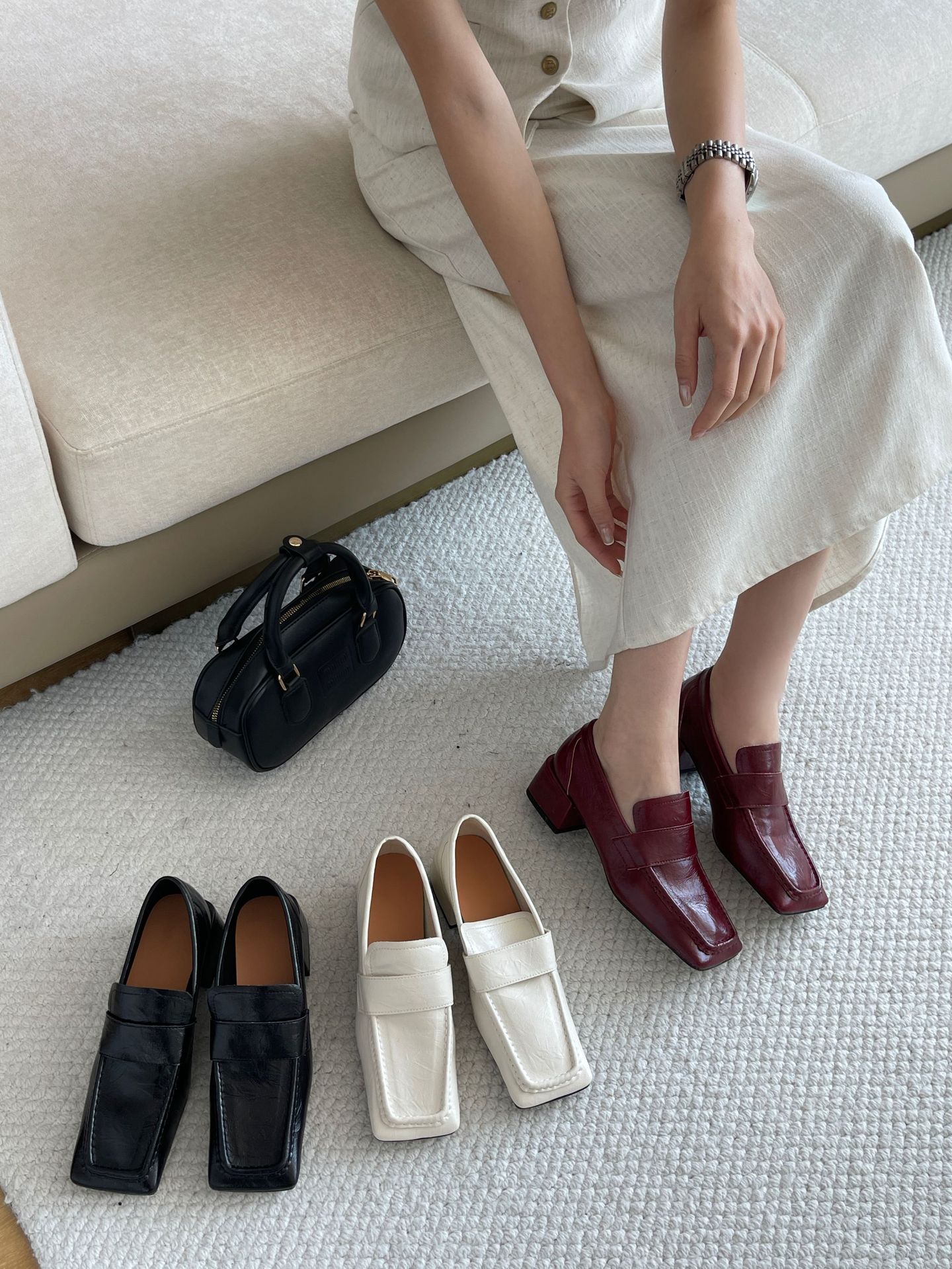 작은 가죽 신발 새로운 스퀘어 헤드 로퍼 두꺼운 힐 슈퍼 소프트 편안한 슬립-25 봄/여름 새로운 예술적 통근 여성 신발