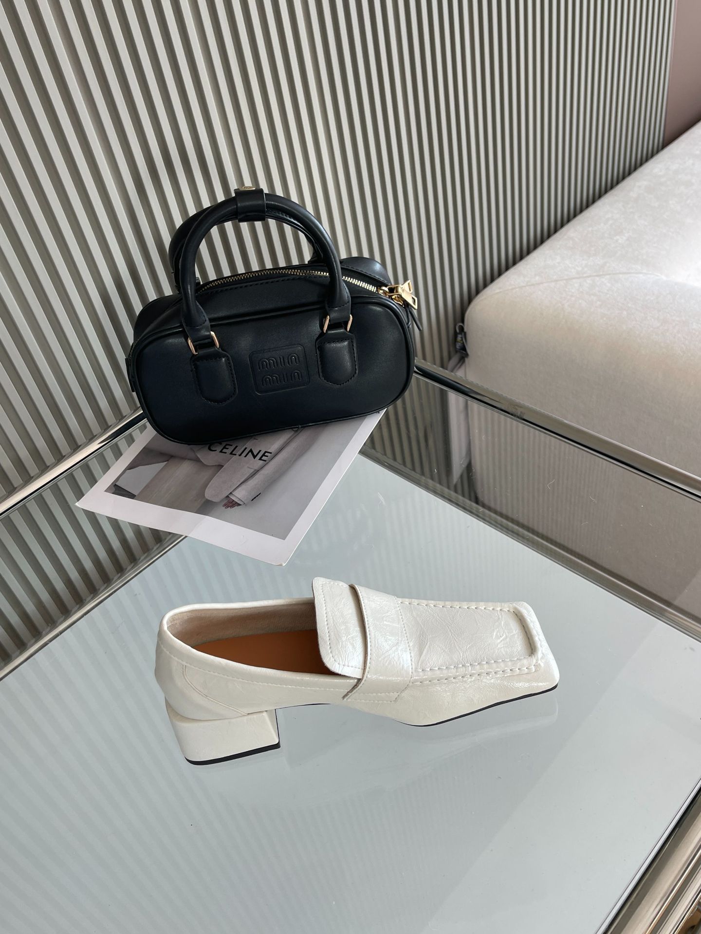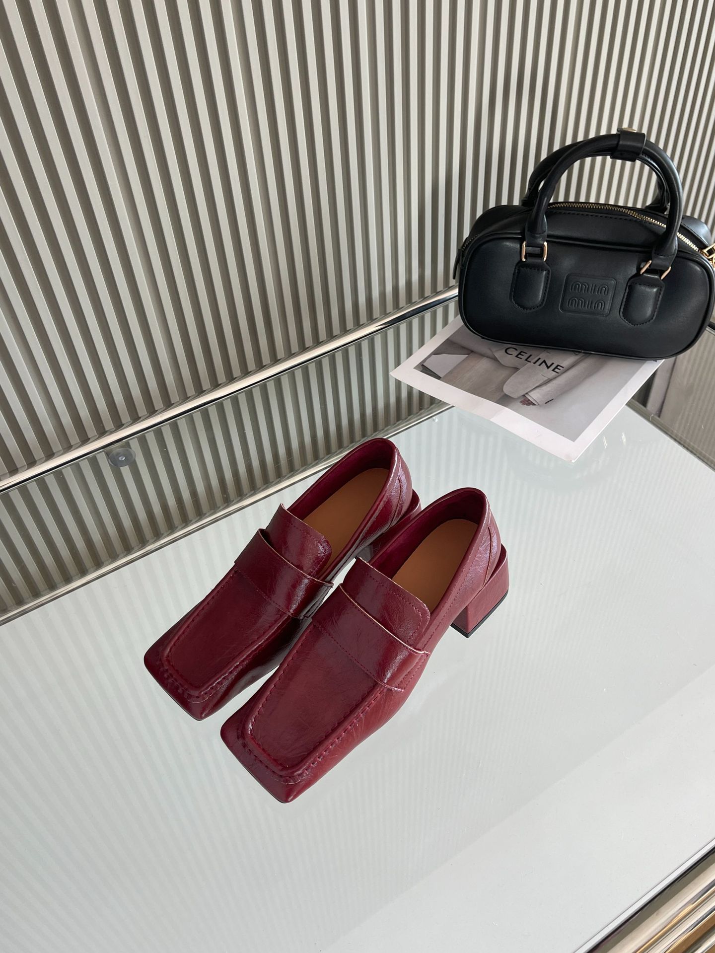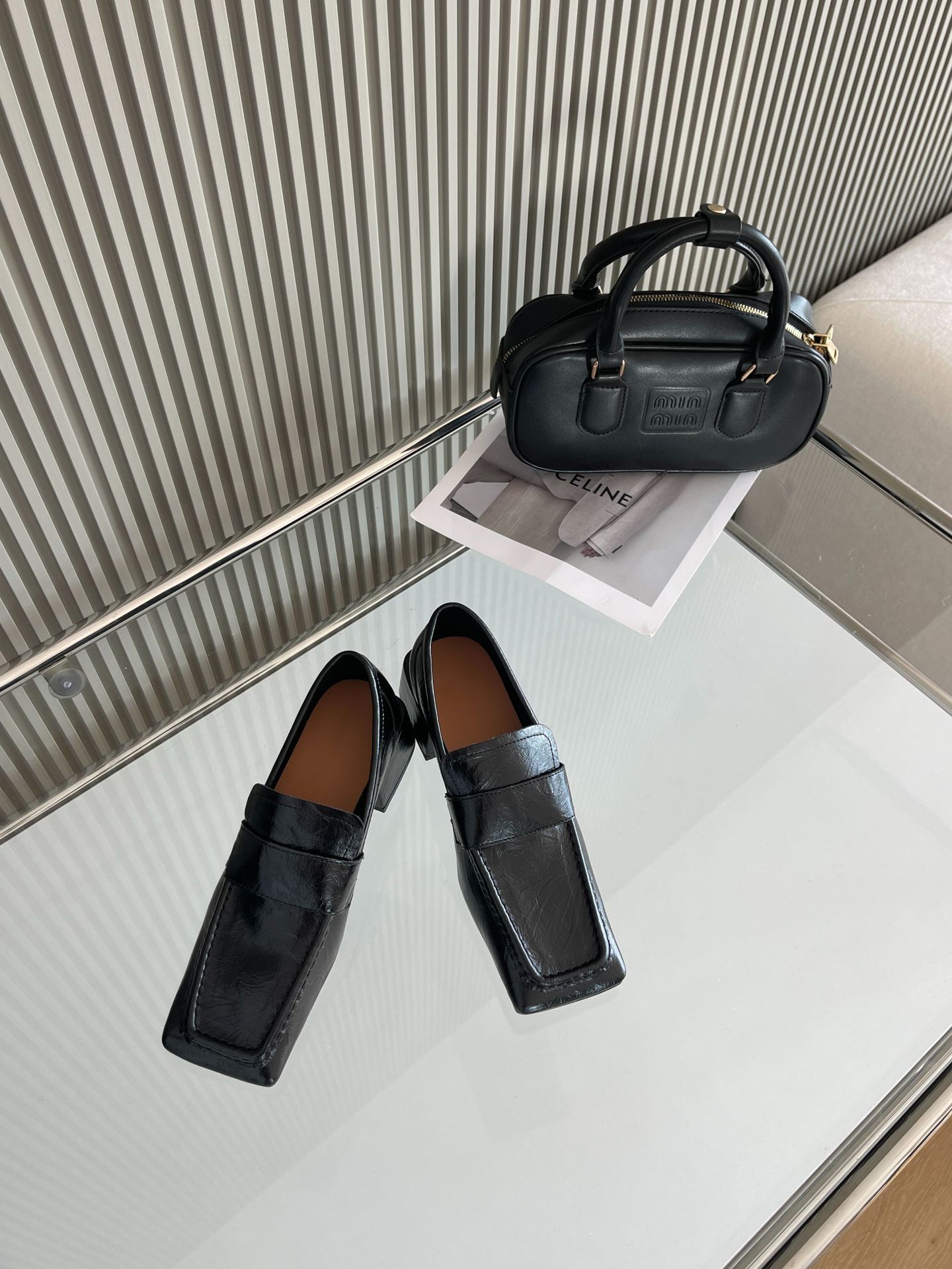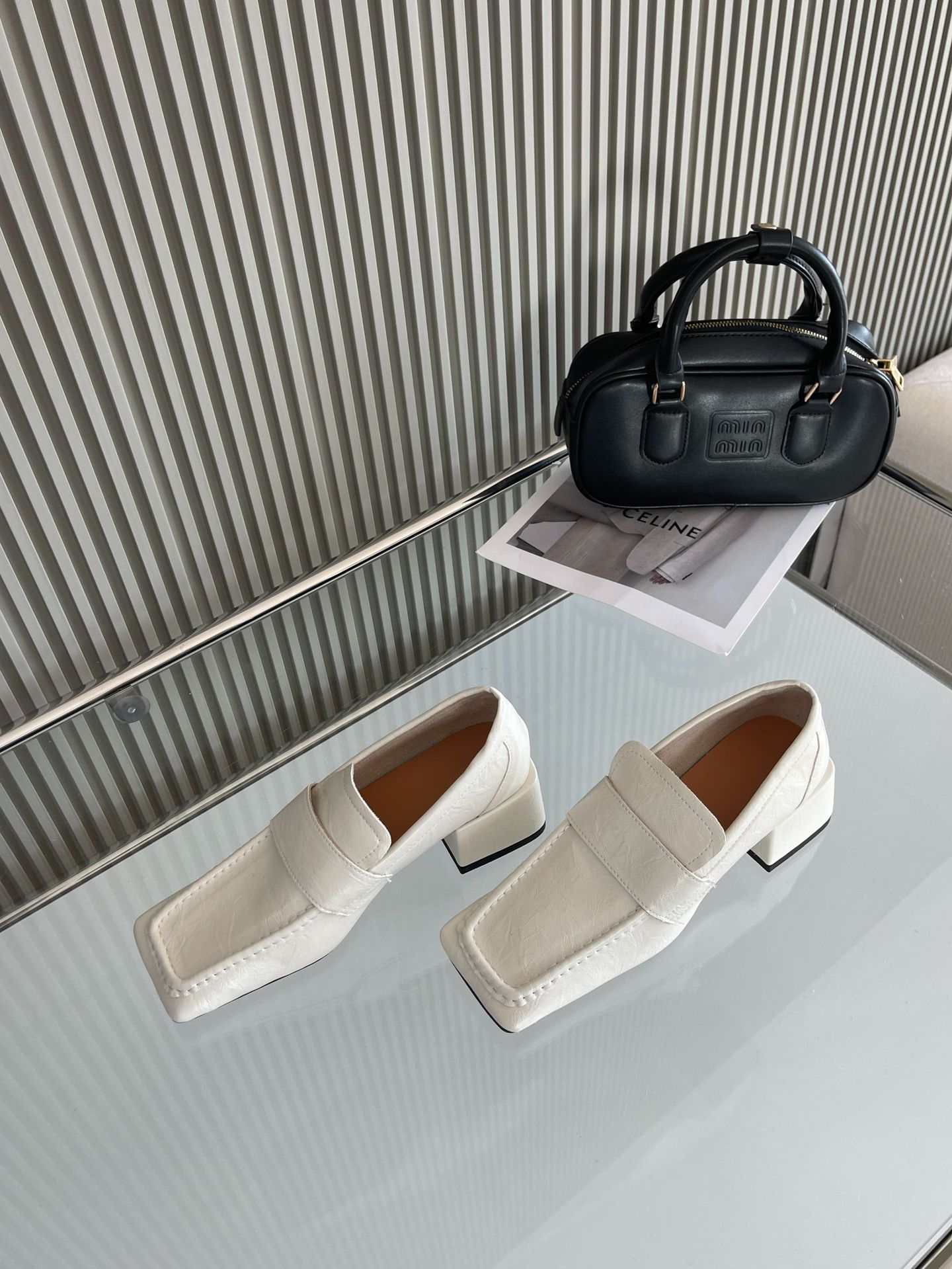 작은 가죽 신발 새로운 스퀘어 헤드 로퍼 두꺼운 힐 슈퍼 소프트 편안한 슬립-25 봄/여름 새로운 예술적 통근 여성 신발