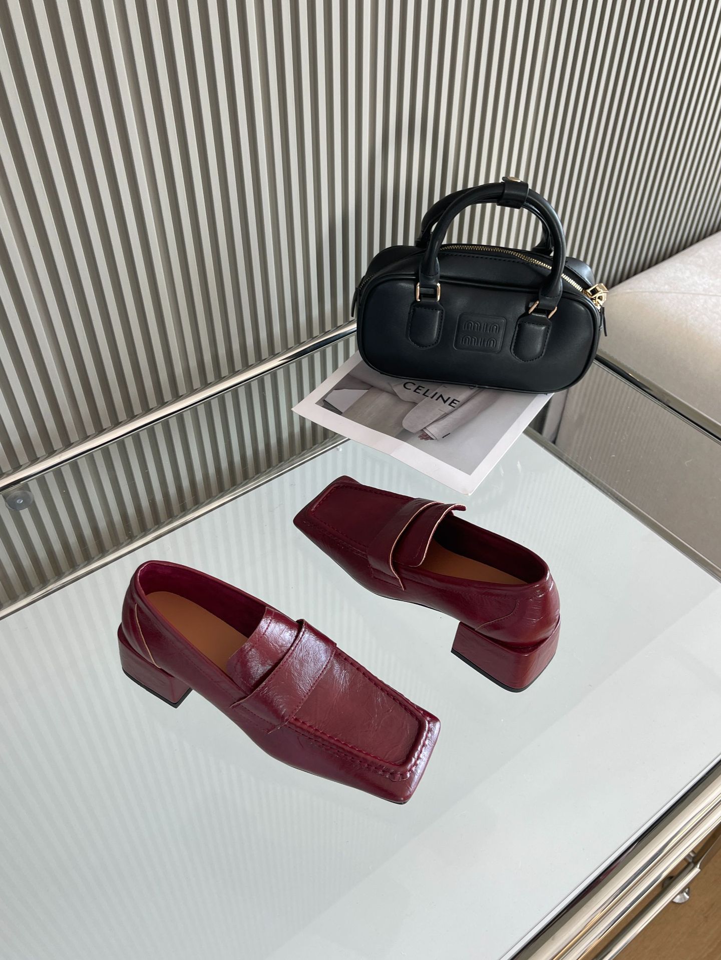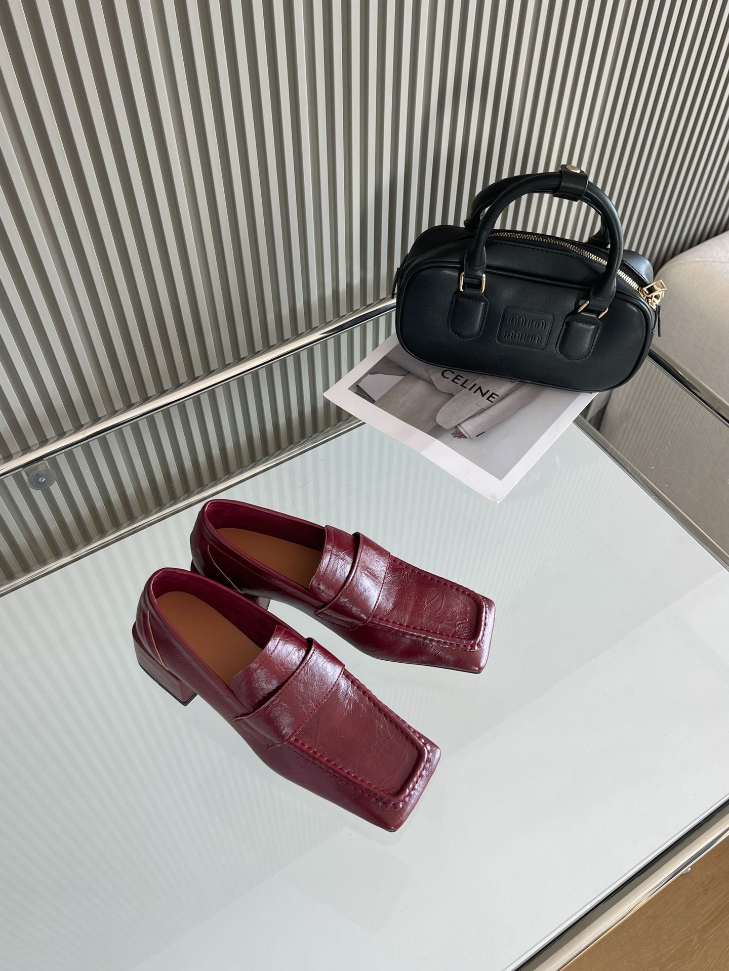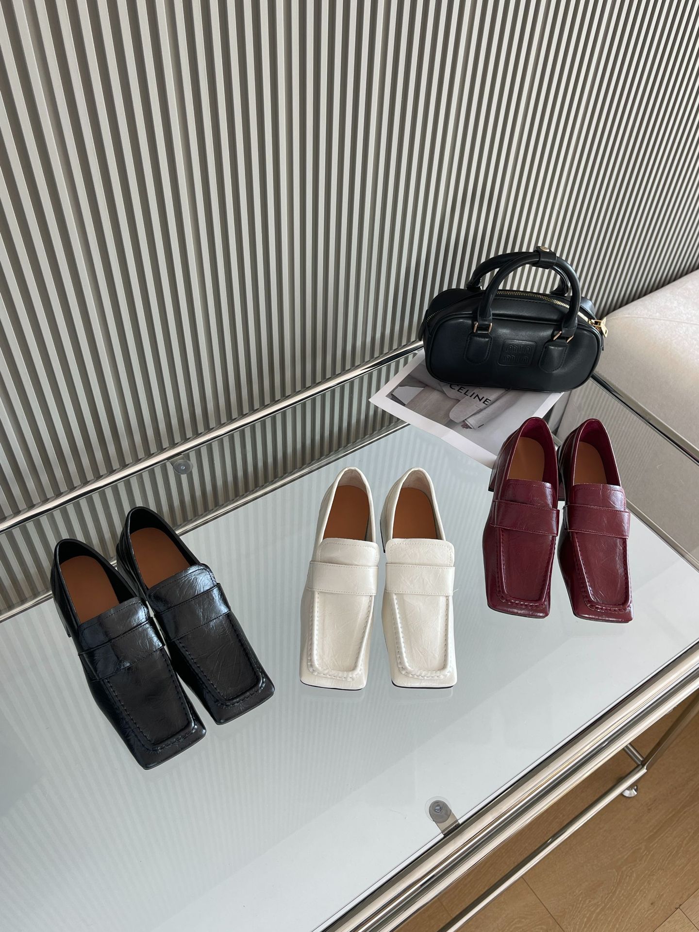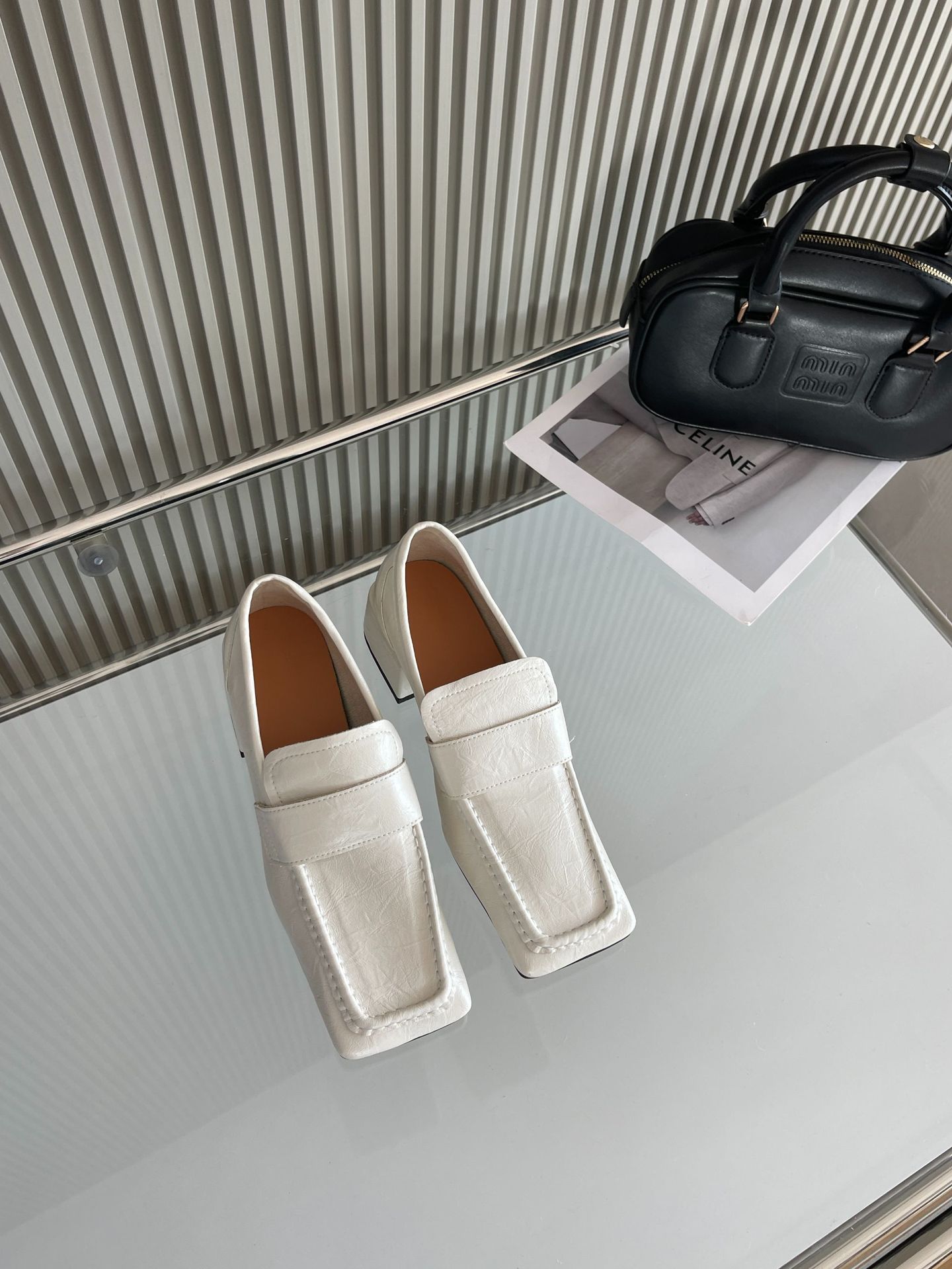 작은 가죽 신발 새로운 스퀘어 헤드 로퍼 두꺼운 힐 슈퍼 소프트 편안한 슬립-25 봄/여름 새로운 예술적 통근 여성 신발