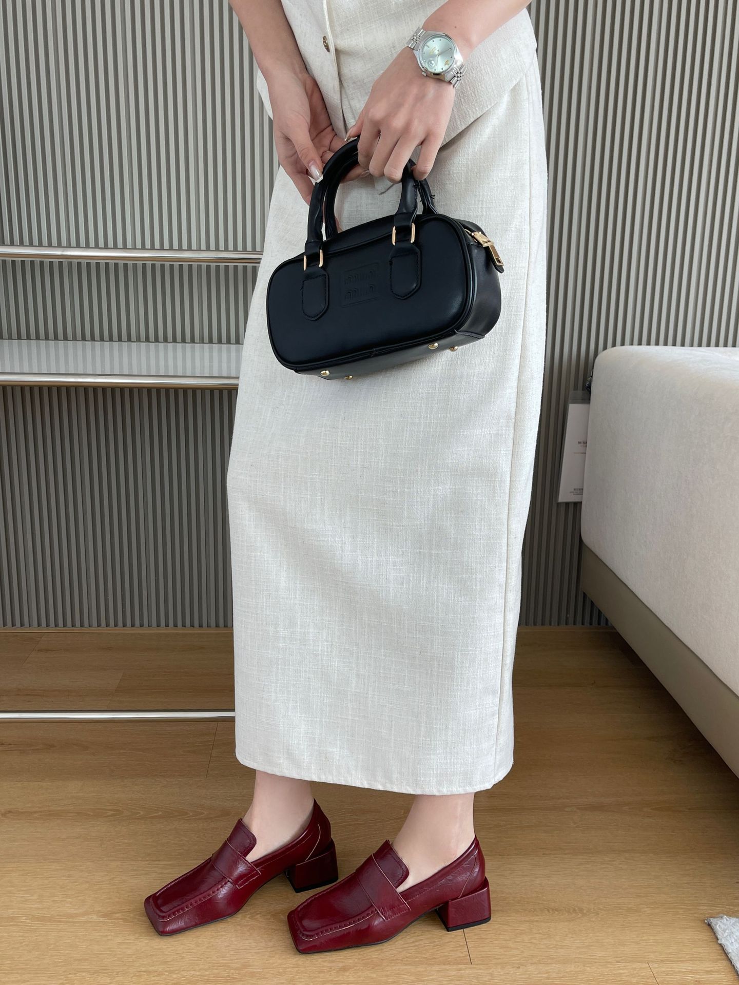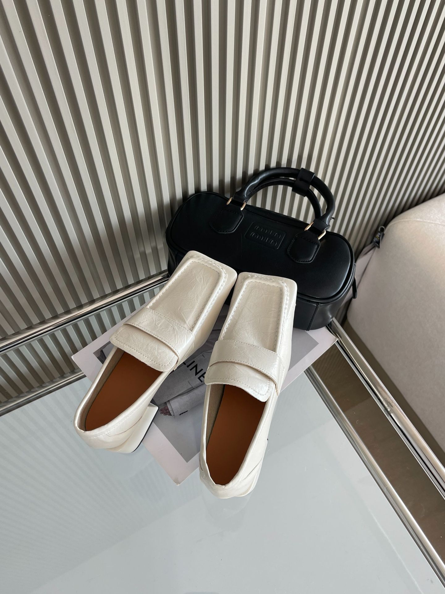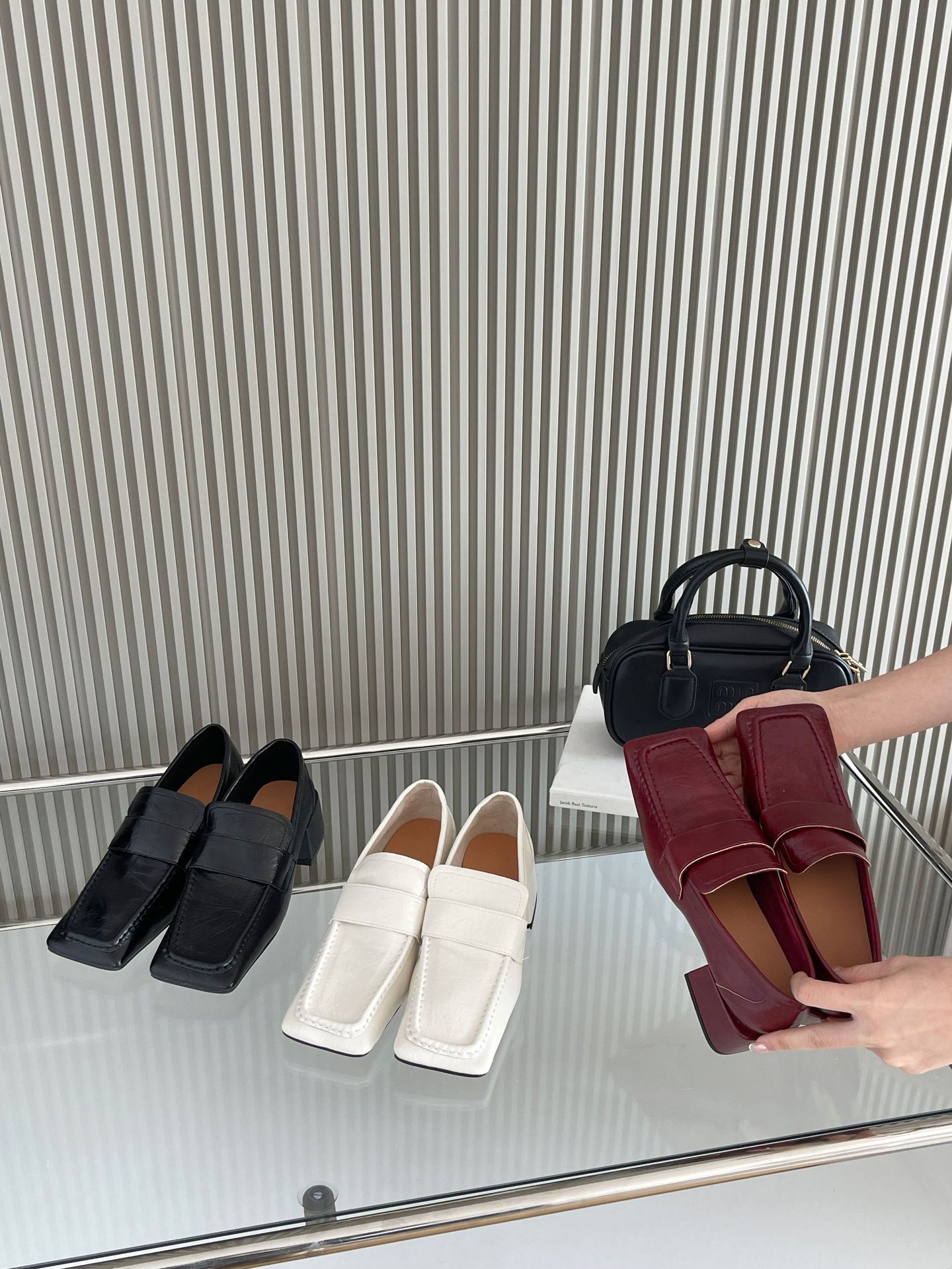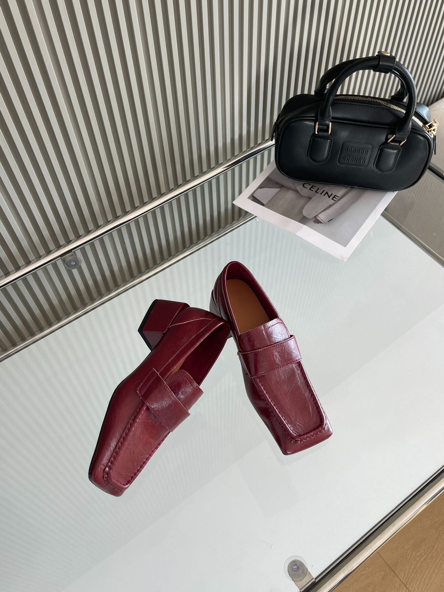 작은 가죽 신발 새로운 스퀘어 헤드 로퍼 두꺼운 힐 슈퍼 소프트 편안한 슬립-25 봄/여름 새로운 예술적 통근 여성 신발