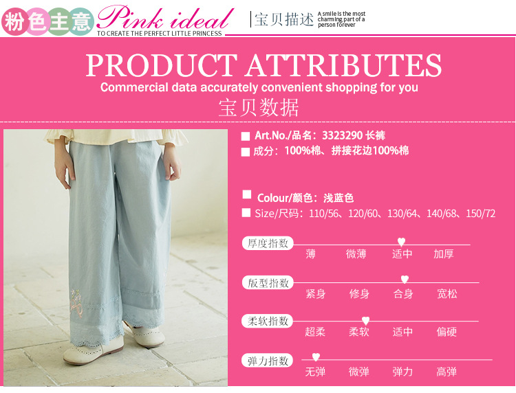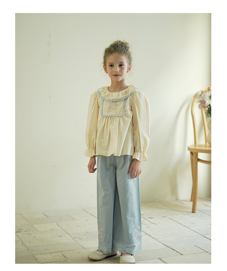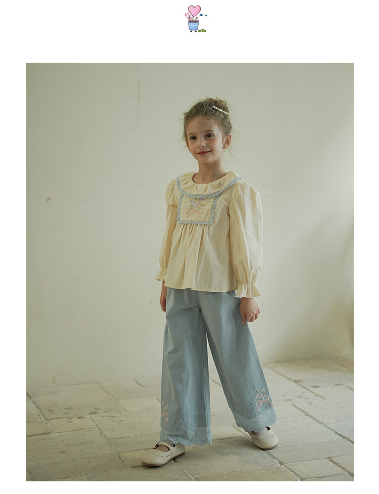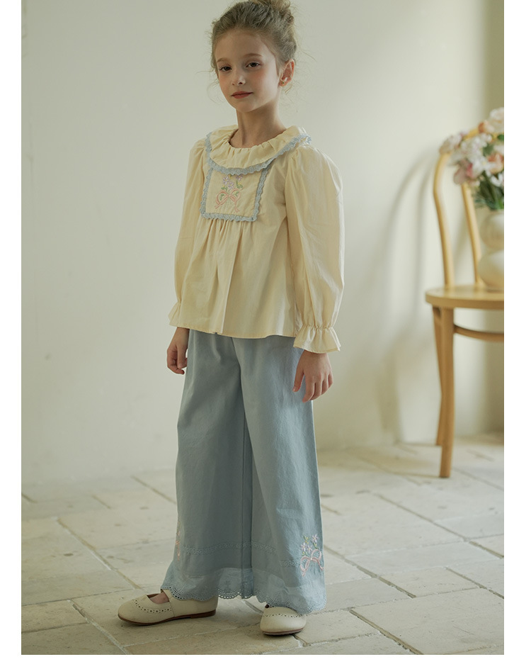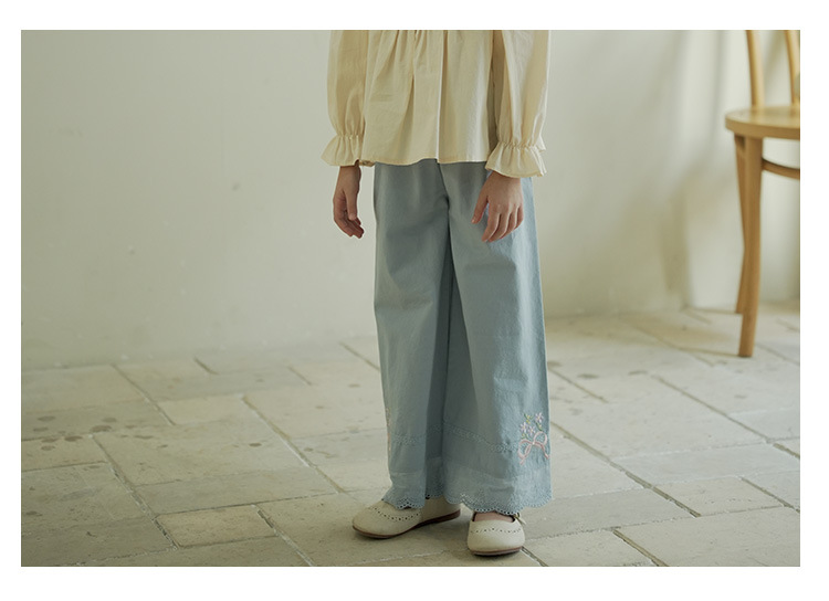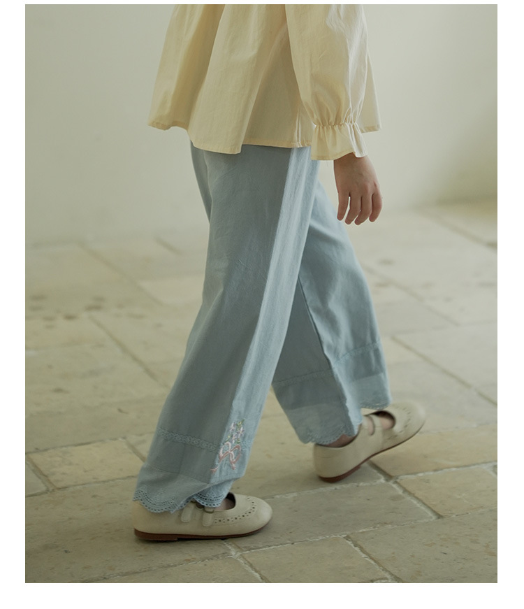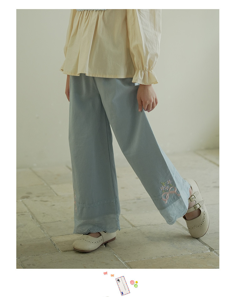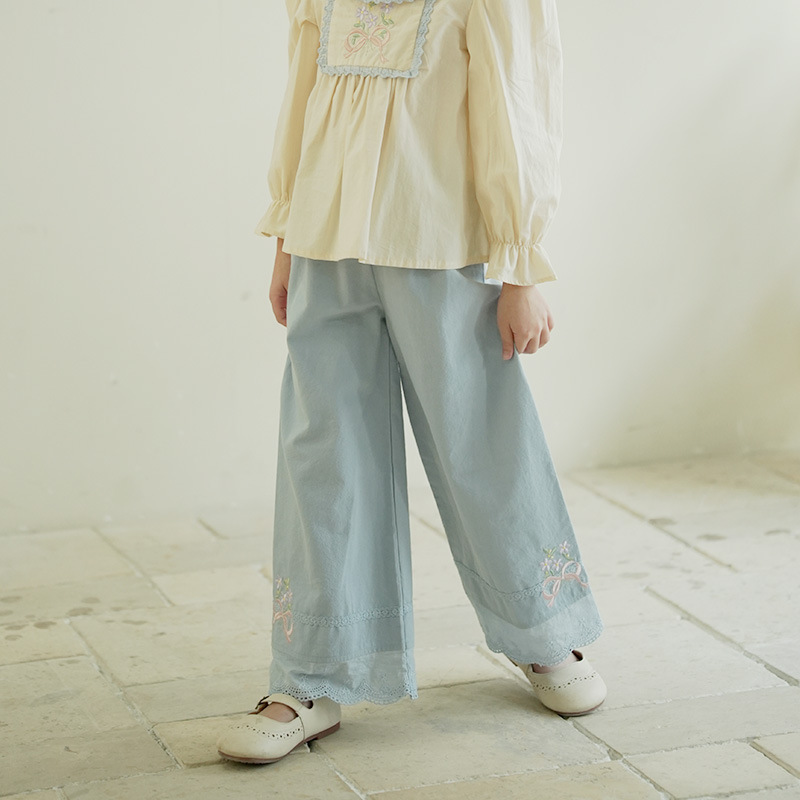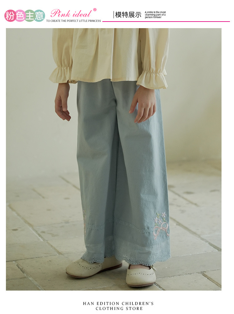 [특가] 스트레이트 와이드 팬츠, 순면 한국 스타일 자수 레이스 아동용 긴바지, 봄 가을 여아 바지스토어 가기