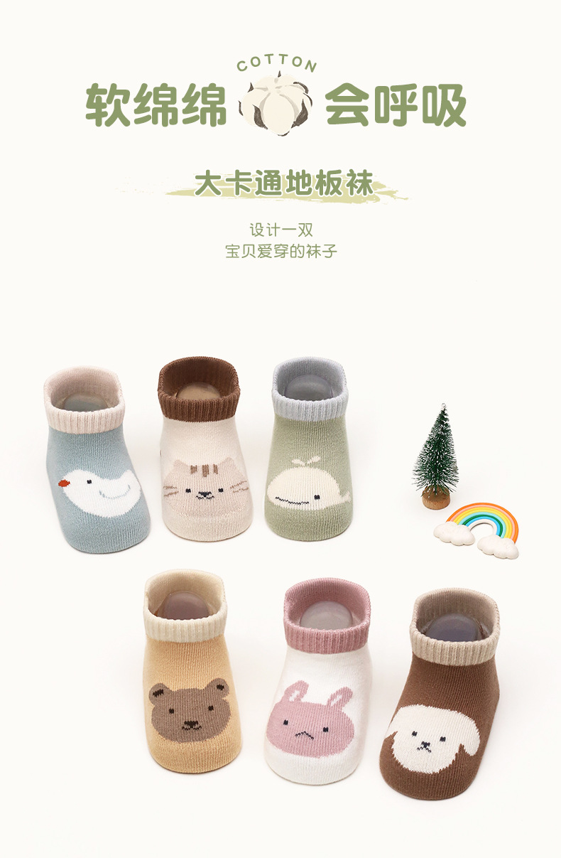 한국판 만화 캐릭터 남녀 아기용 미끄럼 방지 보트 양말, 유아용 점착 트램폴린 양말, 새와 고래 바닥 양말스토어 가기