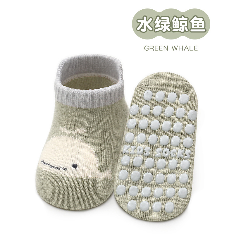 한국판 만화 캐릭터 남녀 아기용 미끄럼 방지 보트 양말, 유아용 점착 트램폴린 양말, 새와 고래 바닥 양말
