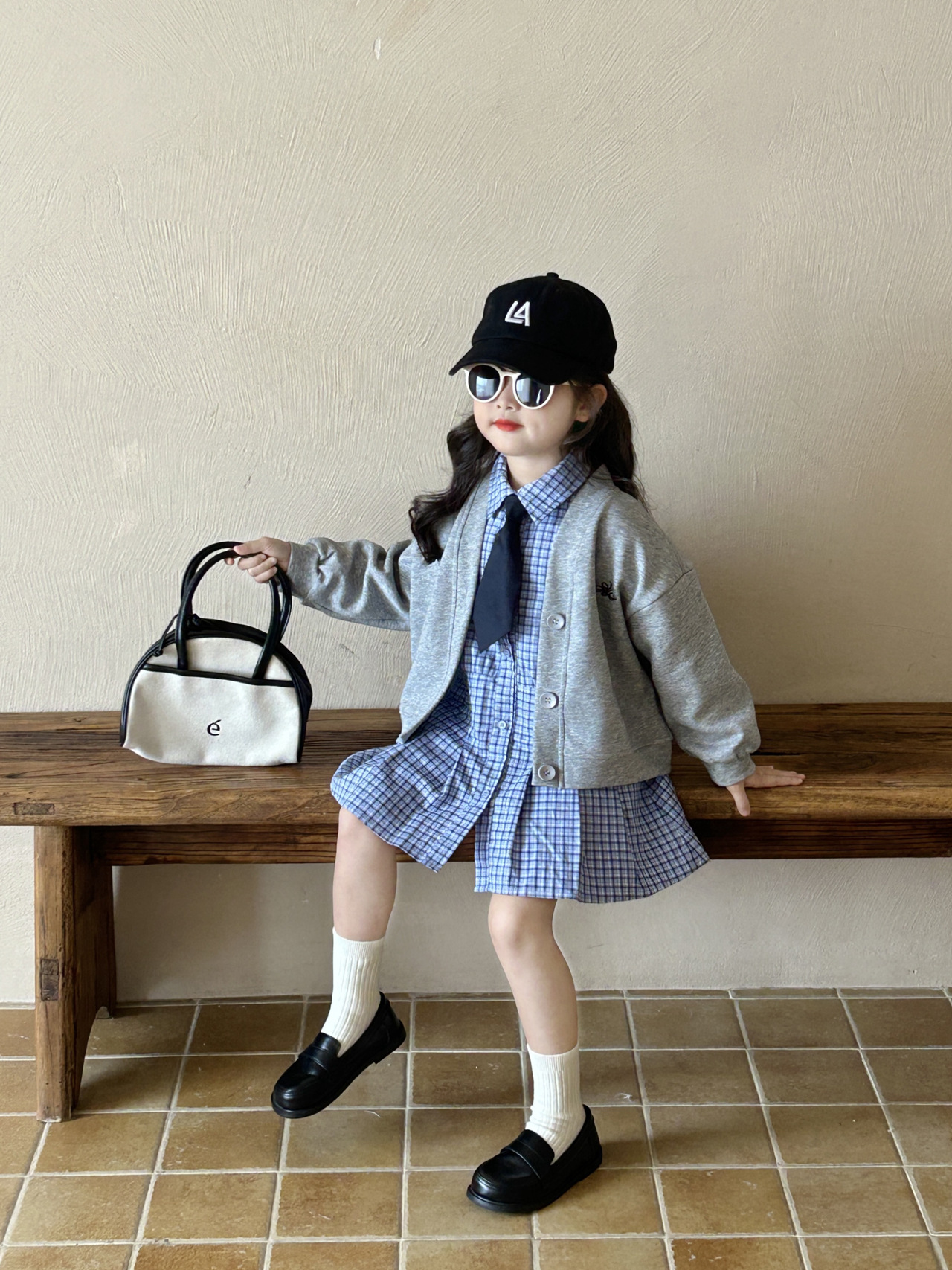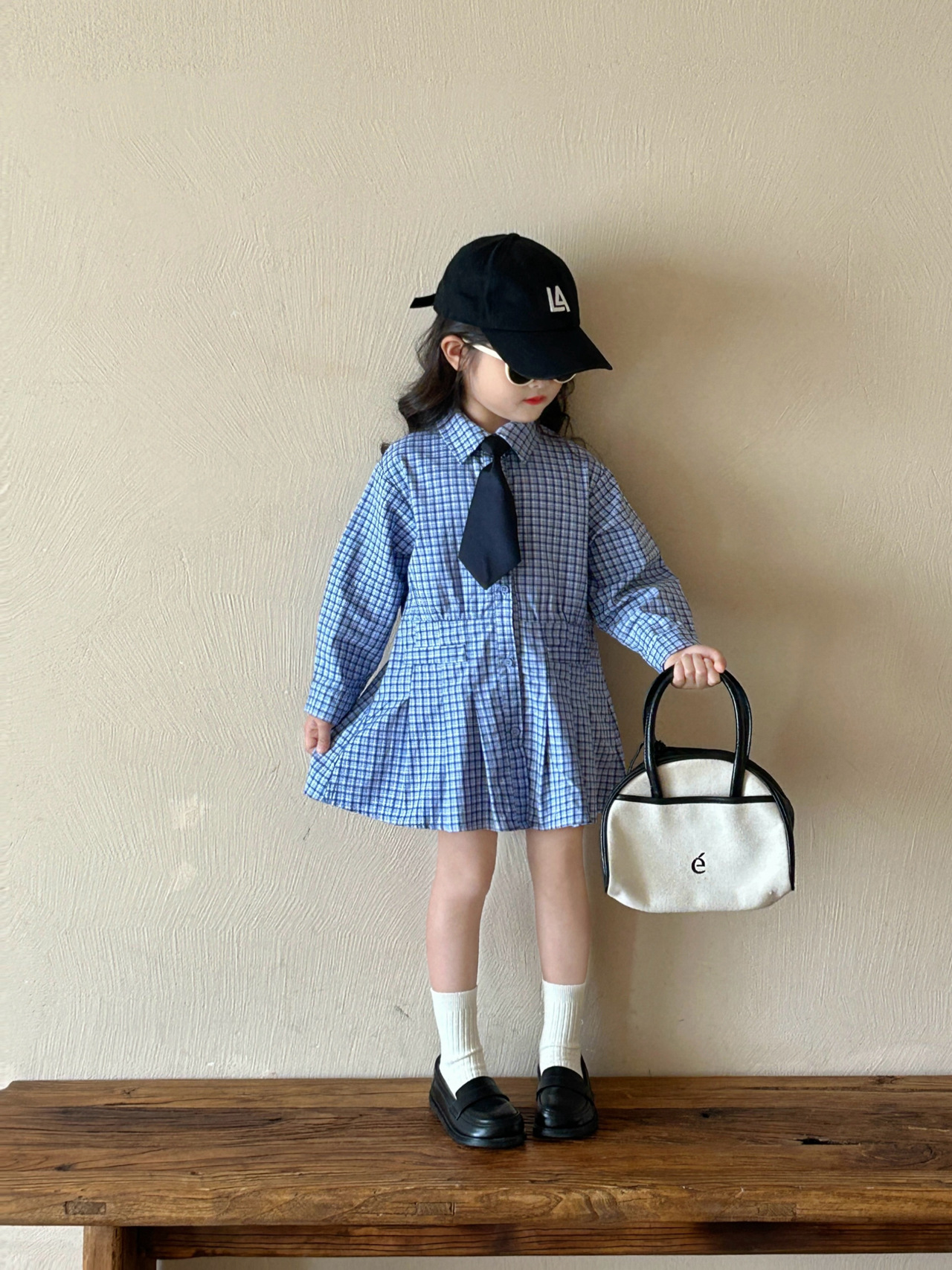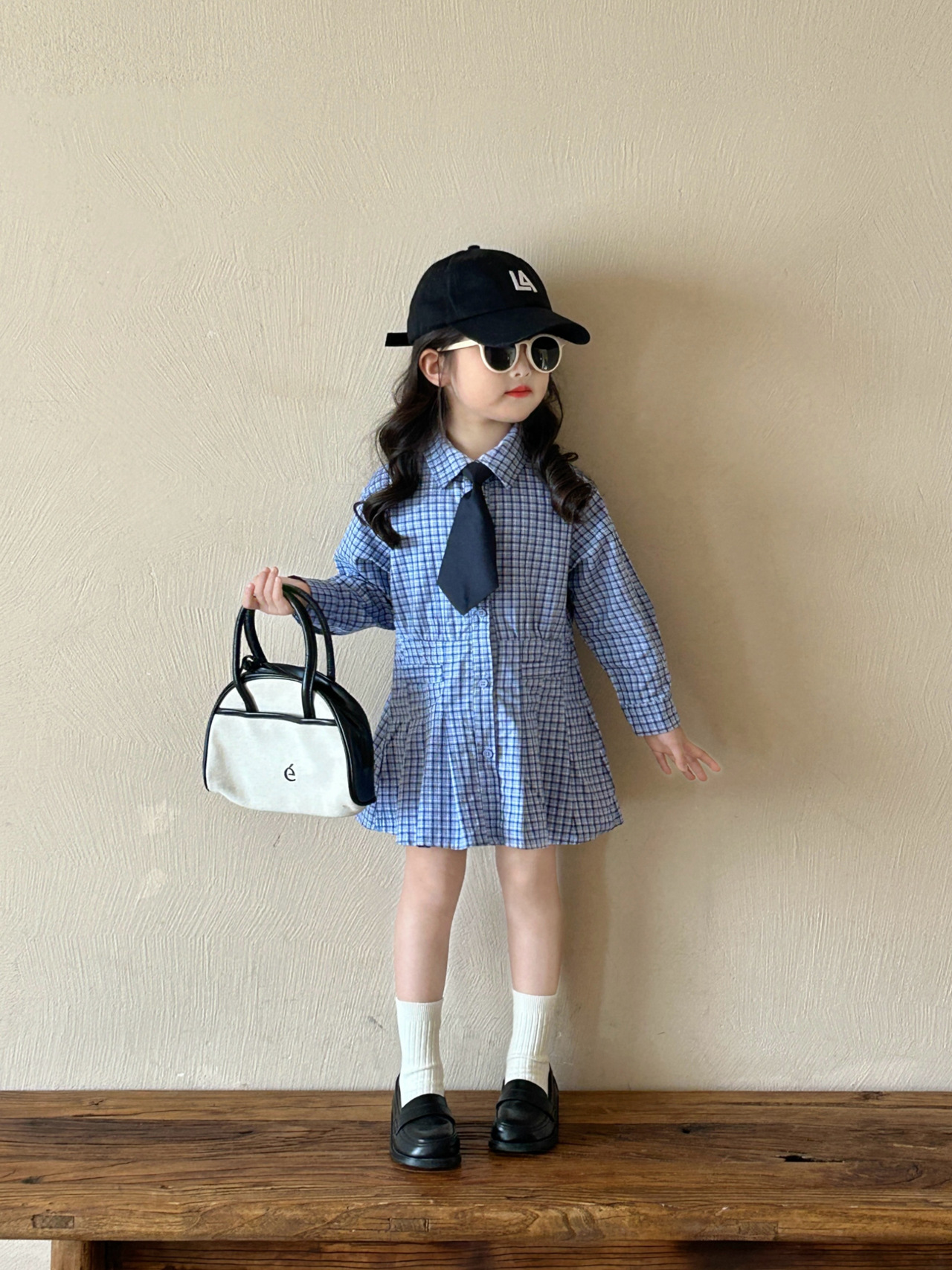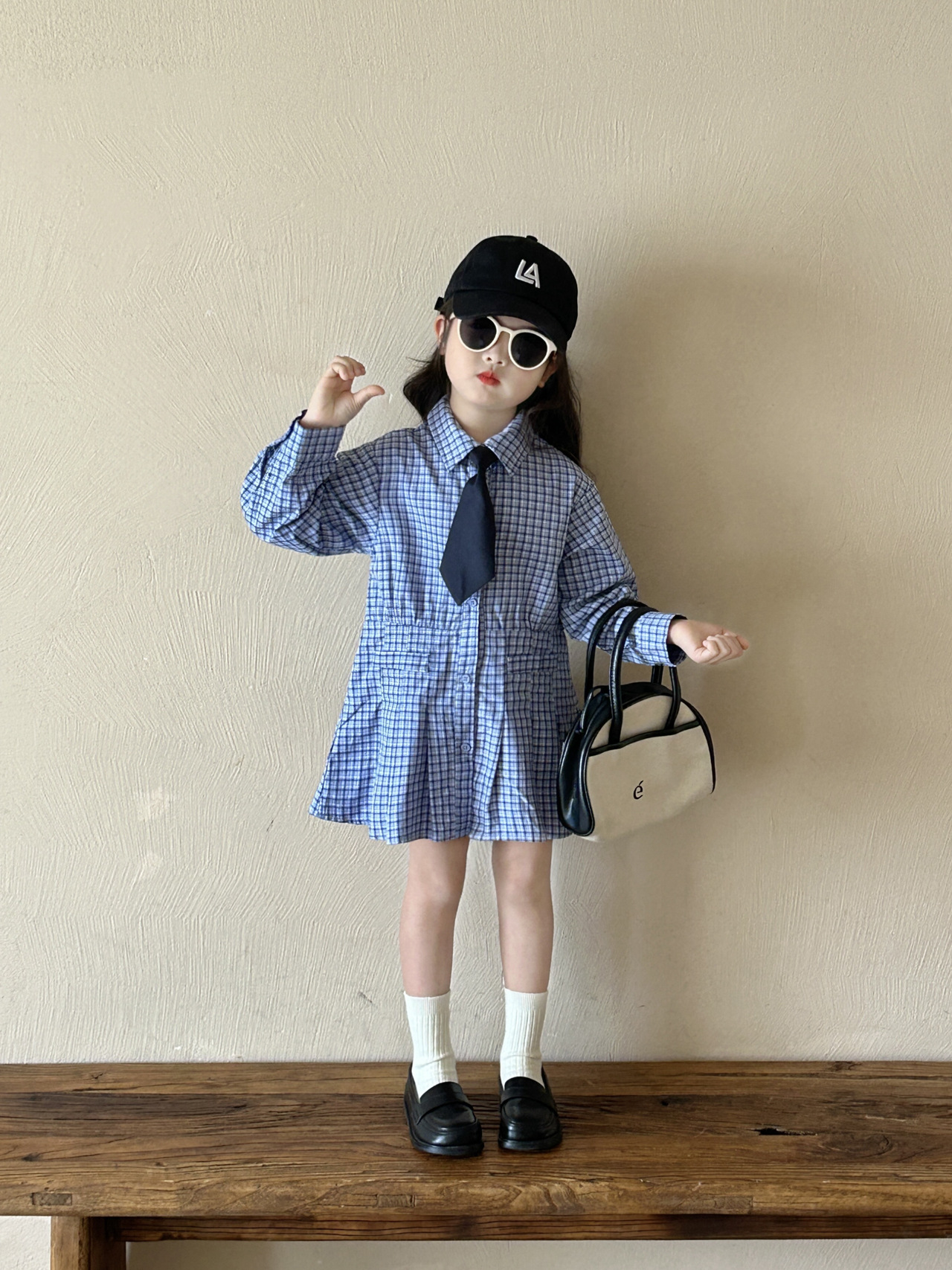 봄 2025 중소 여자를위한 새로운 한국 스타일 재킷 싱글 가슴 재킷 캐주얼 타이 격자 무늬 원피스스토어 가기