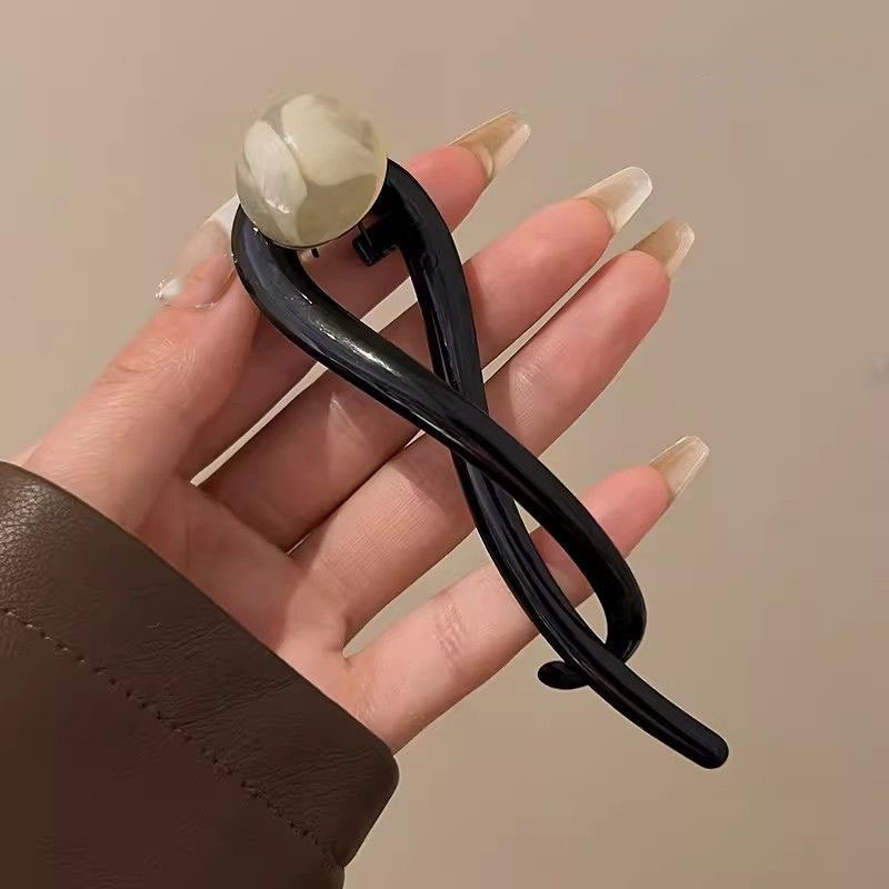 빈티지 대기 다크 브라운 구슬 한 단어 잡아 클립 여성의 2024 새로운 하이 엔드 센스 트위스트 헤어핀 백 상어 클립