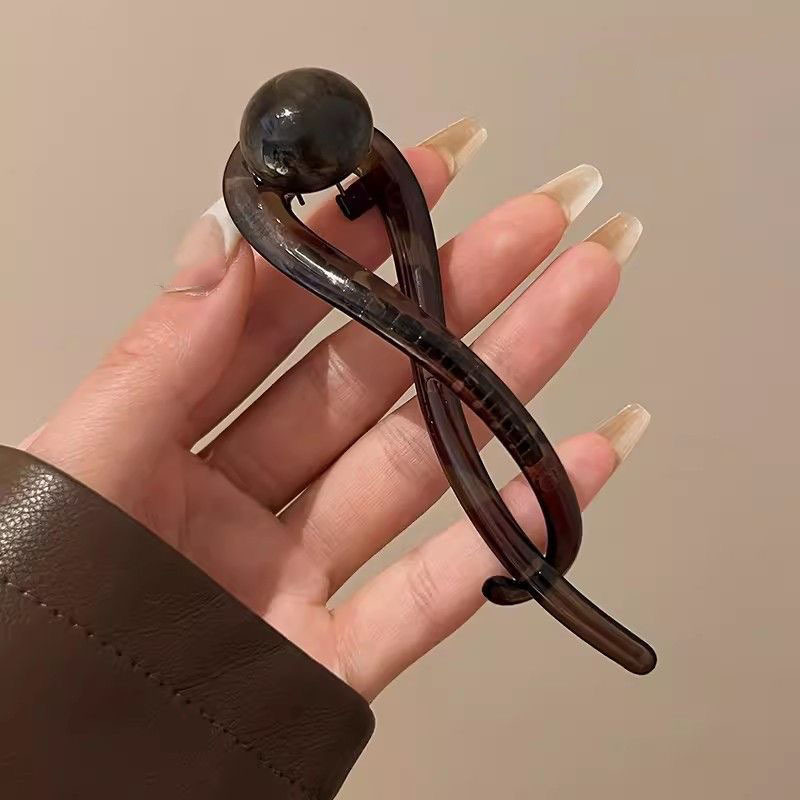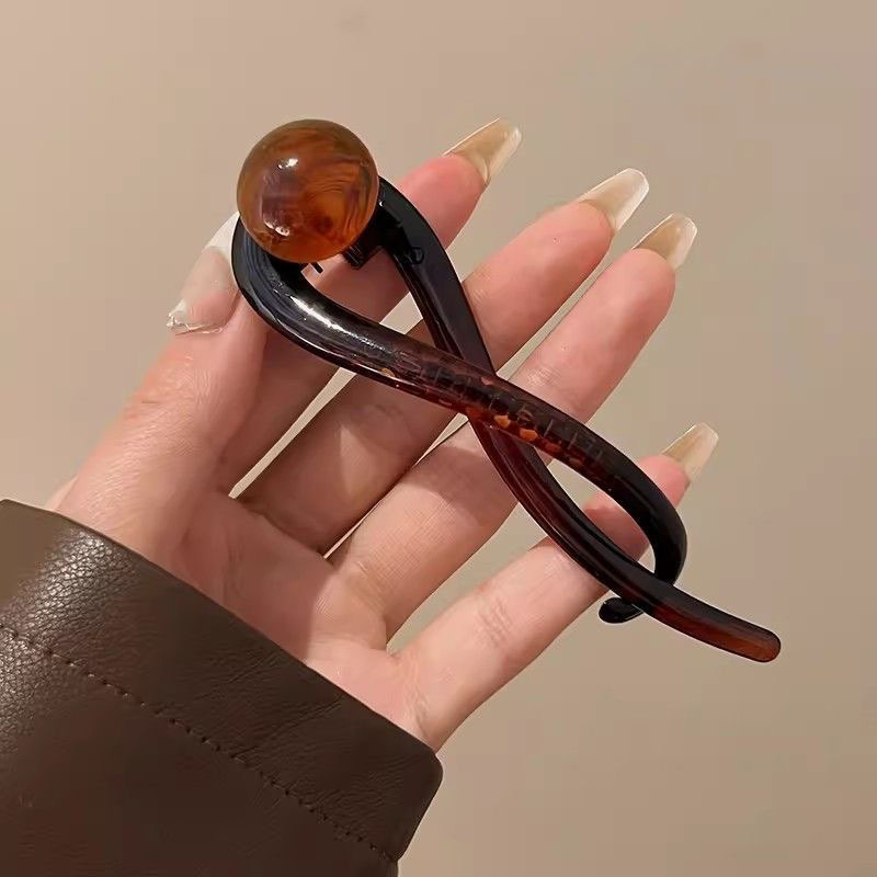 빈티지 대기 다크 브라운 구슬 한 단어 잡아 클립 여성의 2024 새로운 하이 엔드 센스 트위스트 헤어핀 백 상어 클립스토어 가기