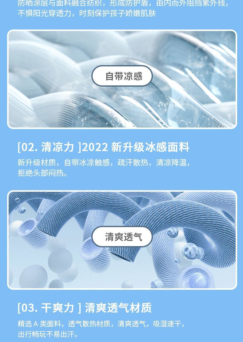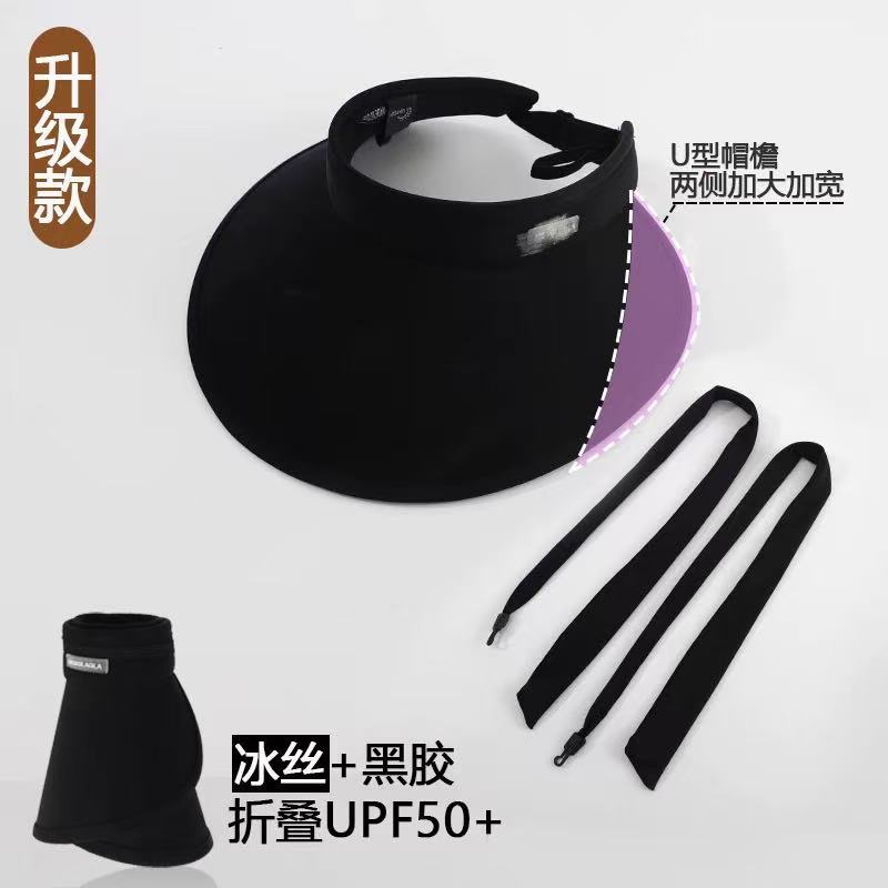 • 어린이용 챙 넓은 모자 - 블랙 + [아이스 실크 방풍 스트랩]