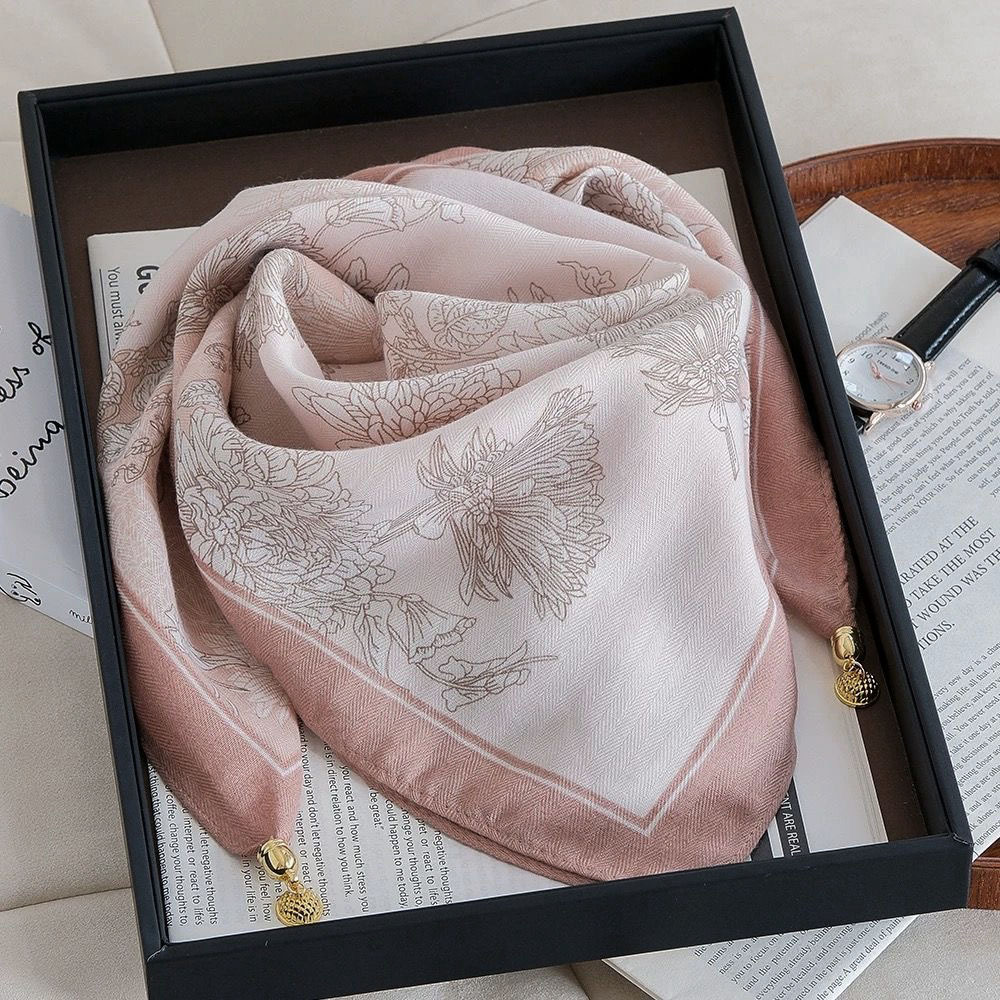 • 벨벳 스퀘어 스카프 - 요정꽃나라 벨벳