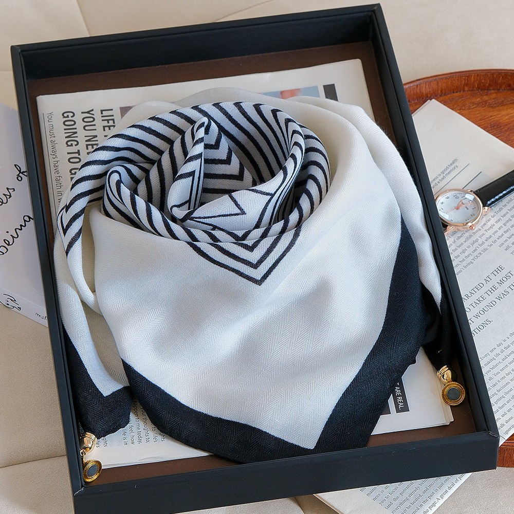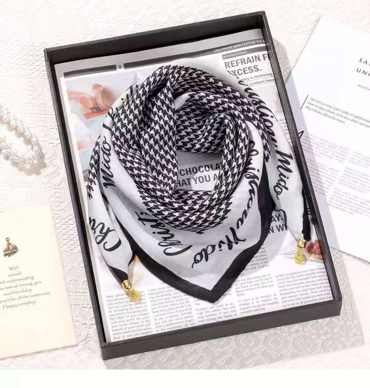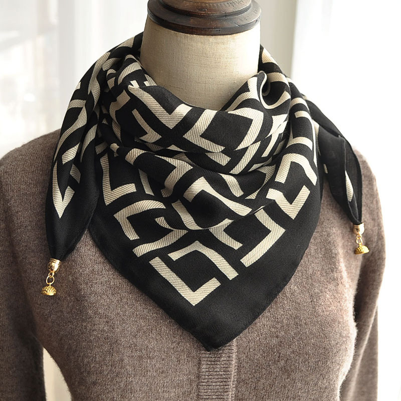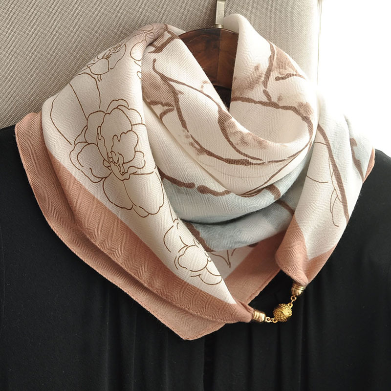 마그네틱 버클 스퀘어 스카프 여성 신식 한국식 스카프 목 보호 작은 스카프 봄 가을 겨울 면 고급 감각 연령 감소