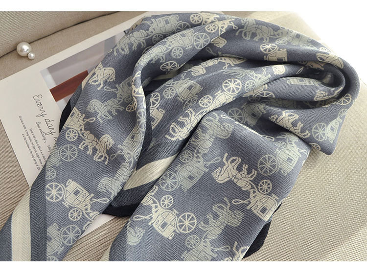 • 벨벳 스퀘어 스카프 - 캐리지 블루 그레이 벨벳