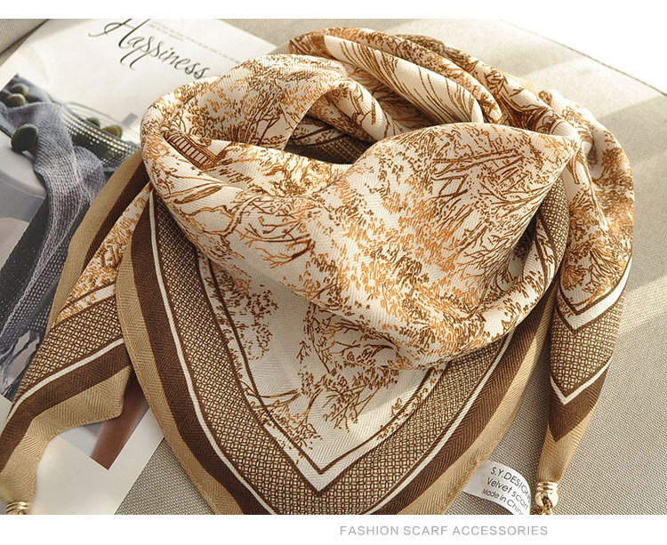 • 벨벳 스퀘어 스카프 - 트로피컬 커피 벨벳