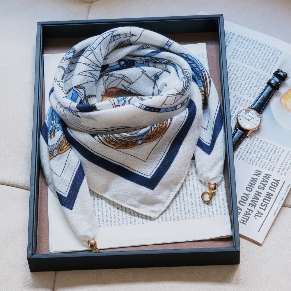 마그네틱 버클 스퀘어 스카프 여성 신식 한국식 스카프 목 보호 작은 스카프 봄 가을 겨울 면 고급 감각 연령 감소스토어 가기