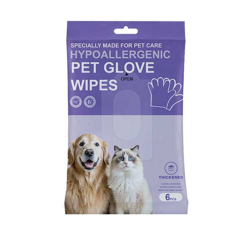 • 애완동물용 장갑 물티슈 6팩, '두꺼운 팩', 보라색 스타일