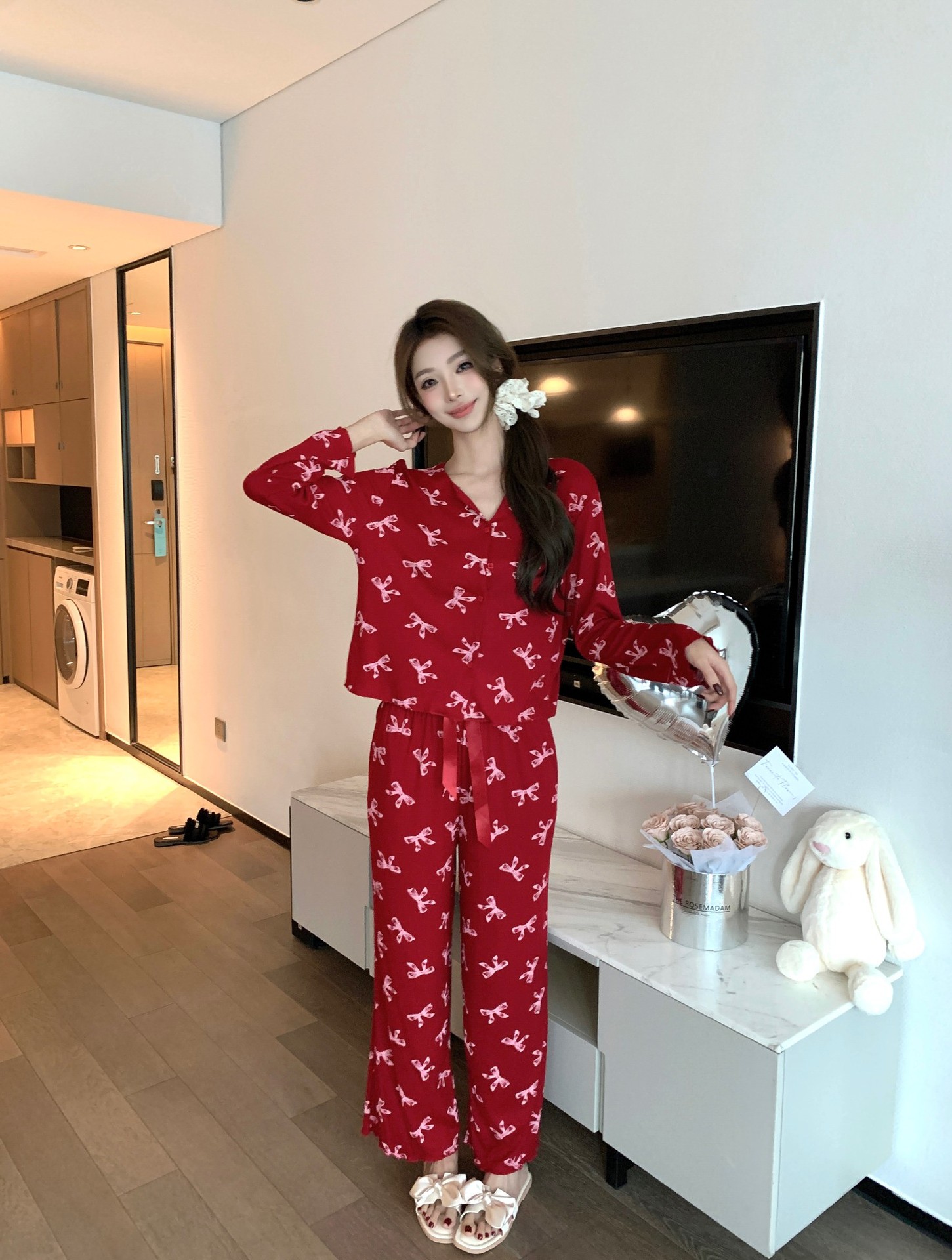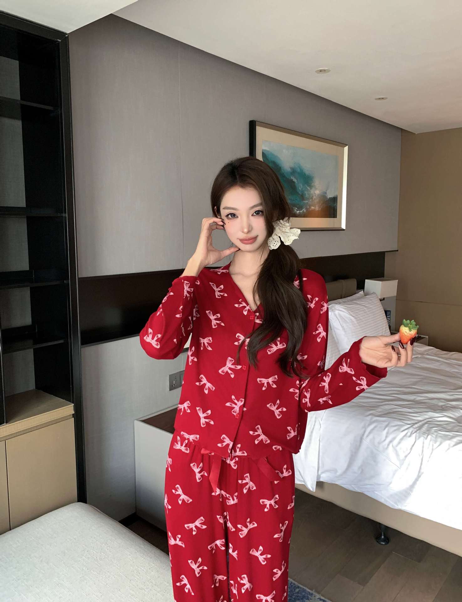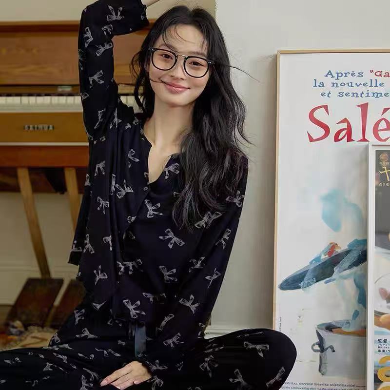 [나비] 2025 년 봄 가을 긴 소매 결혼식 신혼용 모달 잠옷스토어 가기