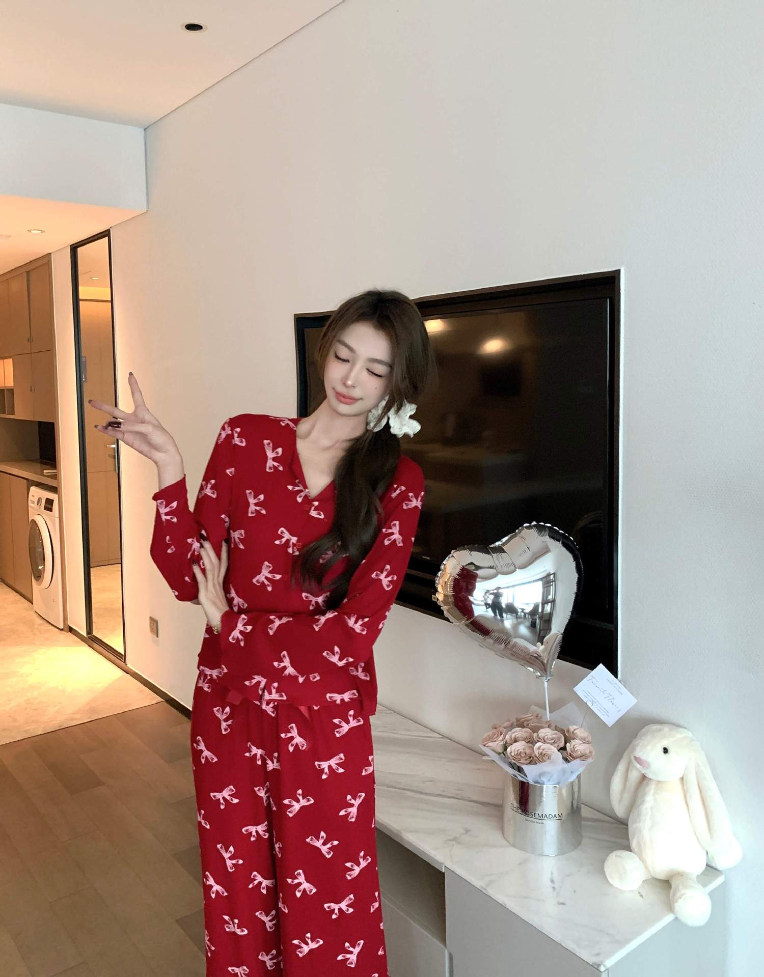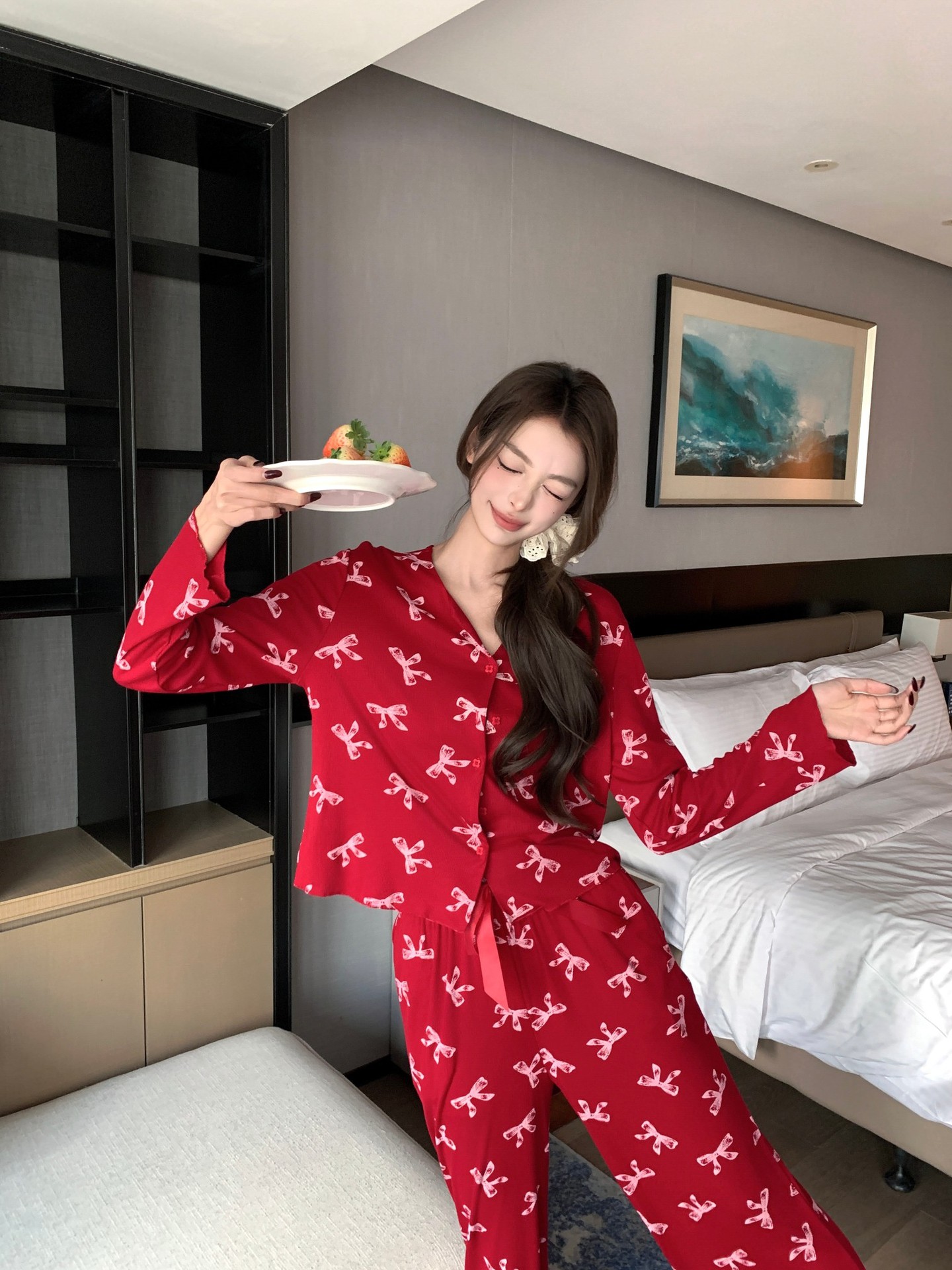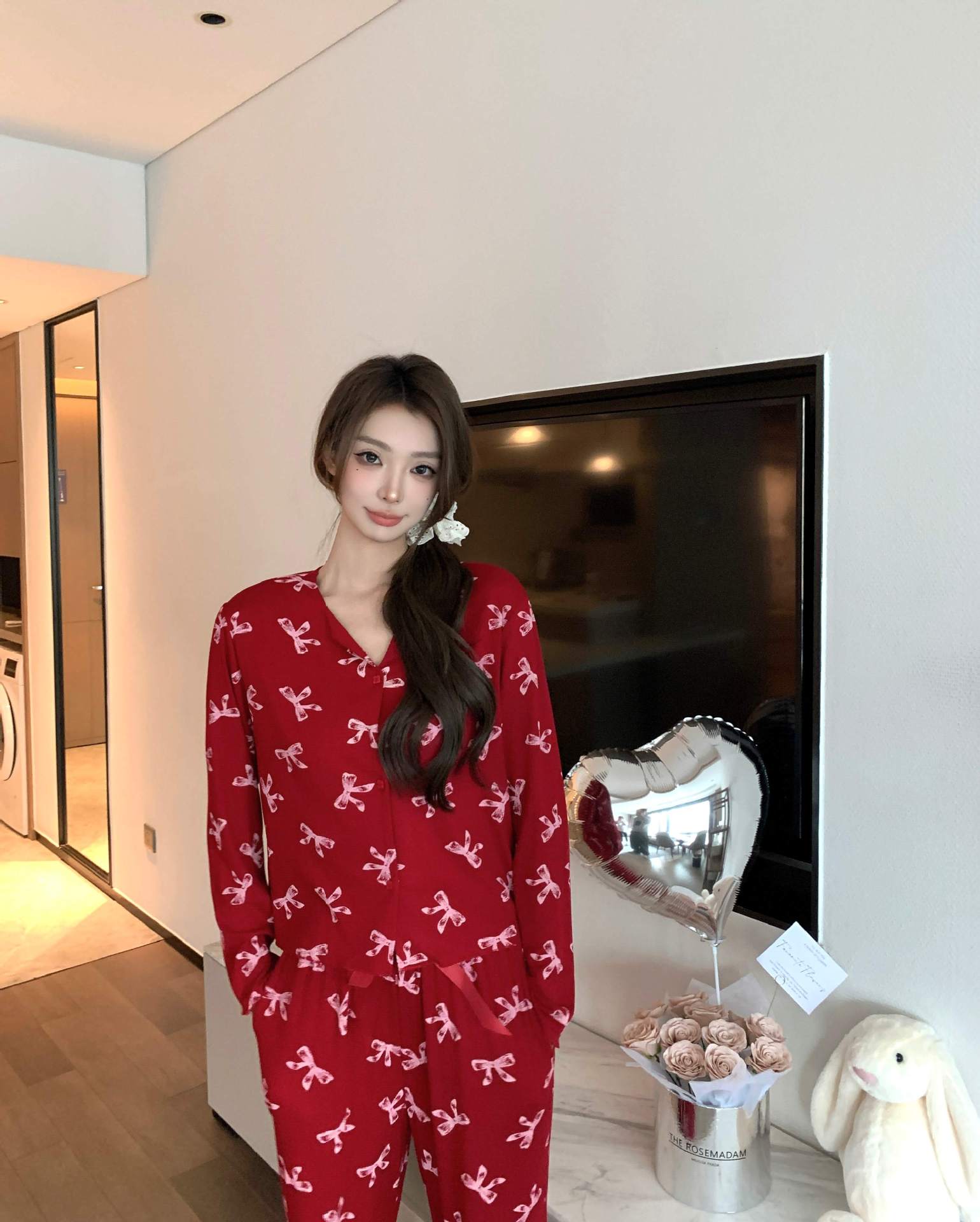 [나비] 2025 년 봄 가을 긴 소매 결혼식 신혼용 모달 잠옷스토어 가기