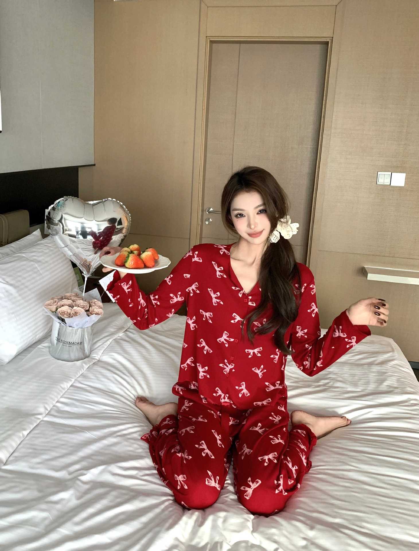 [나비] 2025 년 봄 가을 긴 소매 결혼식 신혼용 모달 잠옷
