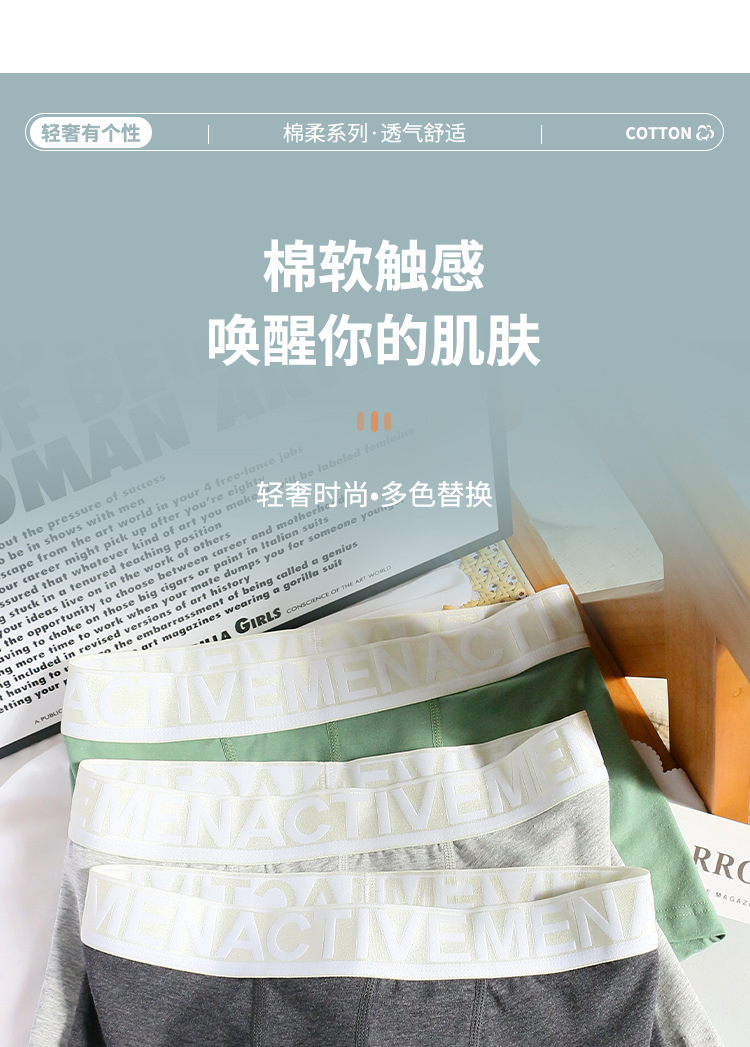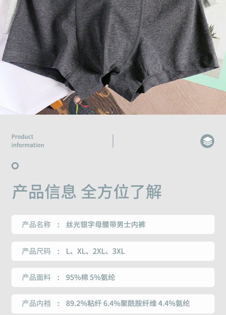 멀티 스트립 코튼 실크 실버 레터 벨트 남성용 속옷 편안한 통기성 청소년 라이트 럭셔리 복서 반바지 트렌디
