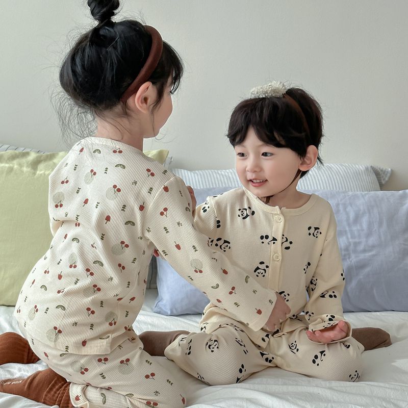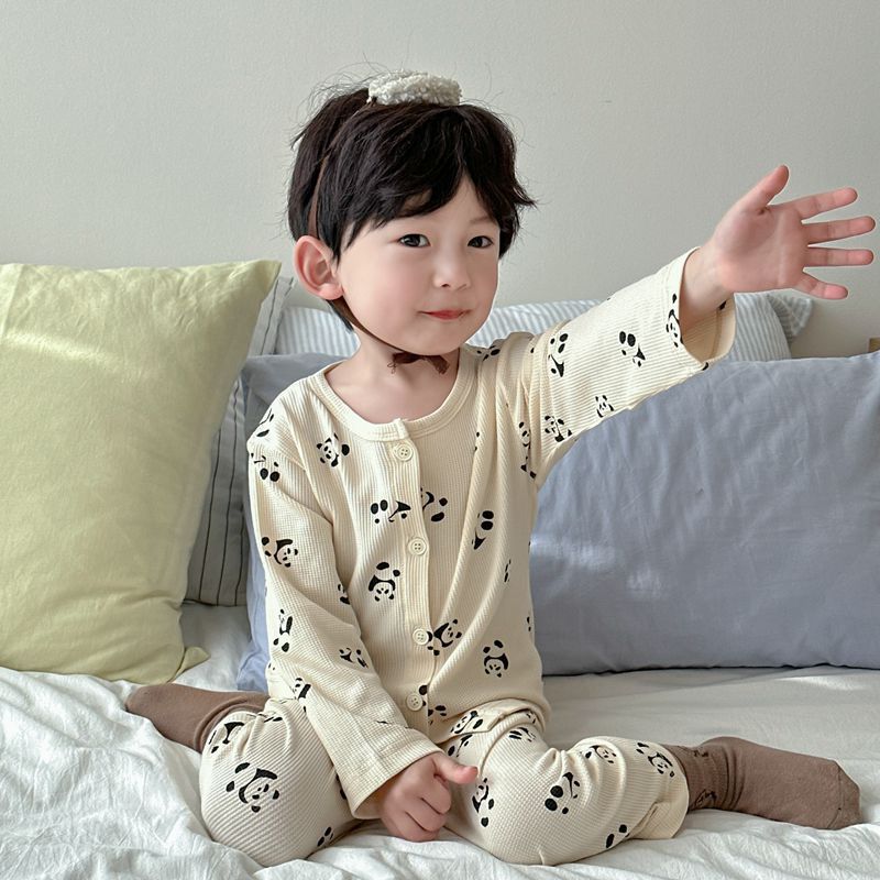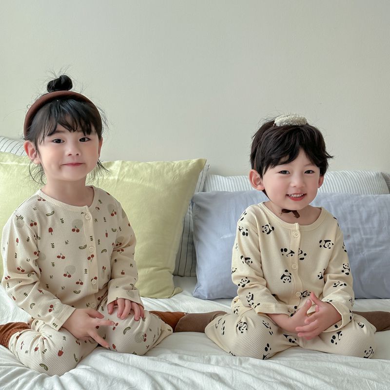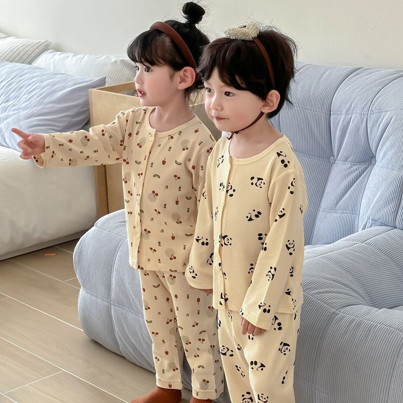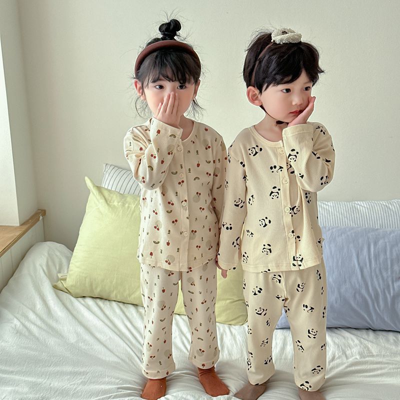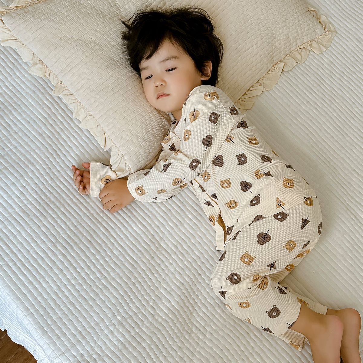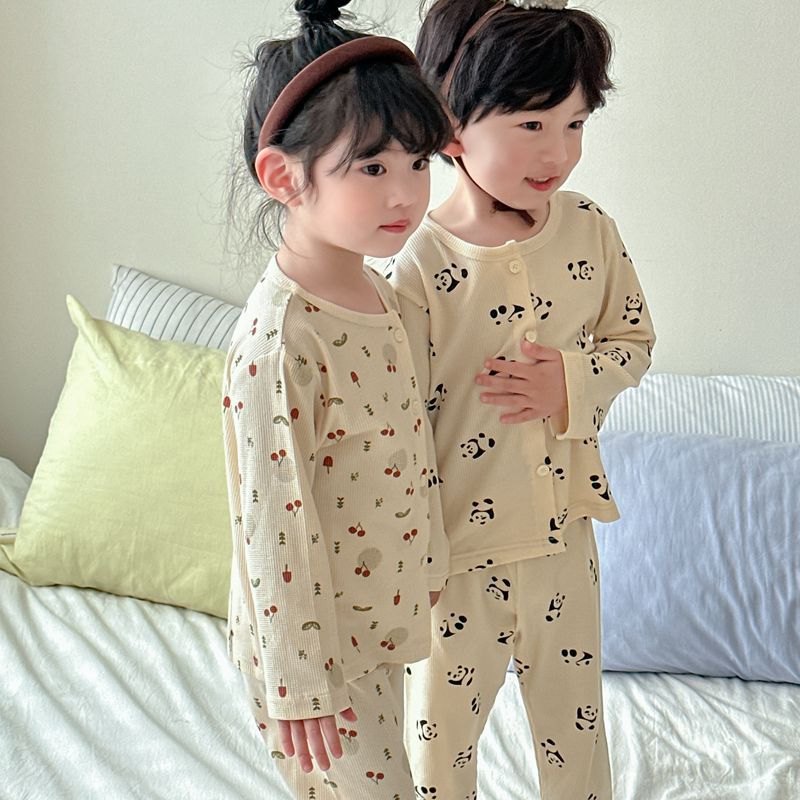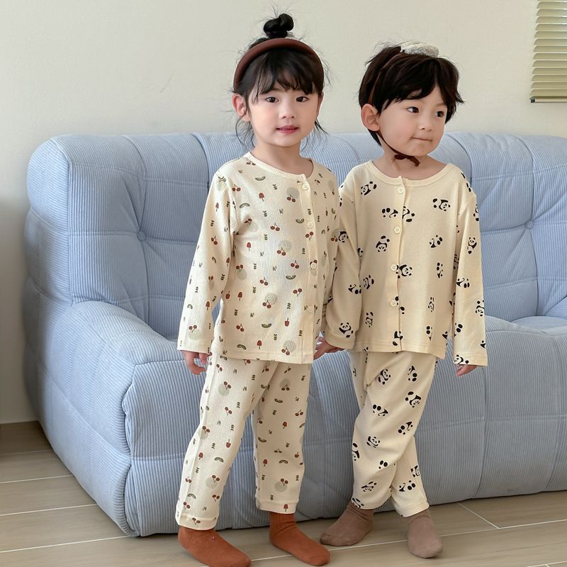 봄과 가을 어린이 잠옷 소년 소녀 아기 긴 소매 새 카디건 홈 옷 어린이 와플 러 속옷 세트스토어 가기