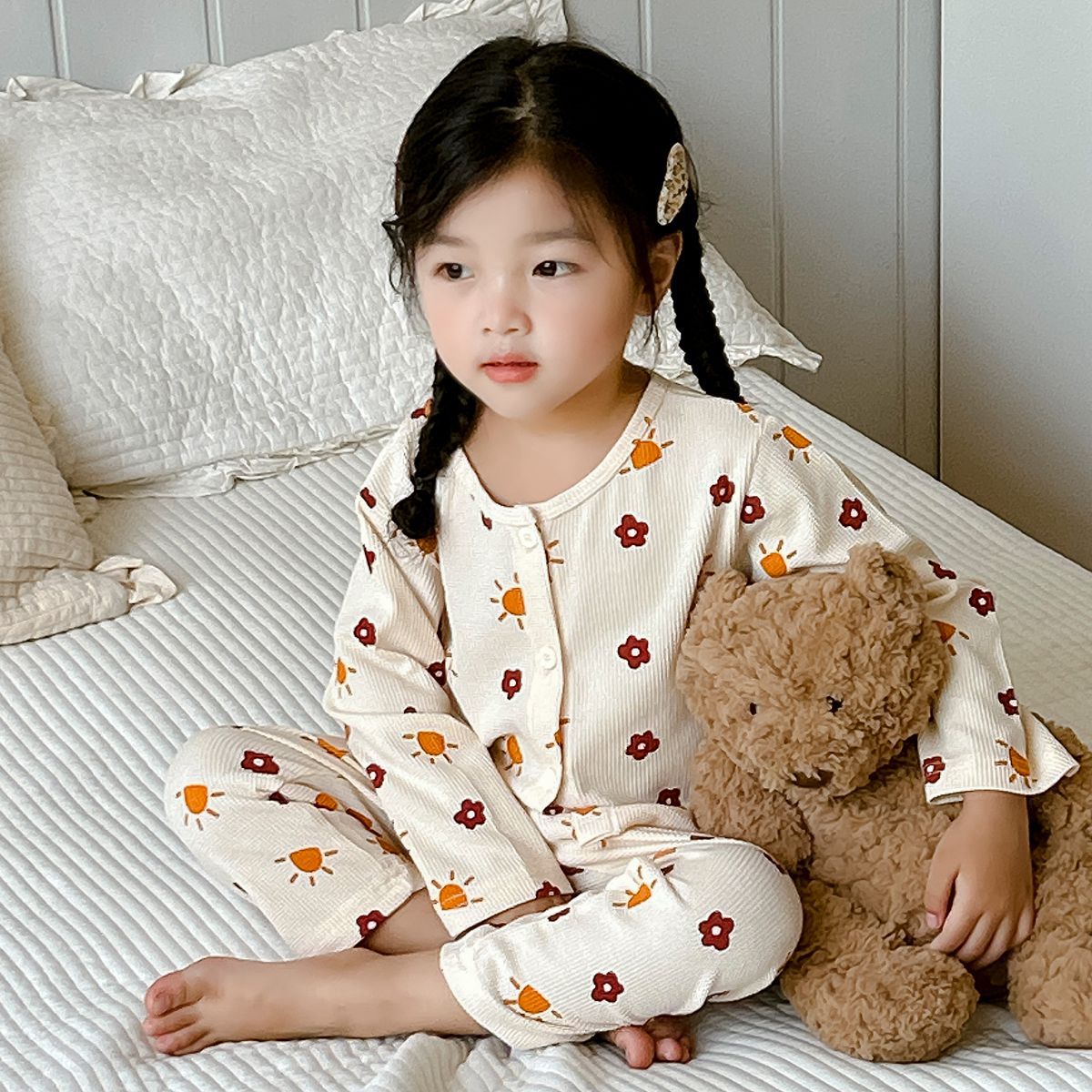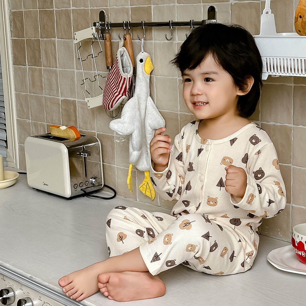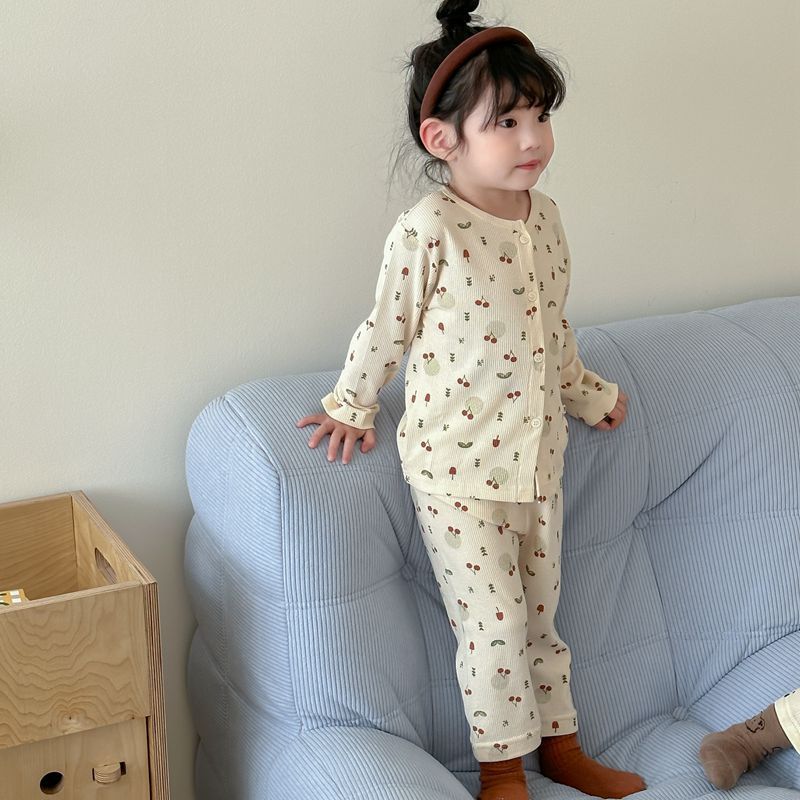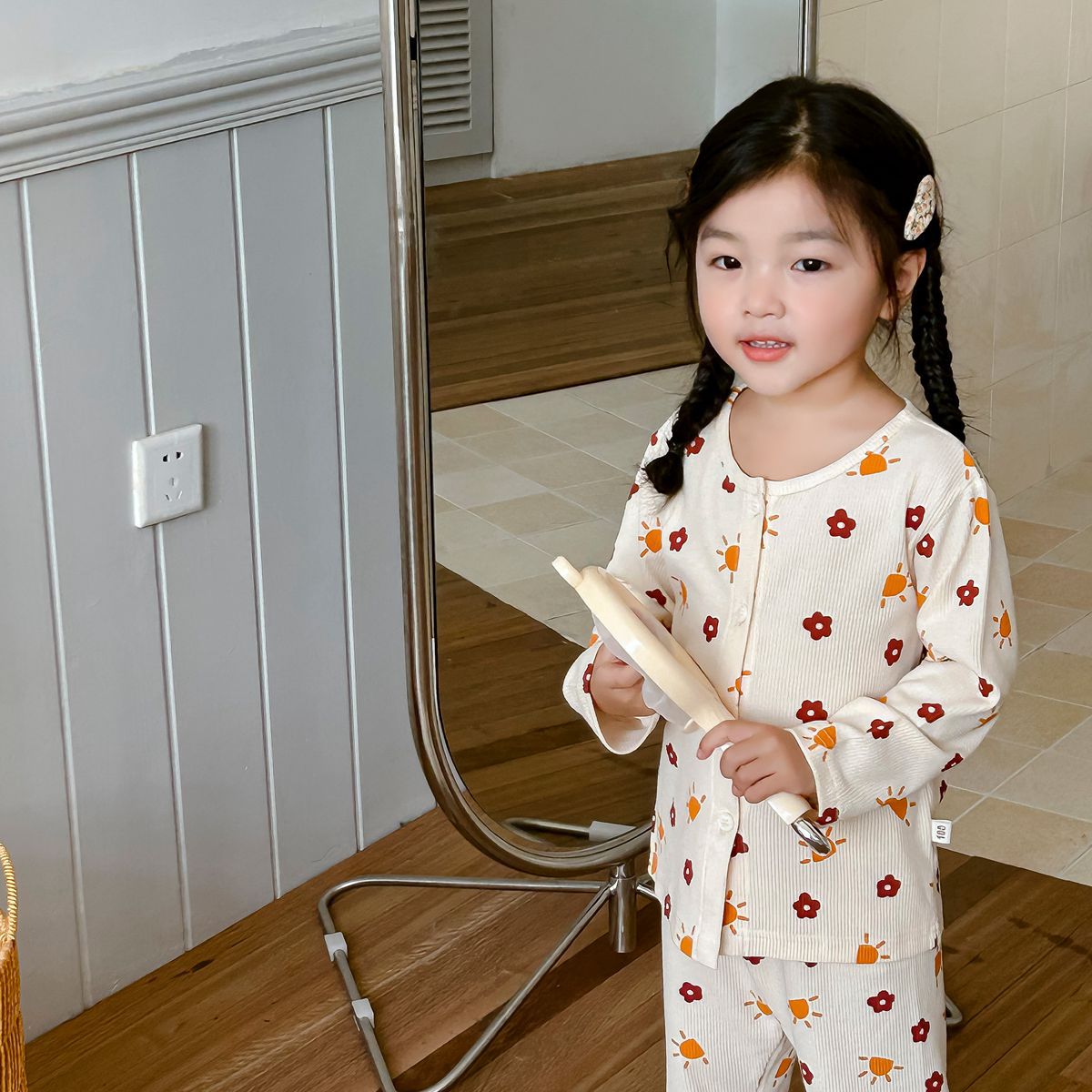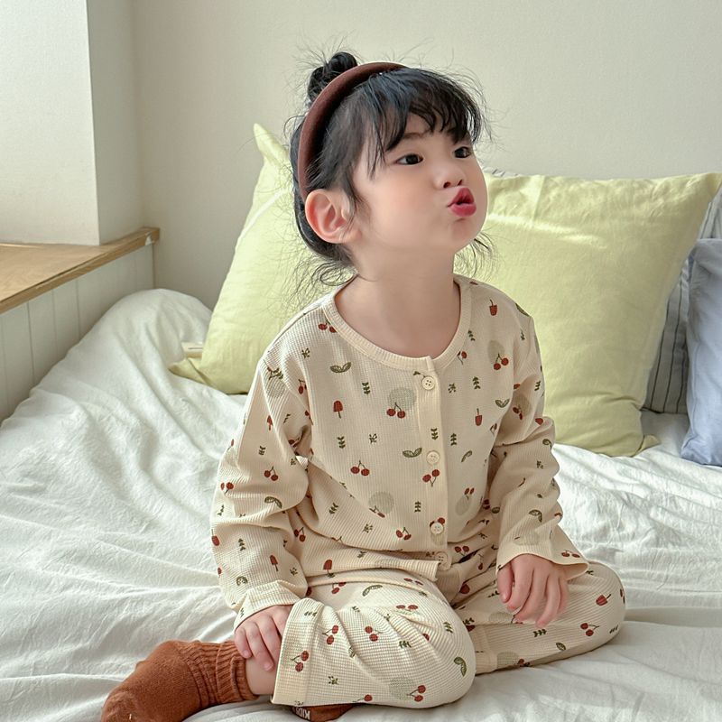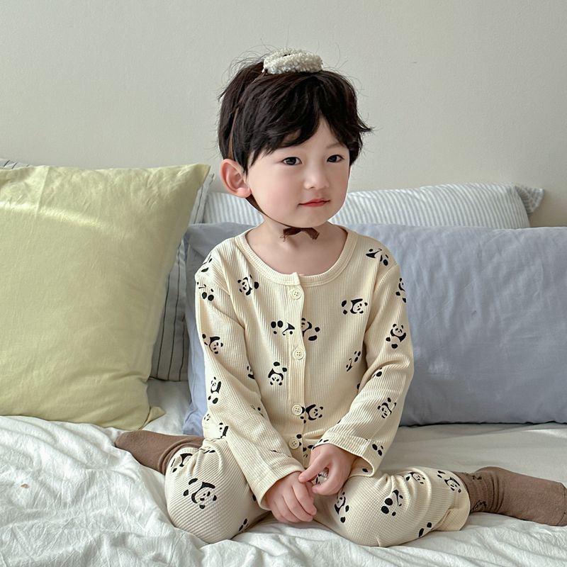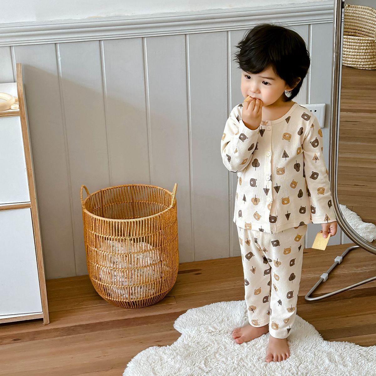 봄과 가을 어린이 잠옷 소년 소녀 아기 긴 소매 새 카디건 홈 옷 어린이 와플 러 속옷 세트스토어 가기