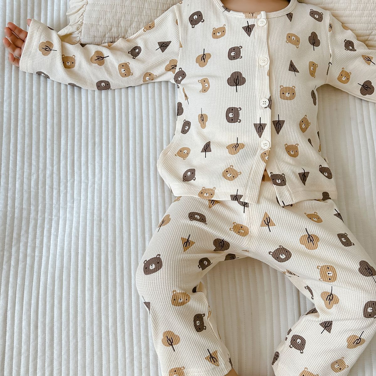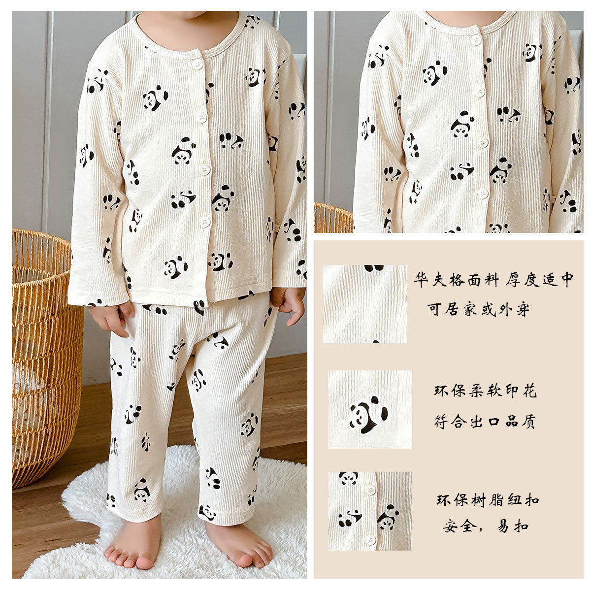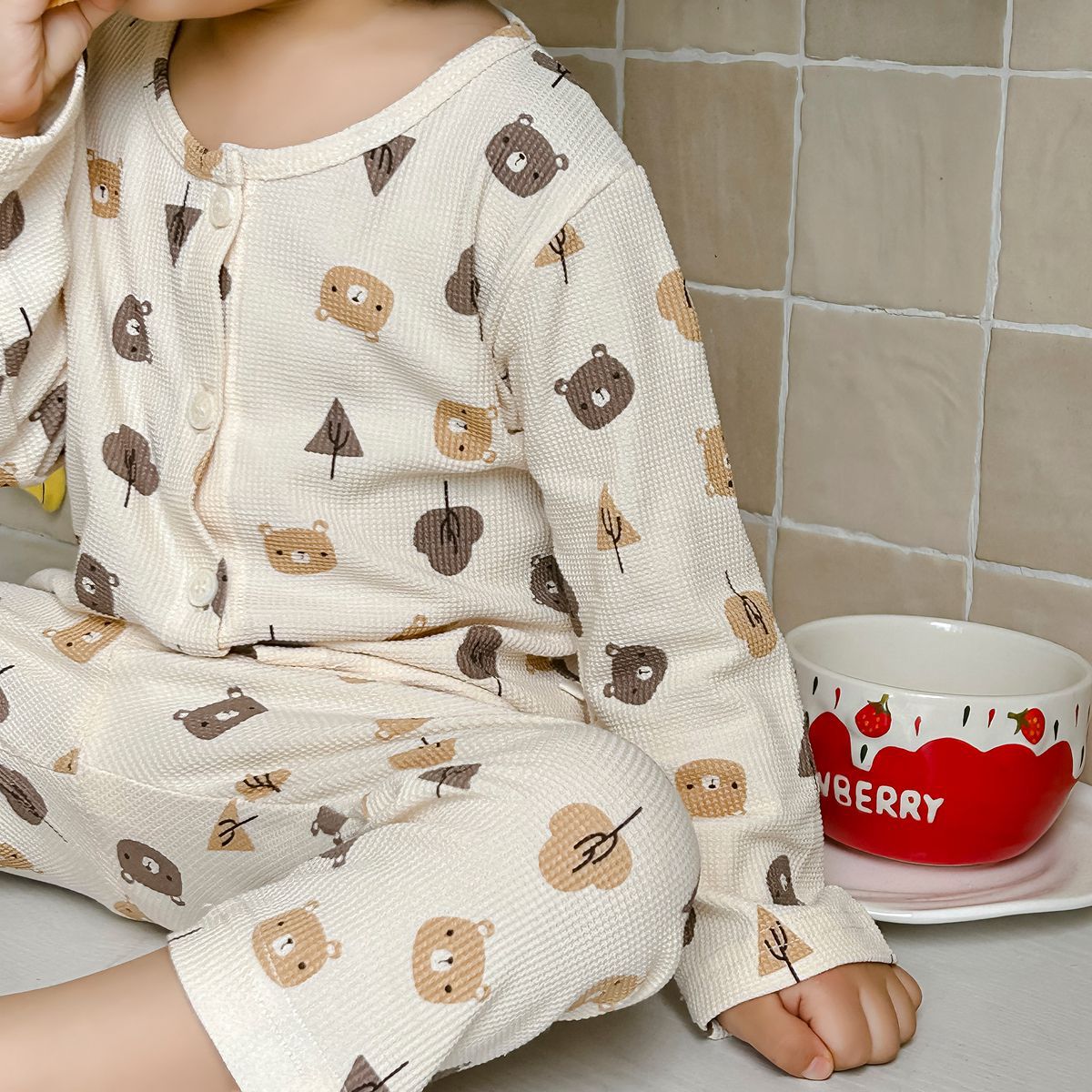 봄과 가을 어린이 잠옷 소년 소녀 아기 긴 소매 새 카디건 홈 옷 어린이 와플 러 속옷 세트